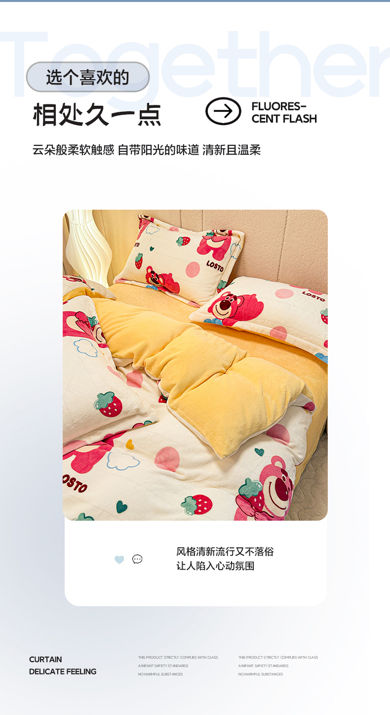 商品名称:卡普二店 2024新款牛奶绒印花四件套 萌趣熊宝