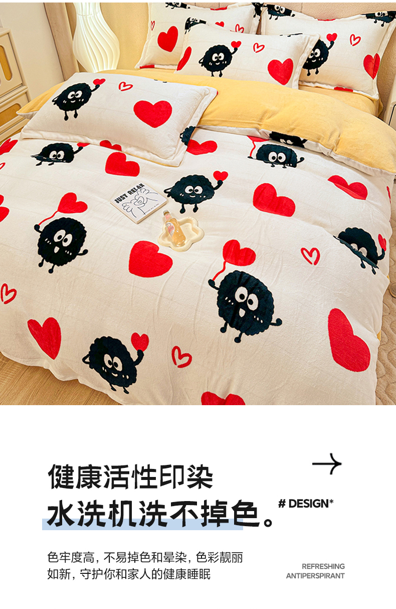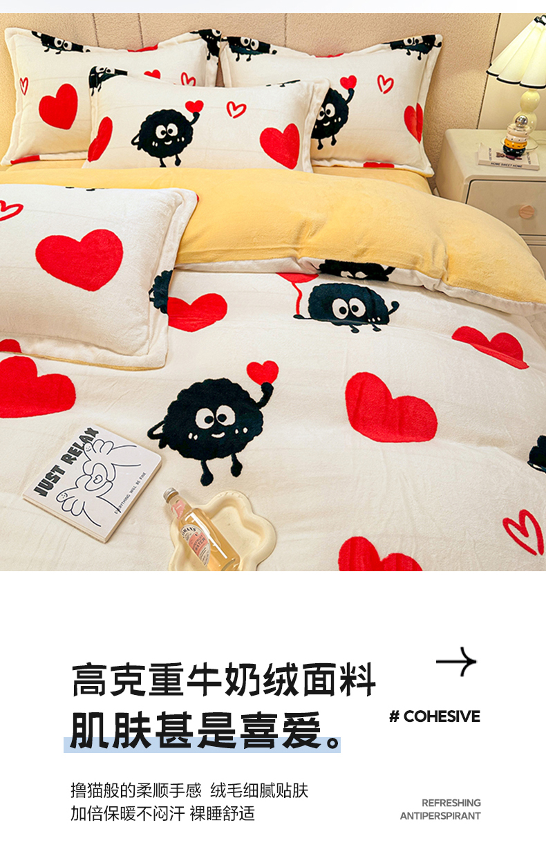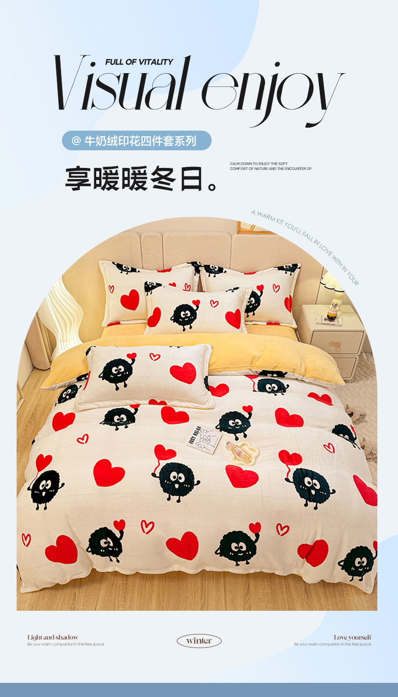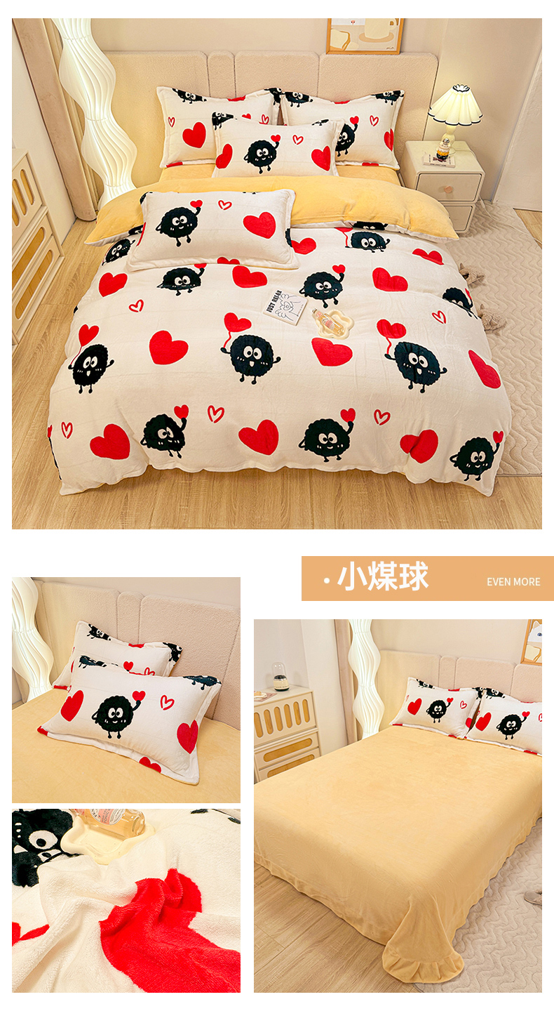 卡普二店 2024新款牛奶绒印花四件套 小煤球