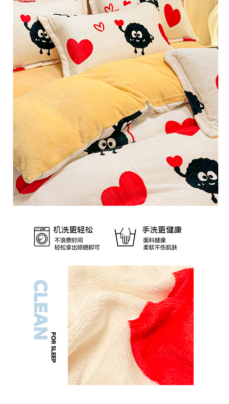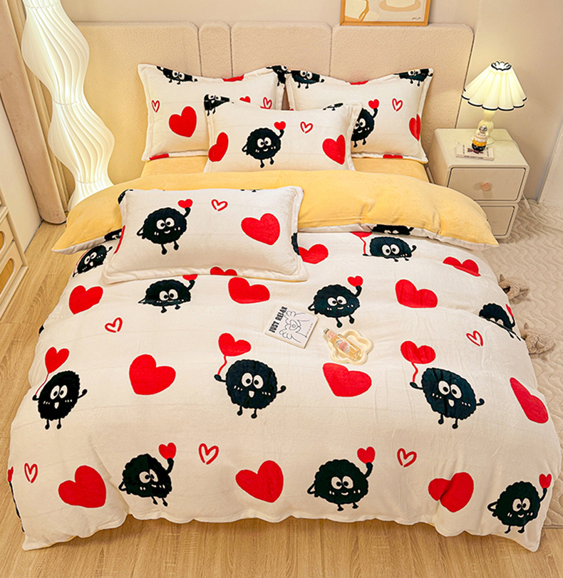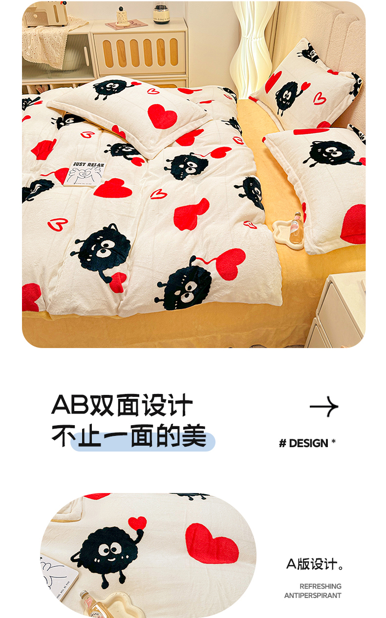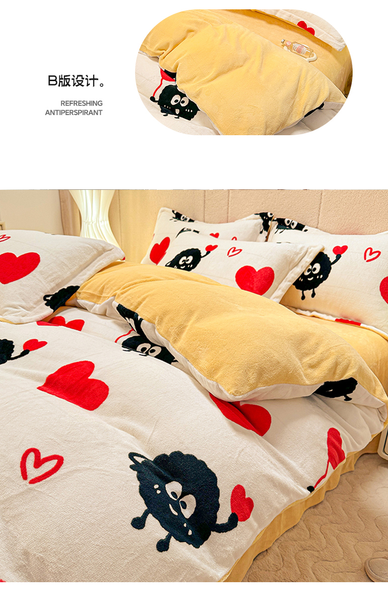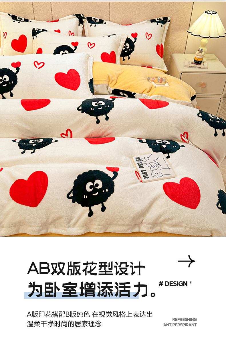 卡普二店 2024新款牛奶绒印花四件套 小煤球
