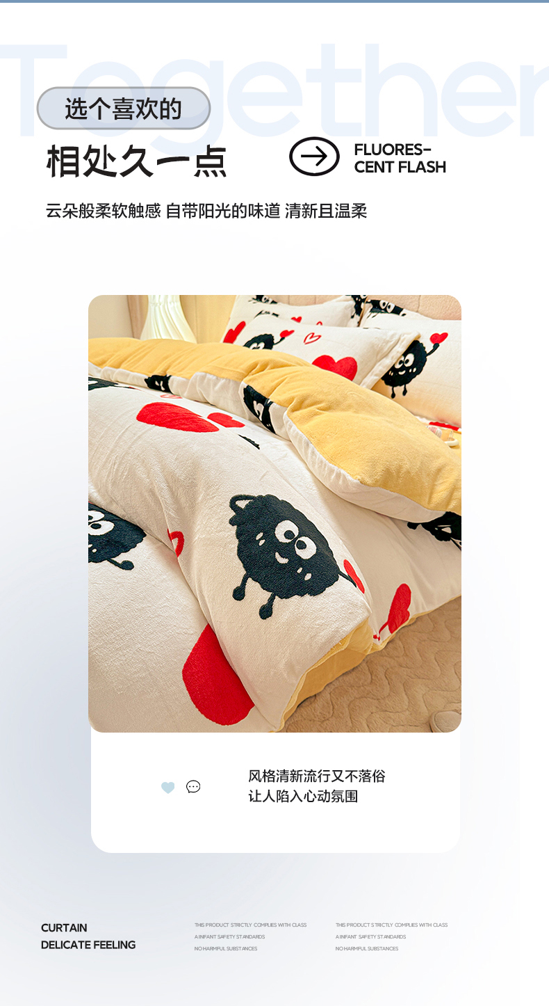 商品名称:卡普二店 2024新款牛奶绒印花四件套 小煤球