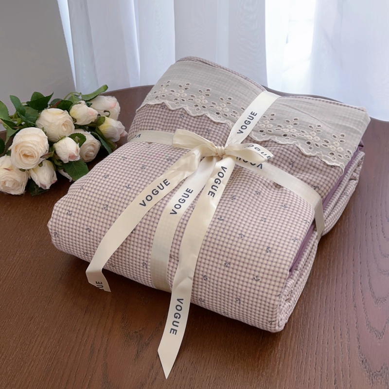 黛馨 2025新款全棉双层纱贴边款四件套 六丁目紫-三边款