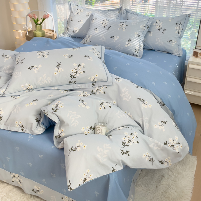 铭博家纺 新款直播爆款网红全棉四件套13070印花吊边一字绣纯棉被套工艺款 花语呢喃,花语呢喃