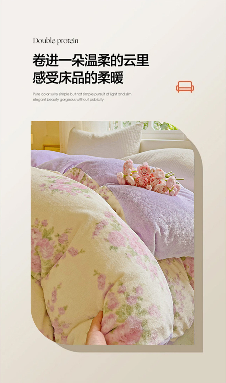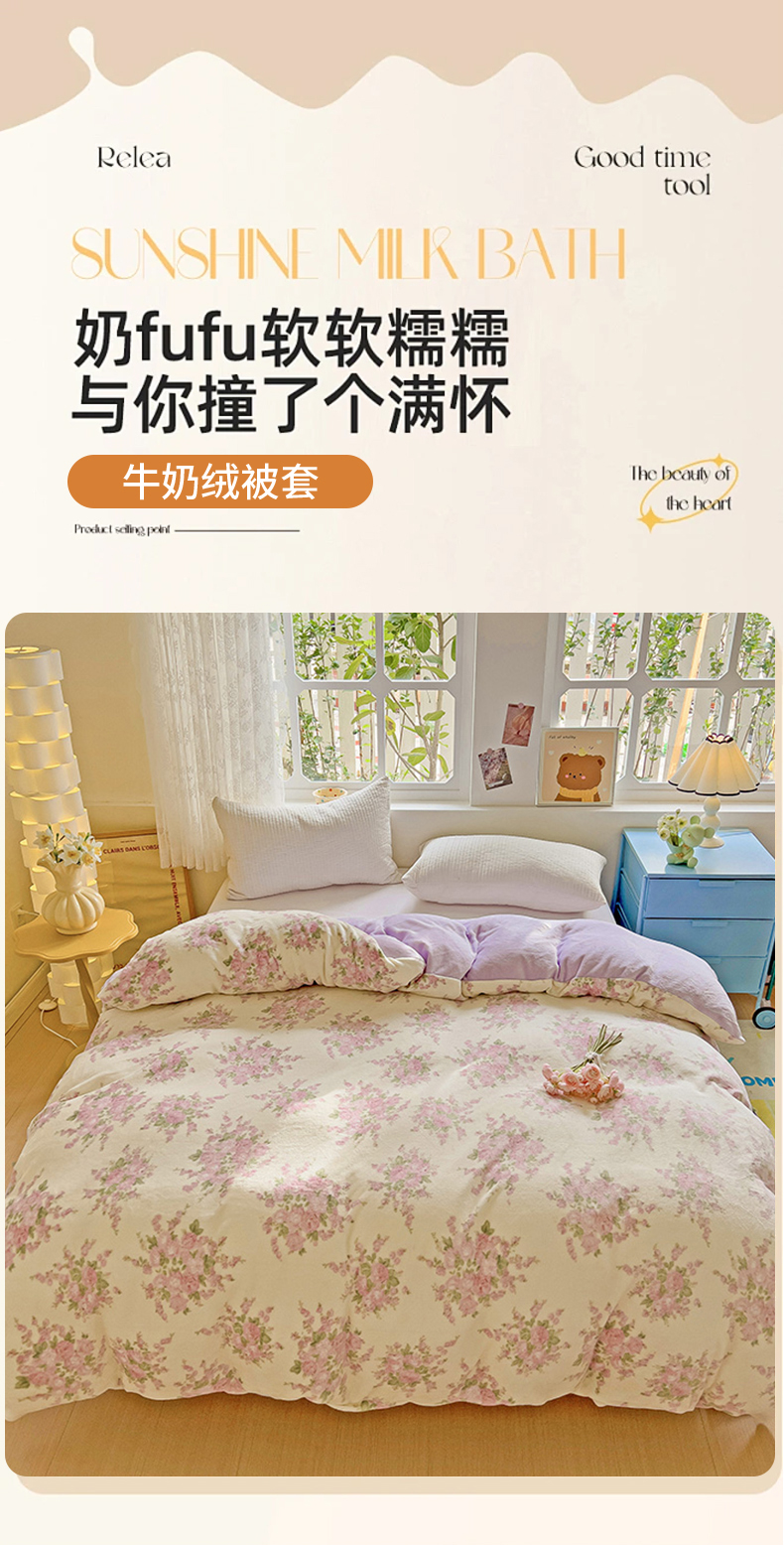 卡普二店 2024新款牛奶绒印花单被套 欧风花影