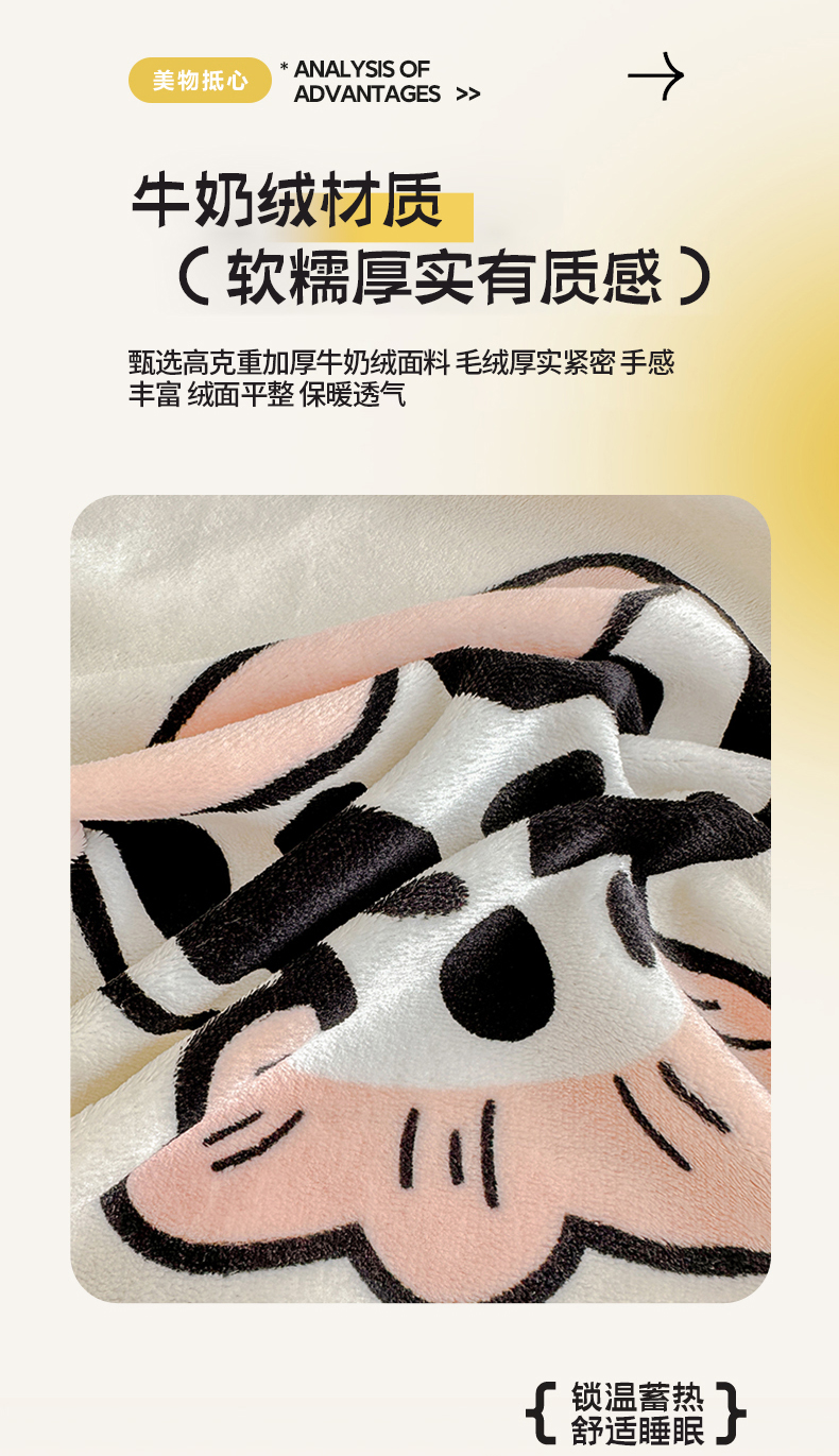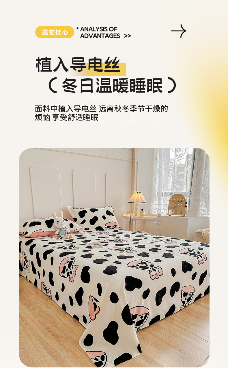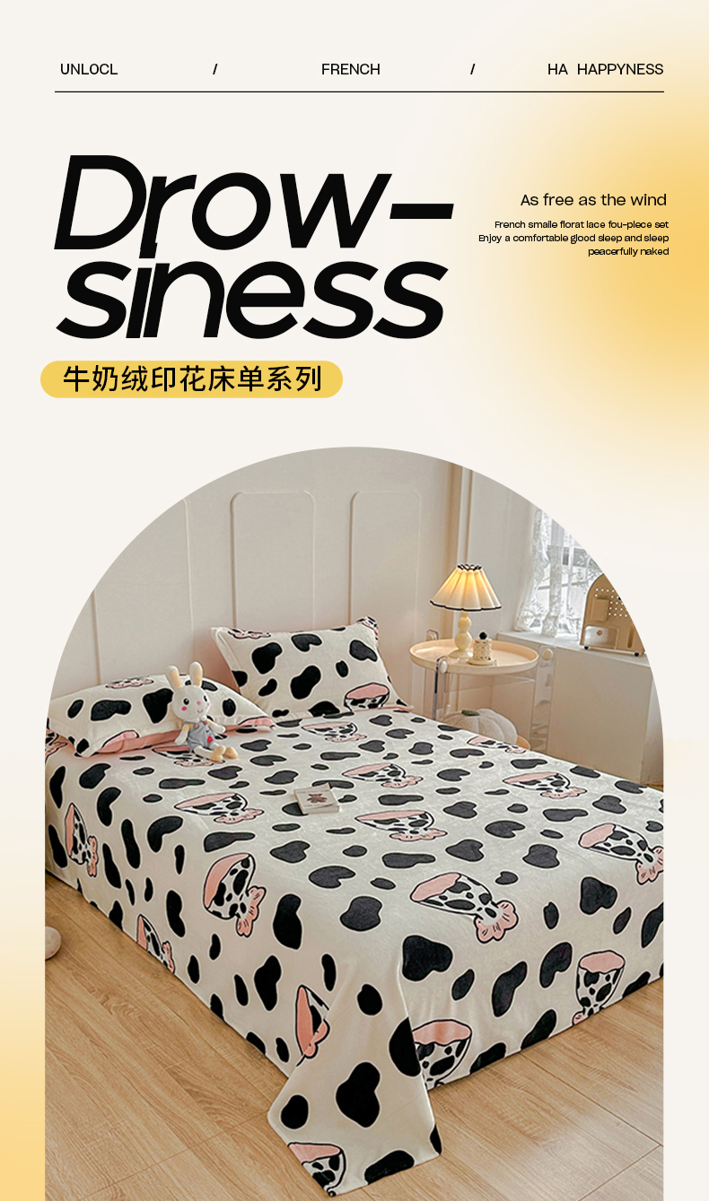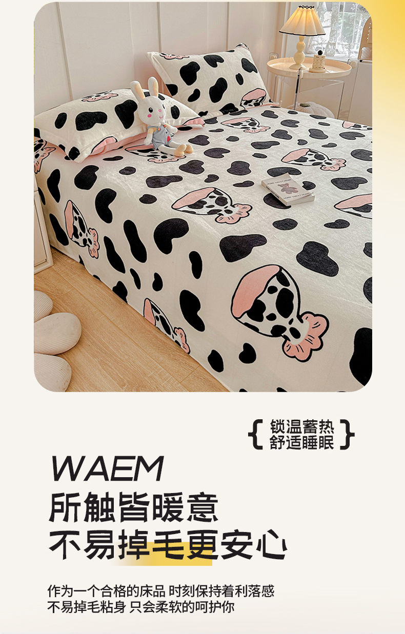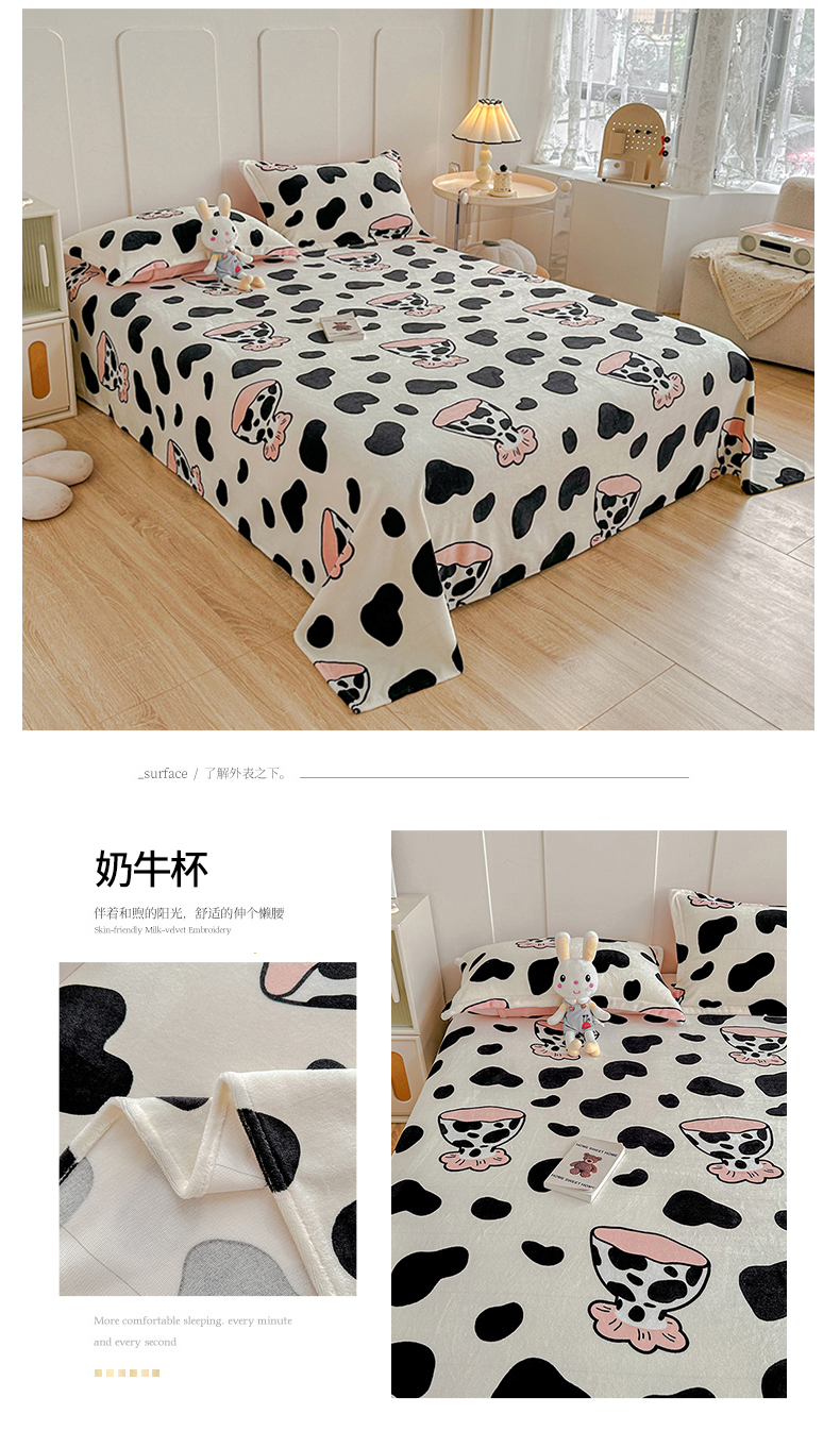 卡普二店 2024新款牛奶绒印花单床单 奶牛杯