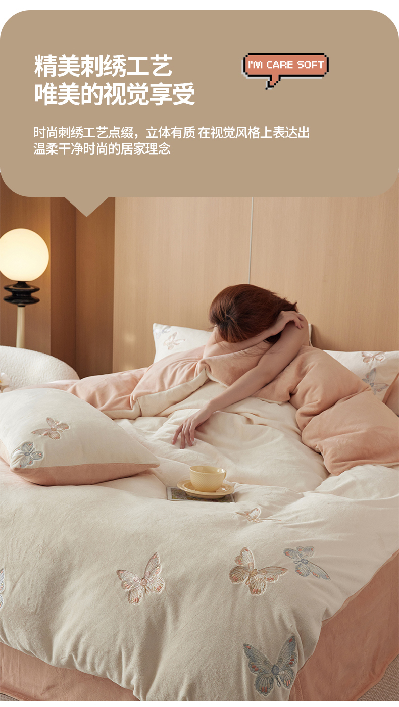 当前位置: 91家纺网 > 商品网购 > 床品套件 > 四件套 > 牛奶绒四件套 > (总)简纯主义 2025新款全工艺牛奶绒绣花四件套庄周梦蝶系列