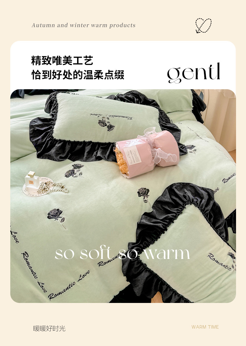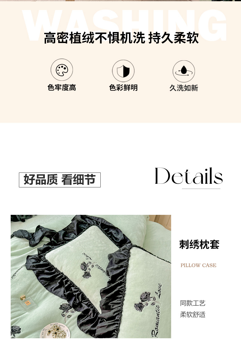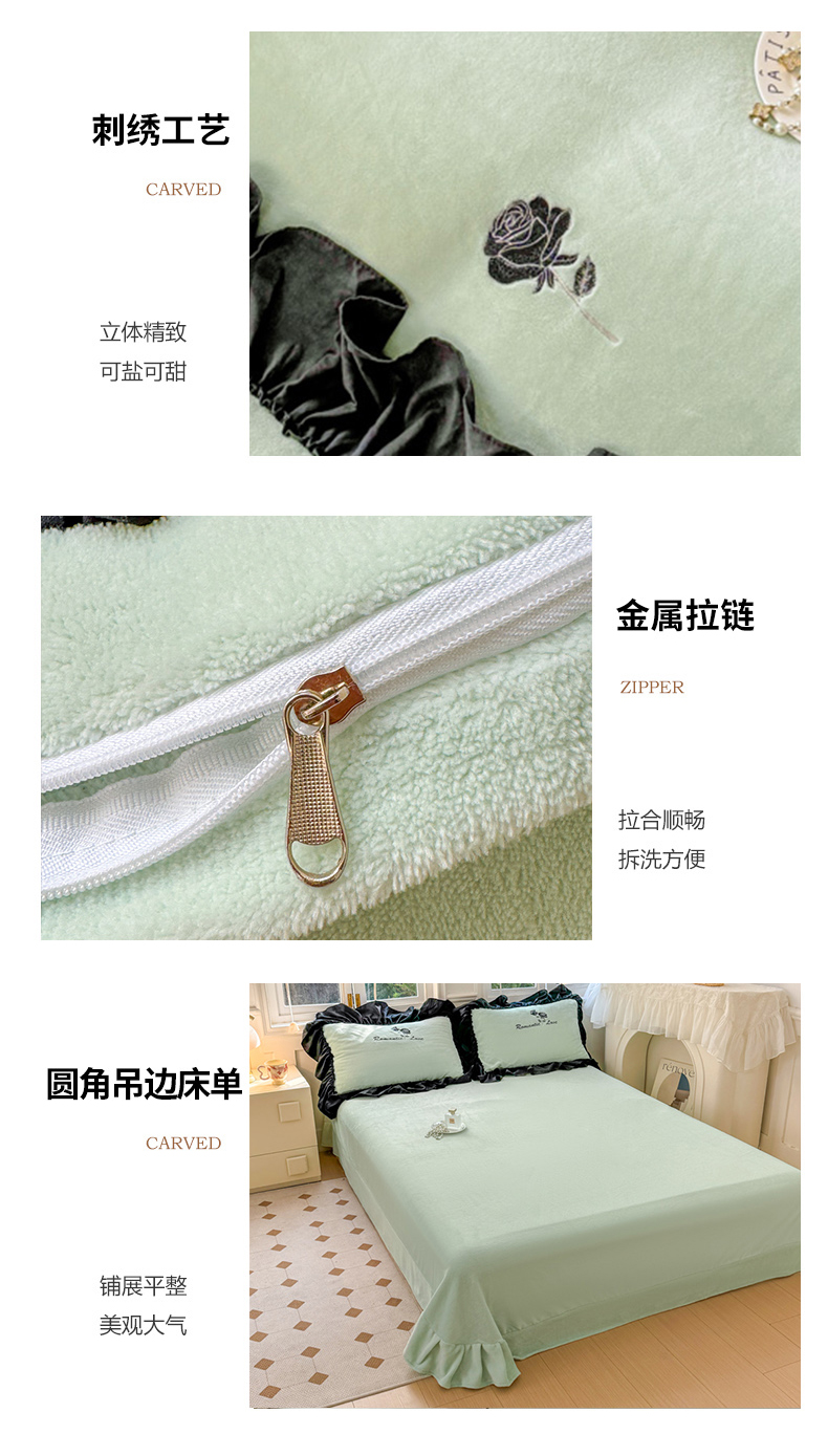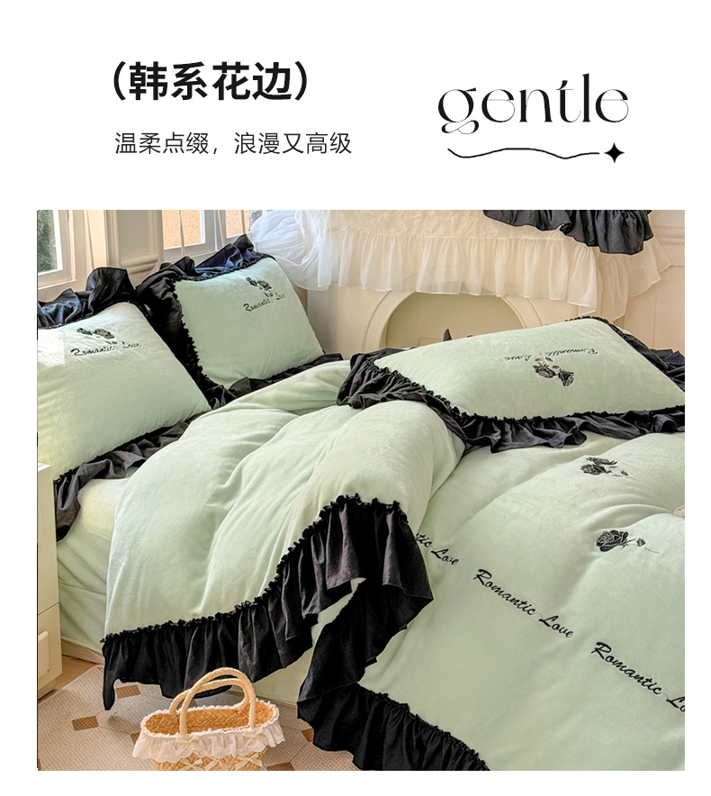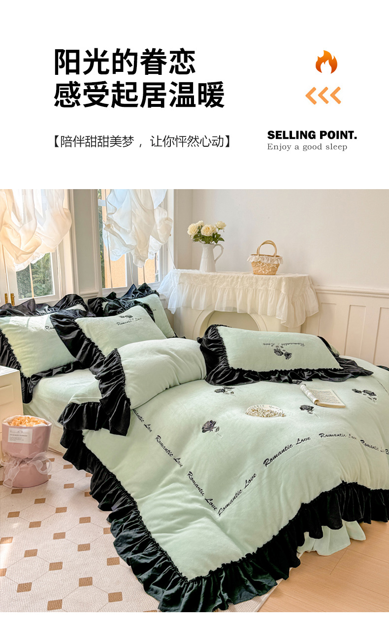 商品名称:凯美家居 2024新款法式牛奶绒刺绣四件套-欧雅 场景二 欧雅-浅绿