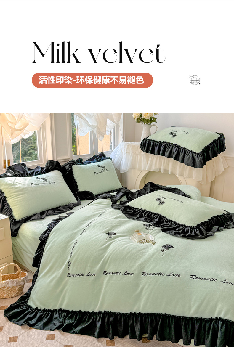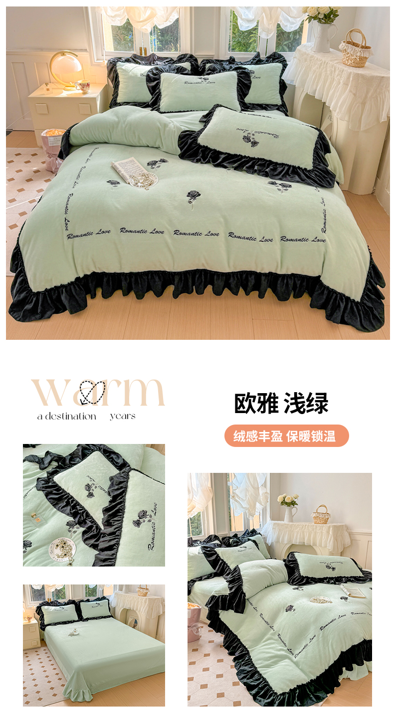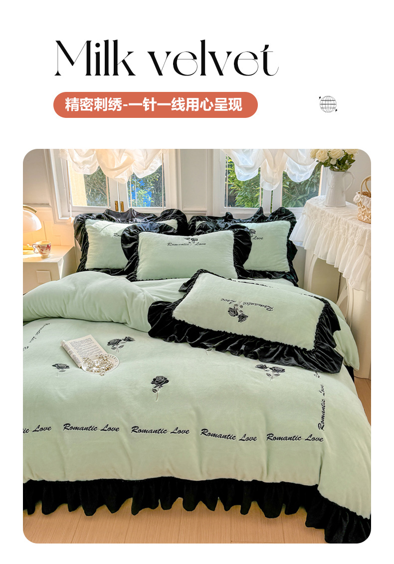 凯美家居 2024新款法式牛奶绒刺绣四件套-欧雅 场景二 欧雅-浅绿