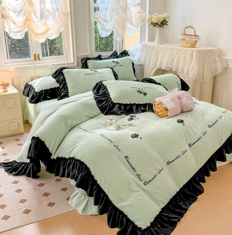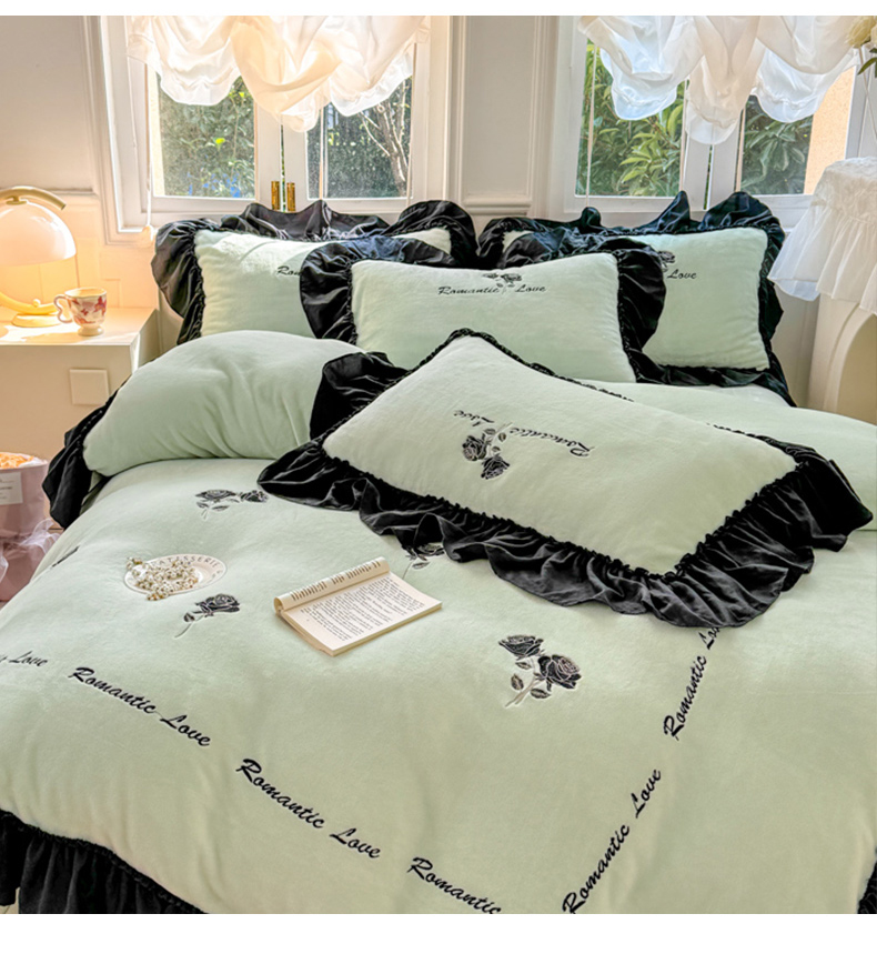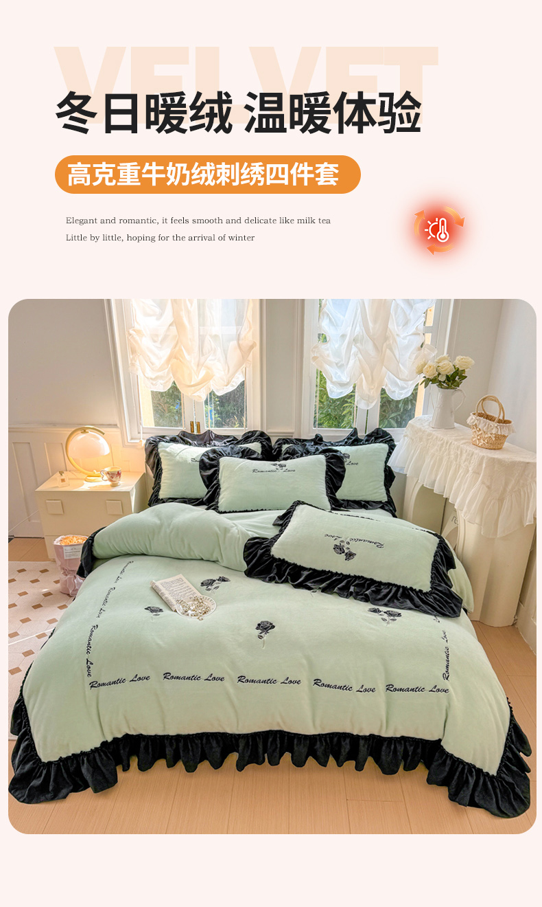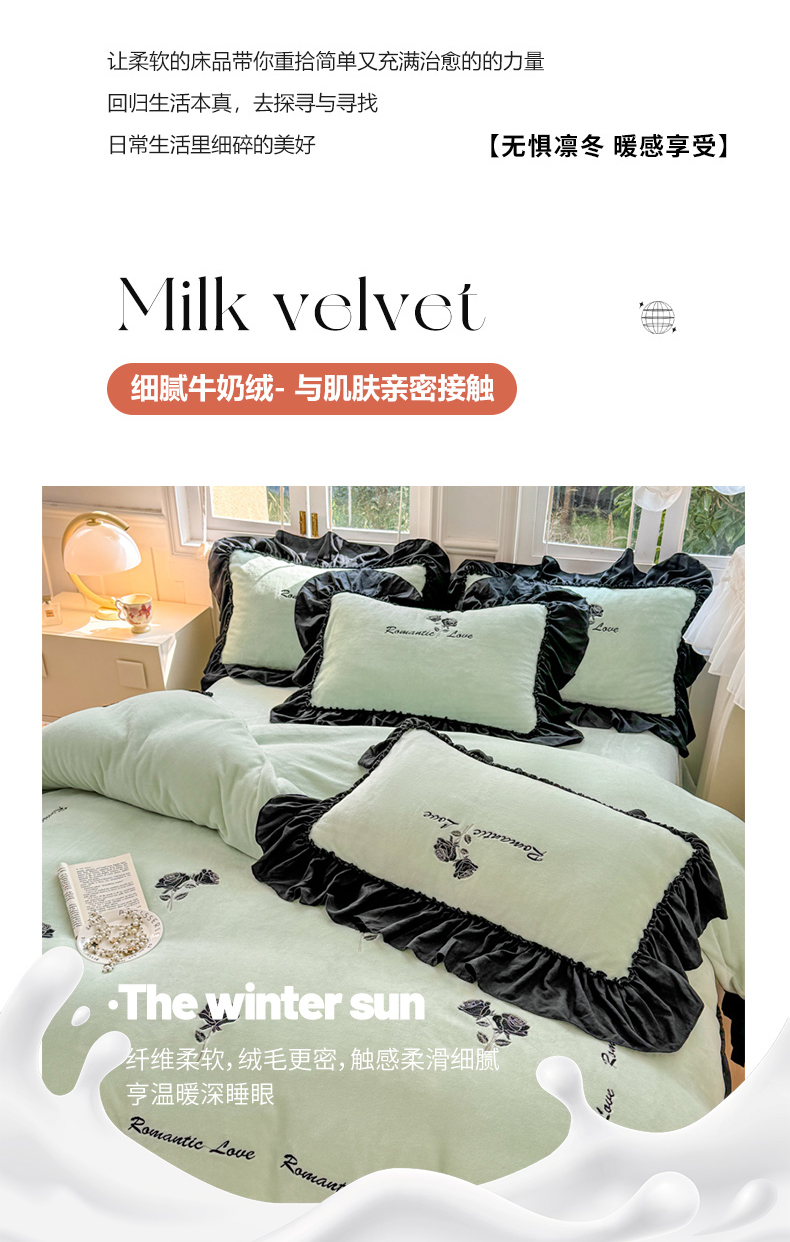 凯美家居 2024新款法式牛奶绒刺绣四件套-欧雅 场景二 欧雅-浅绿