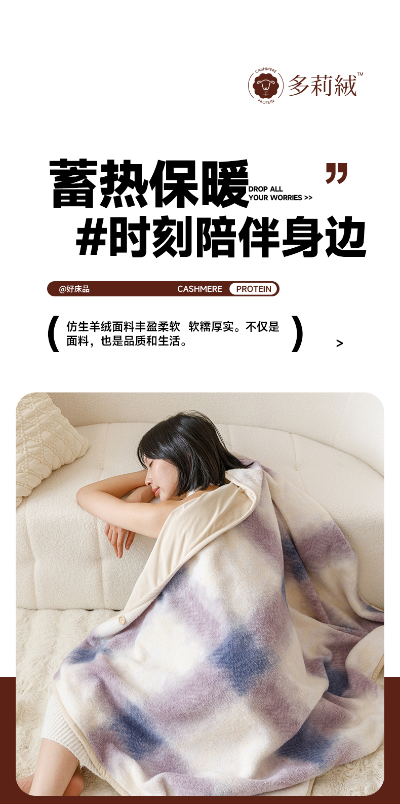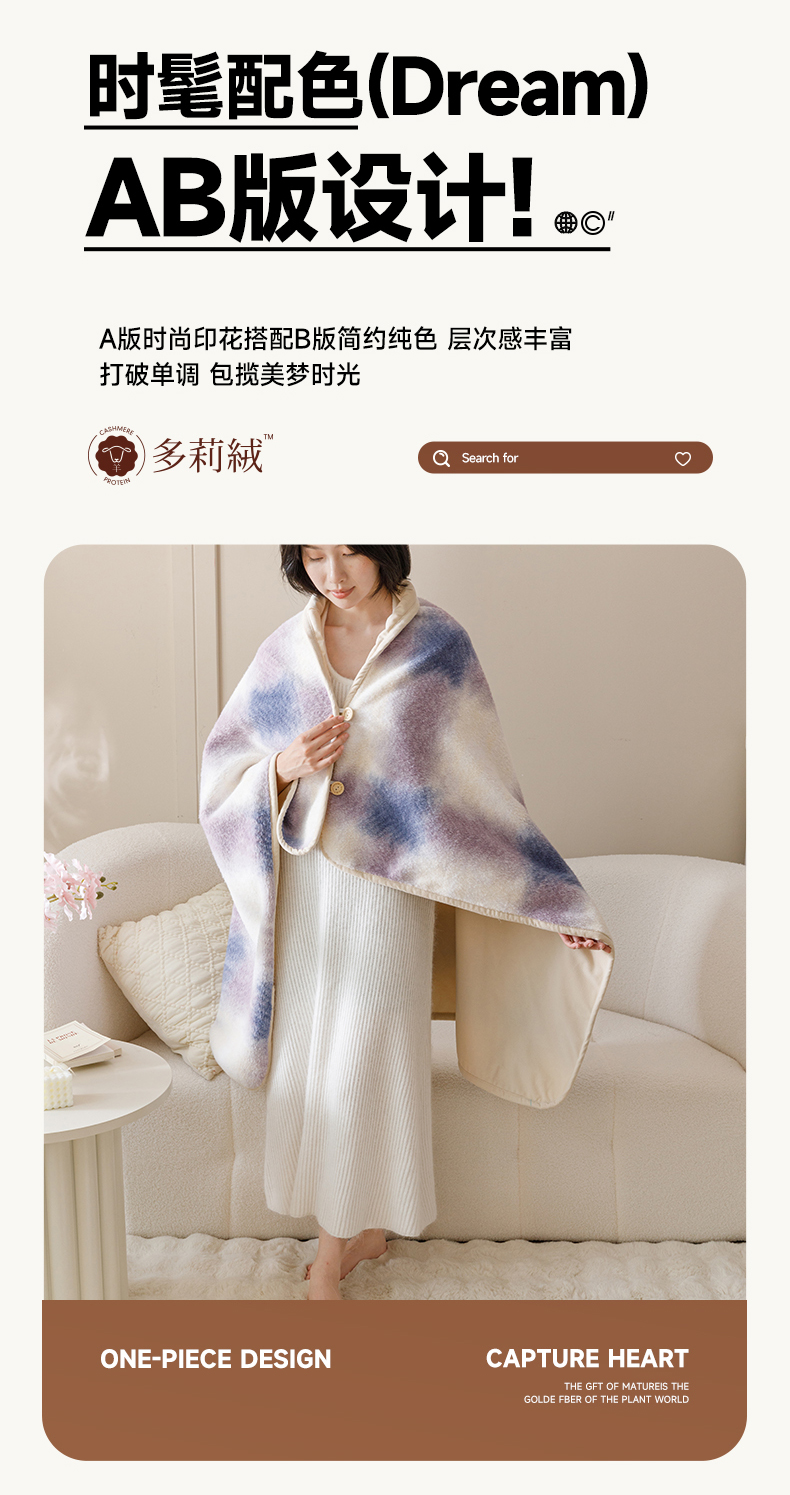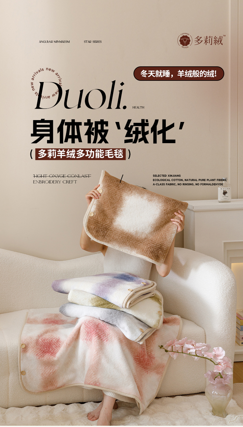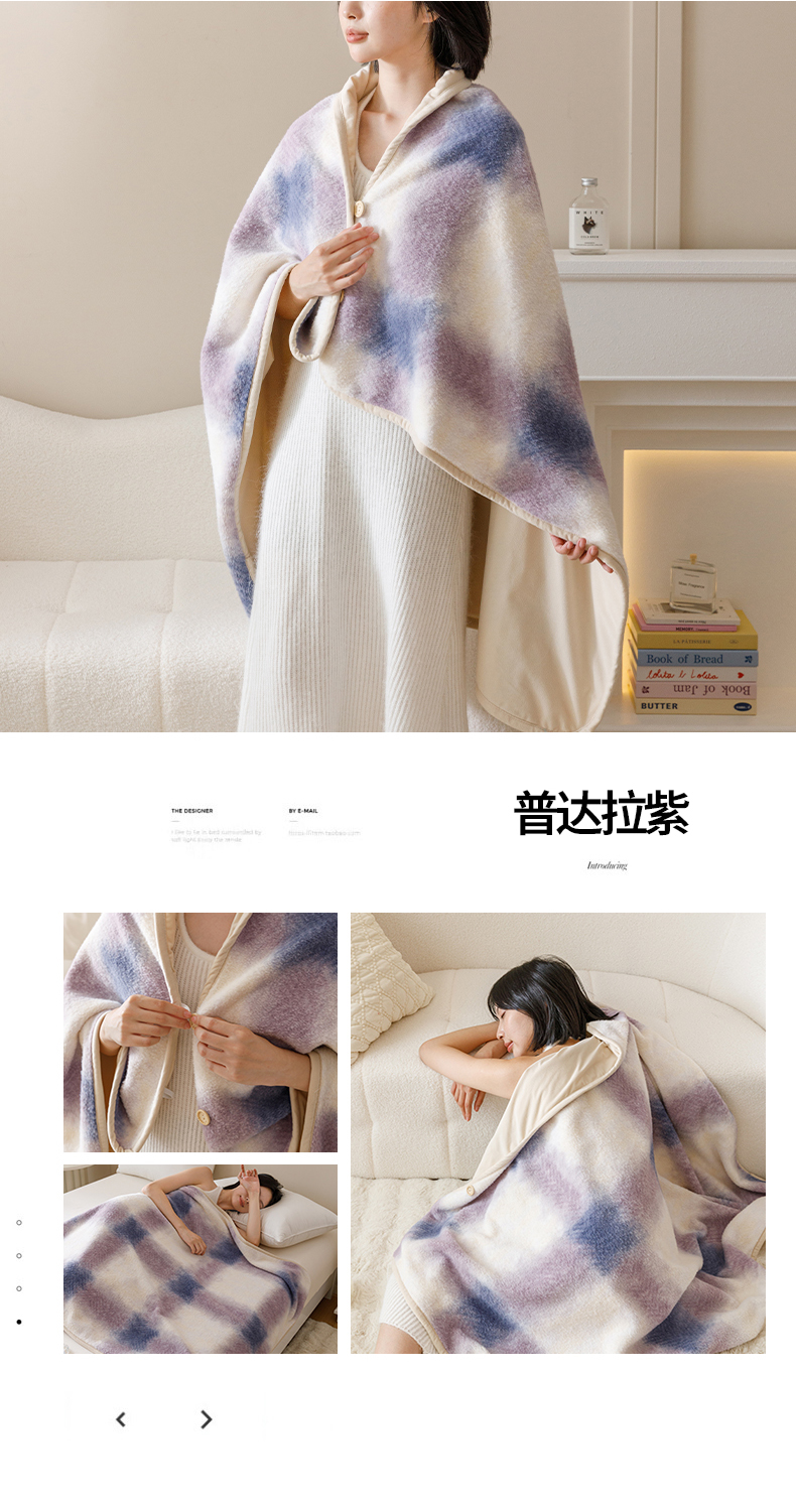 商品名称:金奇达家纺 2024新款【多莉羊绒】多功能毛毯披肩毯毯子 普达拉紫