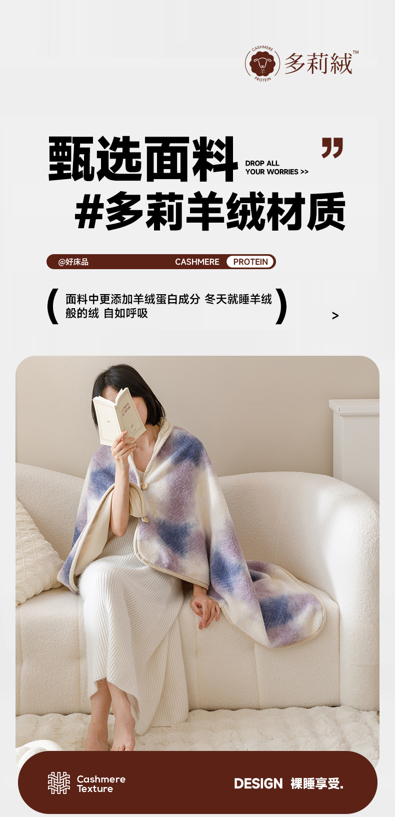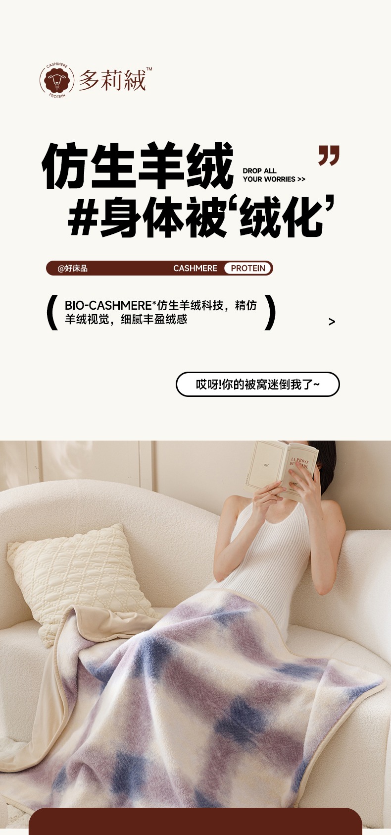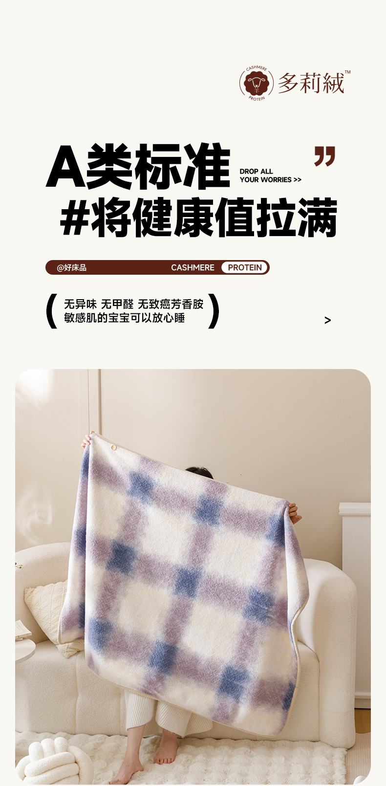 商品名称:金奇达家纺 2024新款【多莉羊绒】多功能毛毯披肩毯毯子 普达拉紫