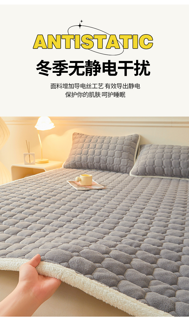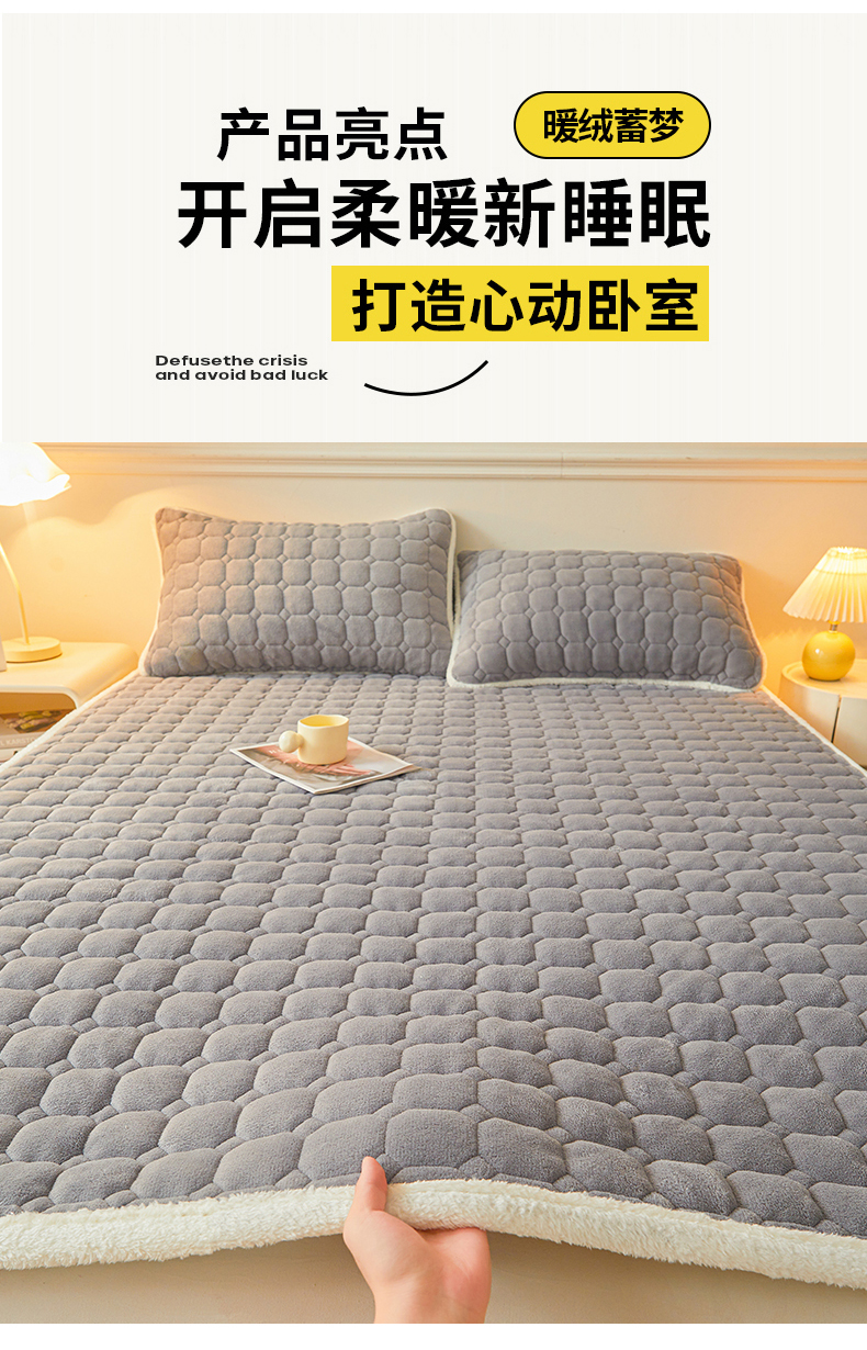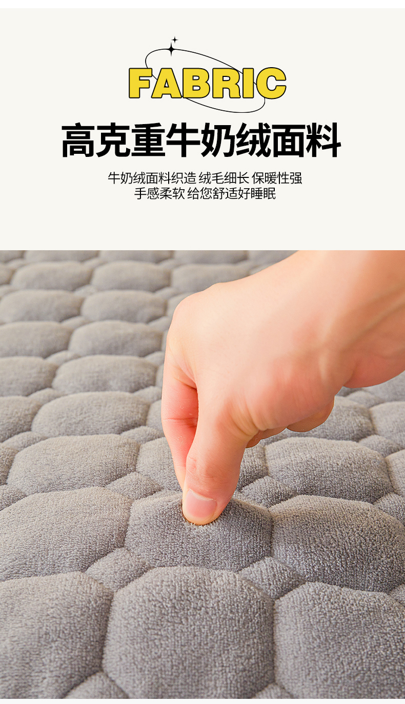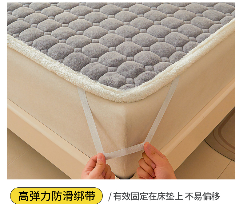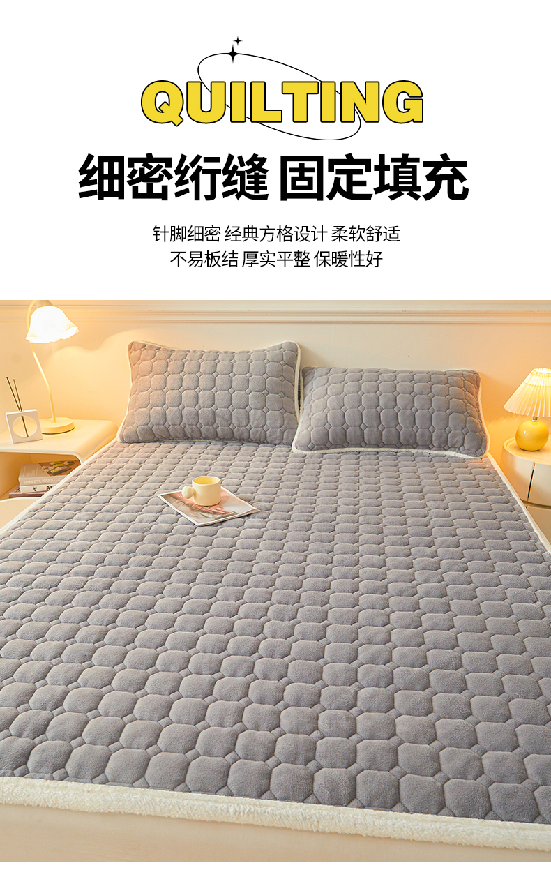 商品名称:予梦家纺 2024新款纯色牛奶绒夹棉床褥床护垫-莫甘娜 莫甘娜-烟灰