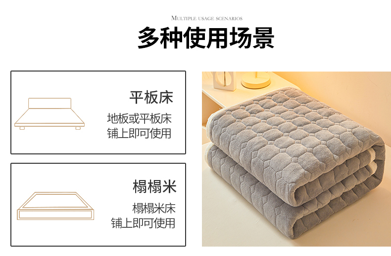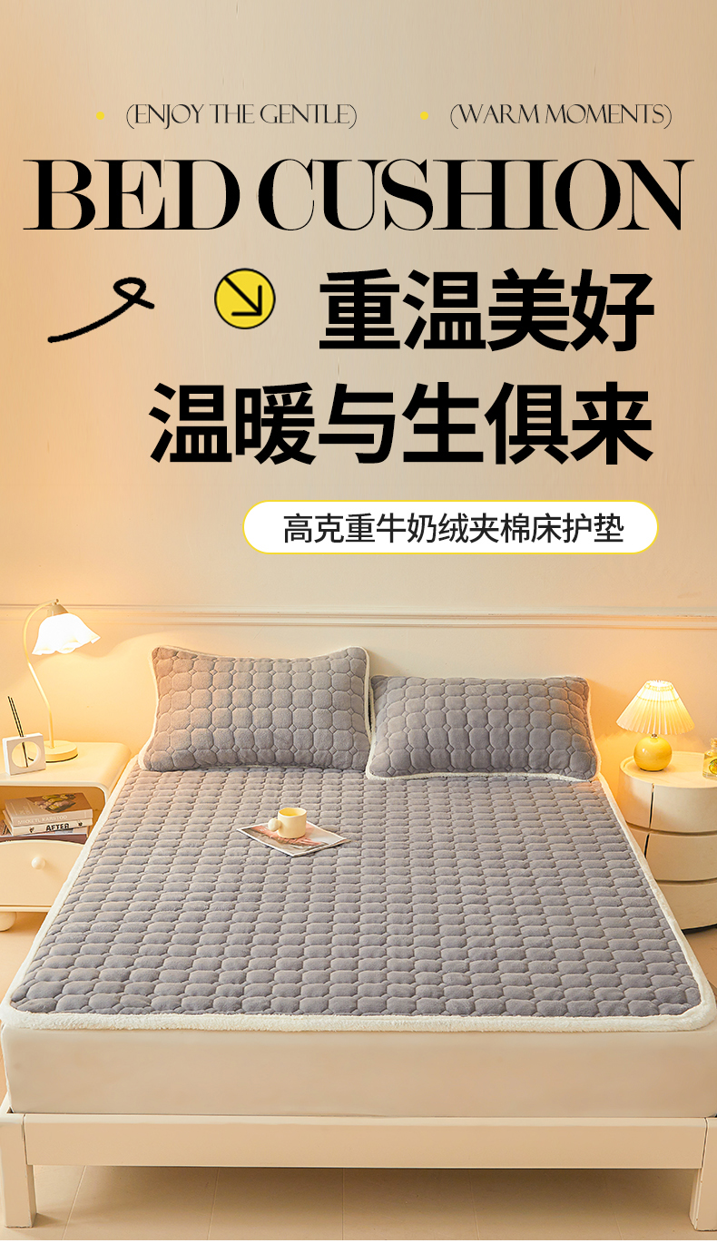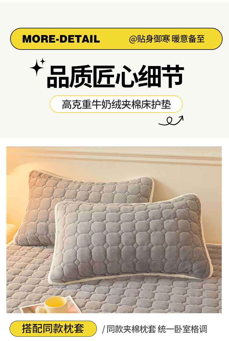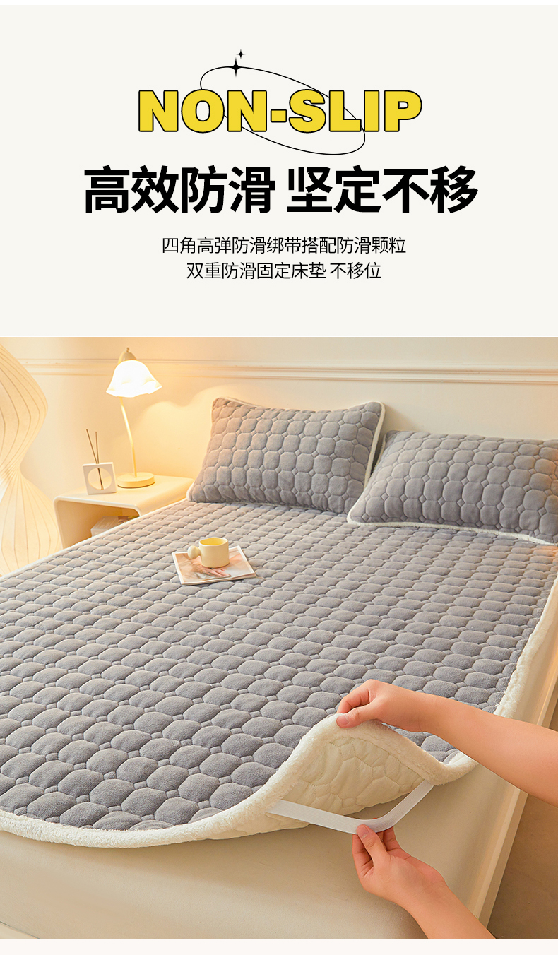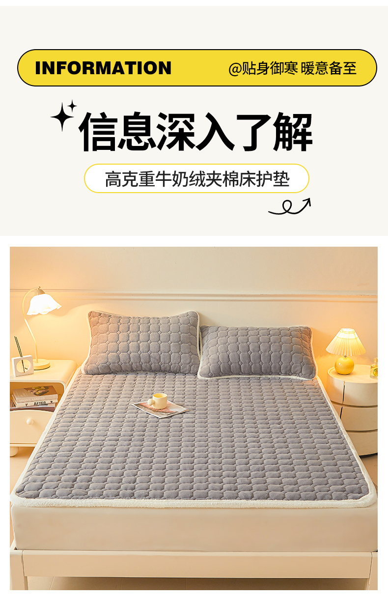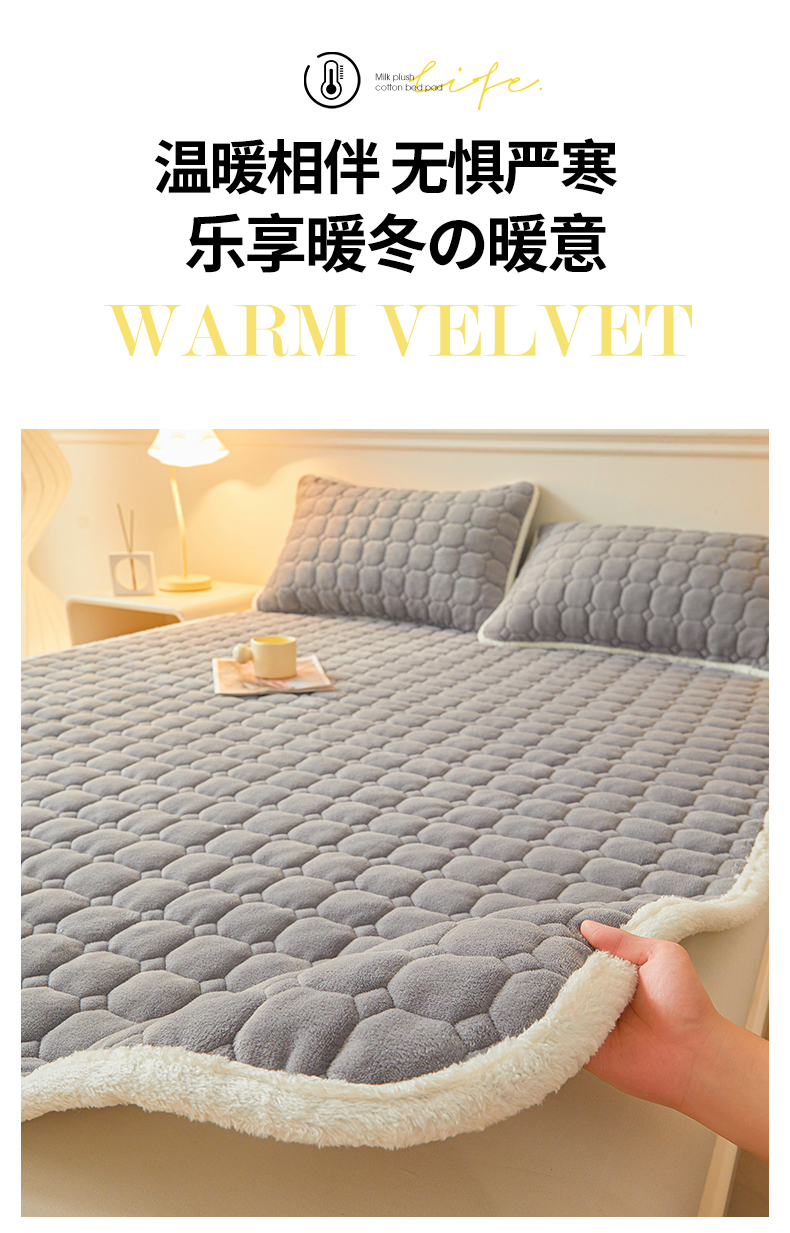 商品名称:予梦家纺 2024新款纯色牛奶绒夹棉床褥床护垫-莫甘娜 莫甘娜-烟灰