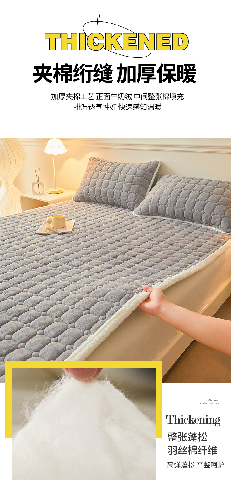 予梦家纺 2024新款纯色牛奶绒夹棉床褥床护垫-莫甘娜 莫甘娜-烟灰