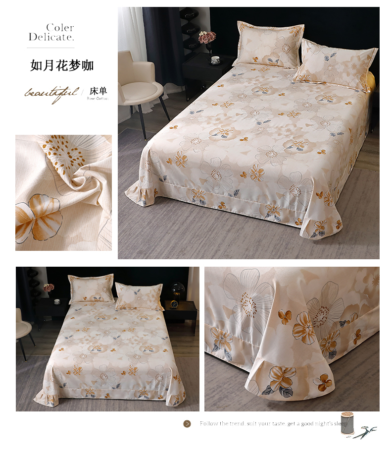 商品名称:贝兰仙奴 2024新款亲肤舒适全棉磨毛多规格系列单床单 如月花梦咖