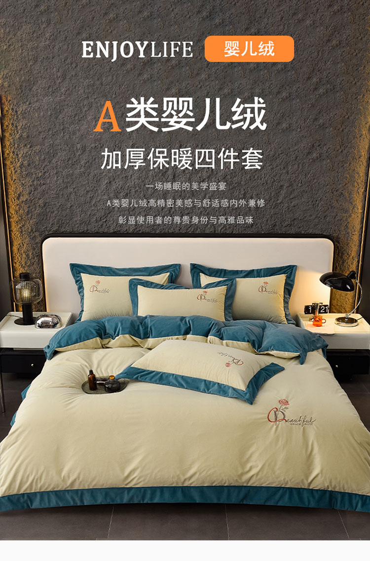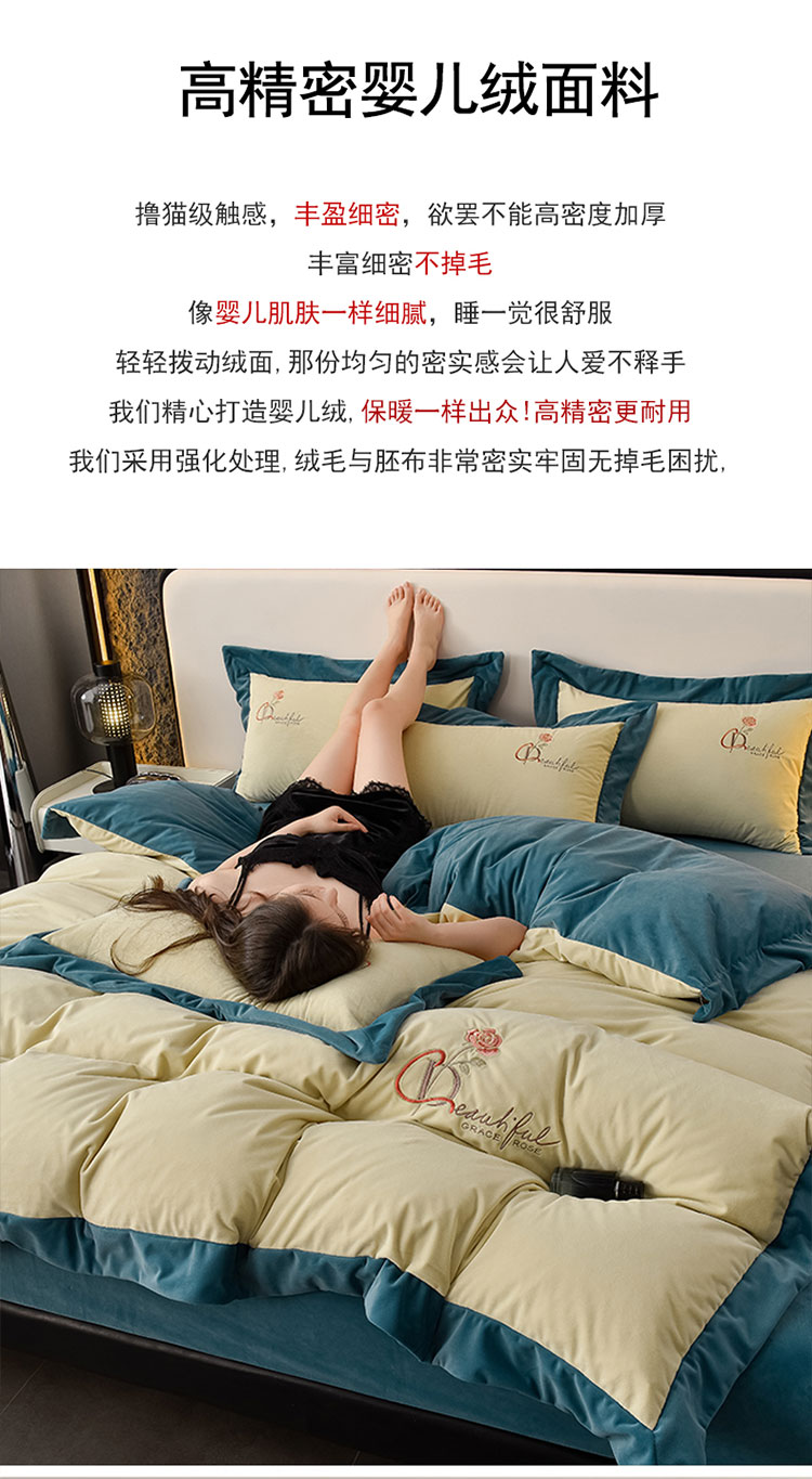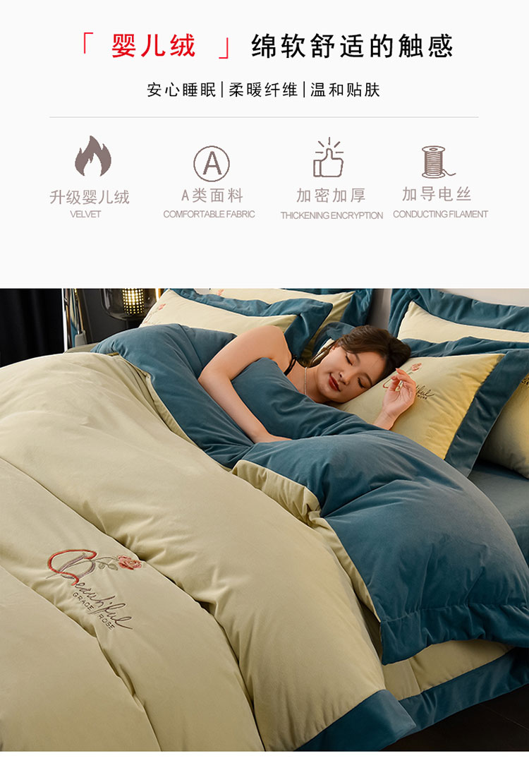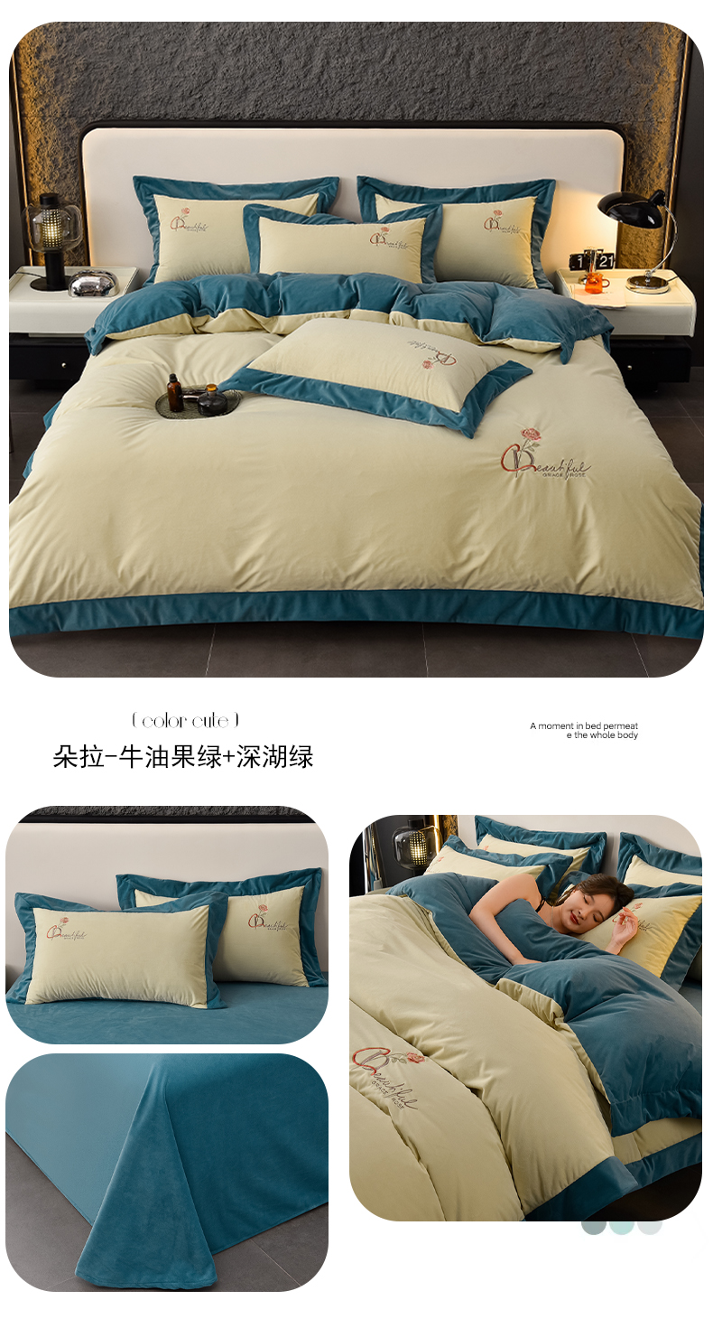 当前位置: 91家纺网 > 商品网购 > 床品套件 > 四件套 > 其它四件套 > 2024新款加厚保暖A类婴儿绒四件套-朵拉系列 朵拉-牛油果绿+深湖绿
