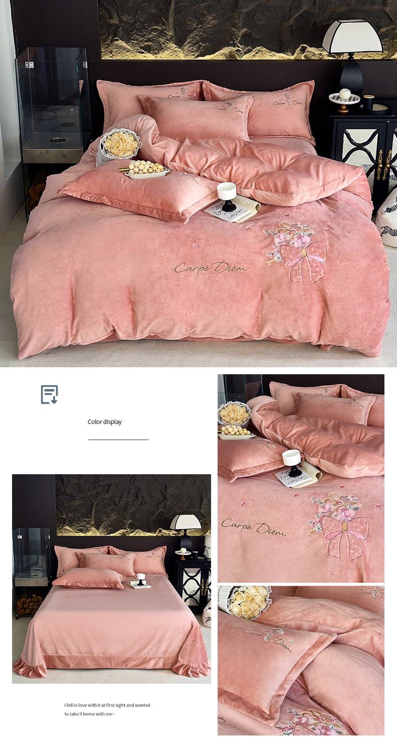 商品名称:梦莱斯 2024新款牛奶绒绣花四件套 粉色