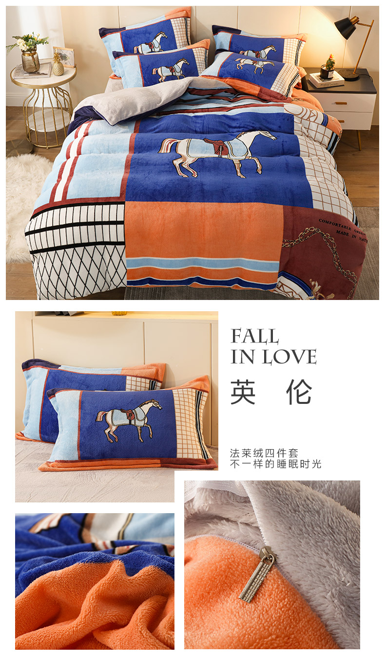 凡客 2024新款牛奶绒大版印花四件套 英伦