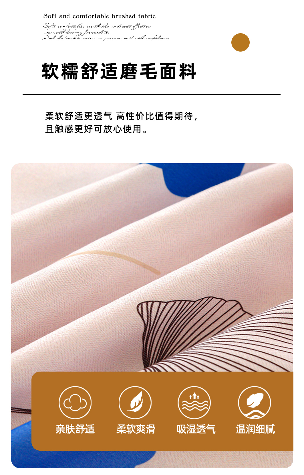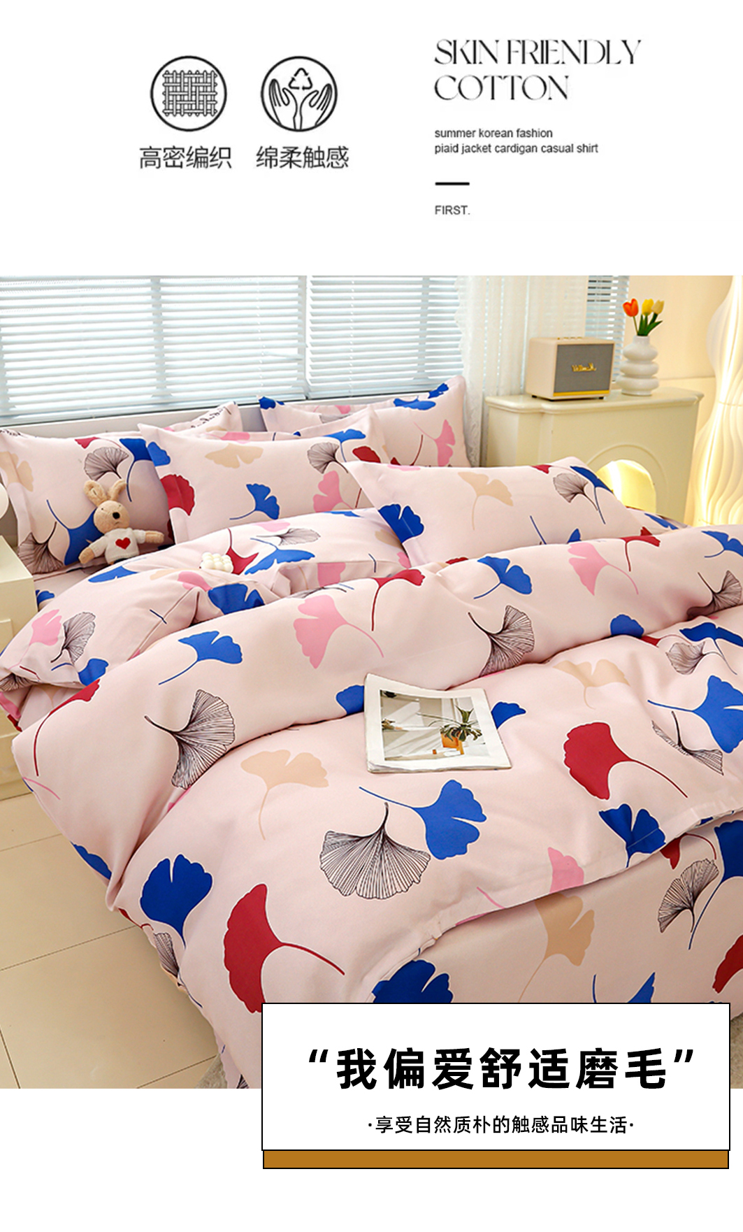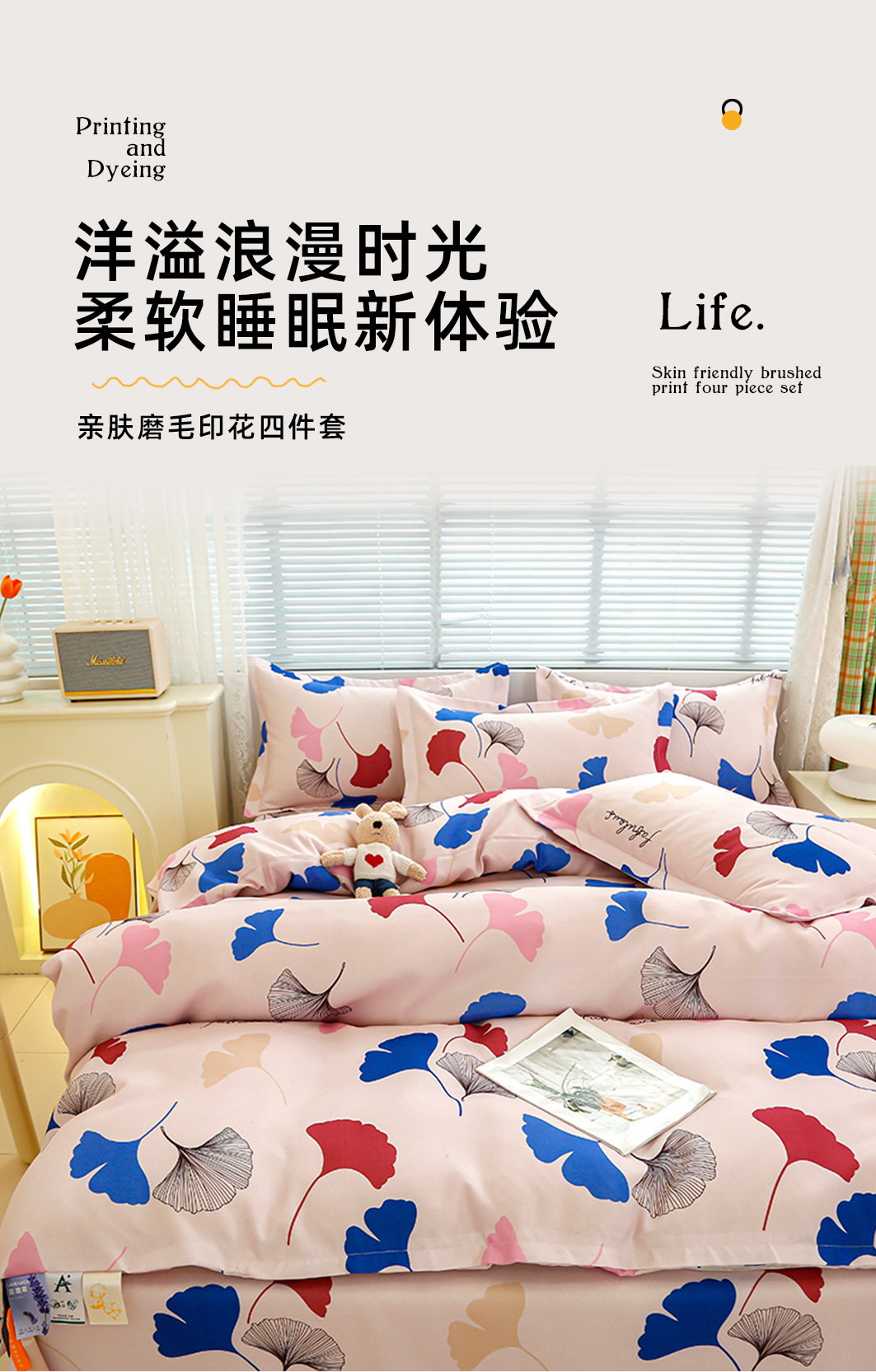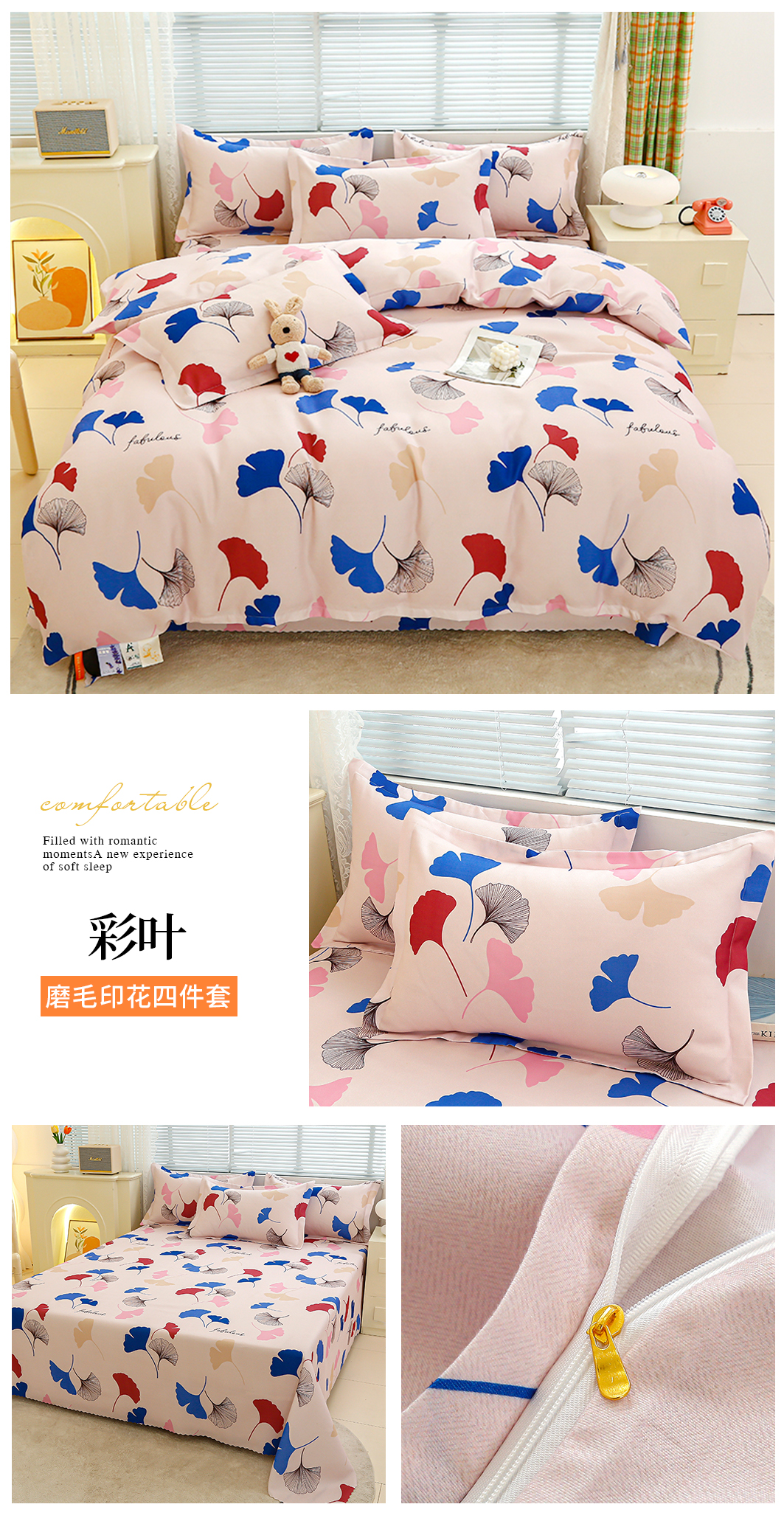 商品名称:友承 2025新款亲肤磨毛植物羊绒印花四件套 彩叶