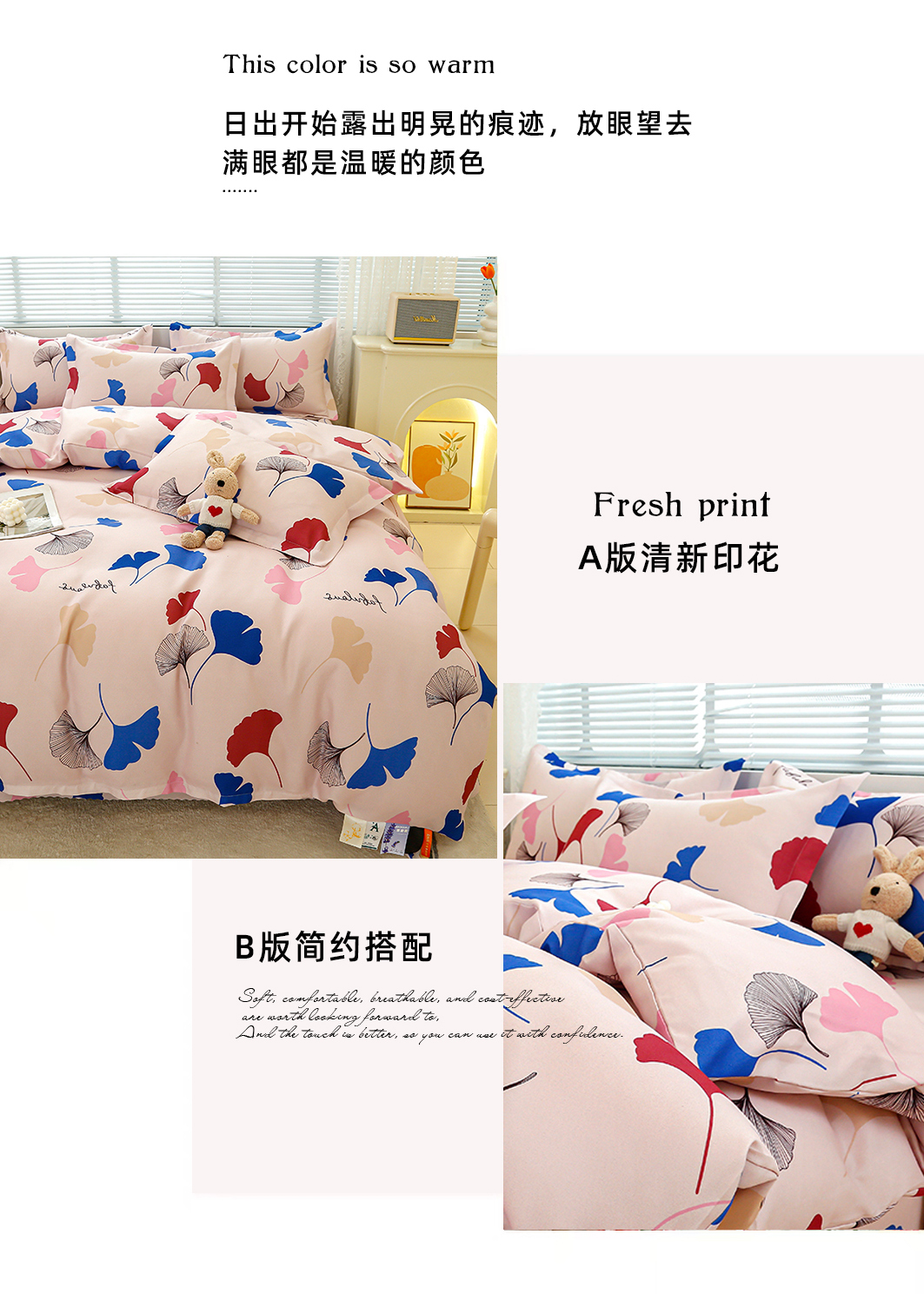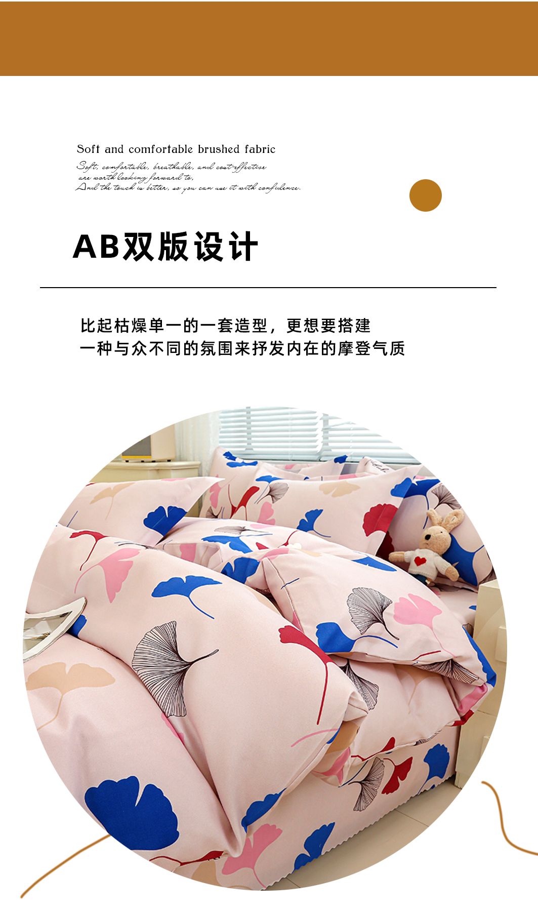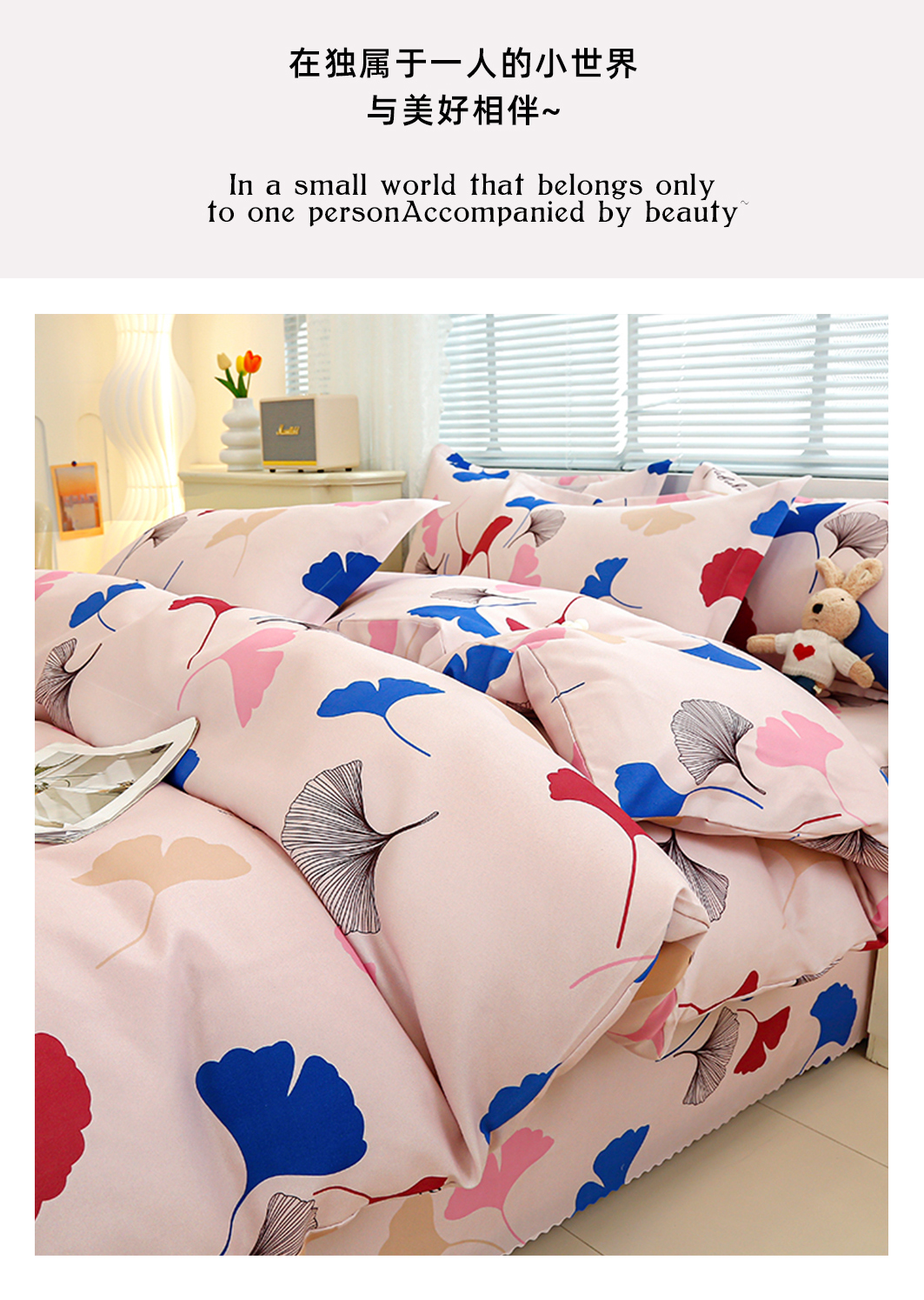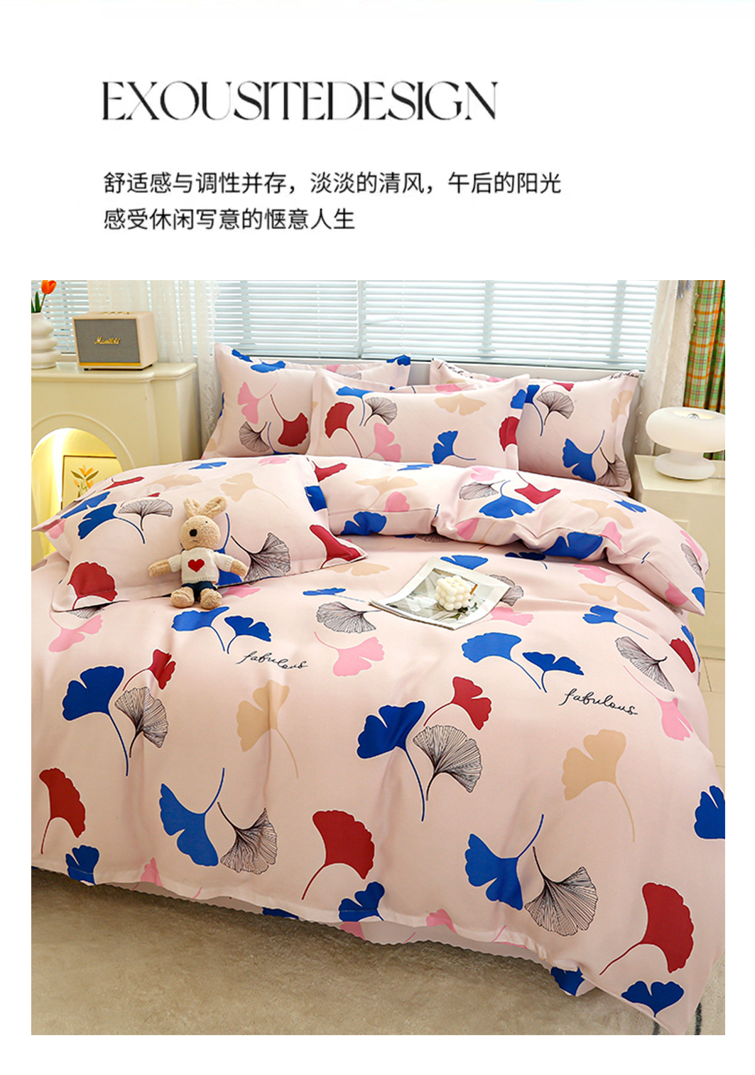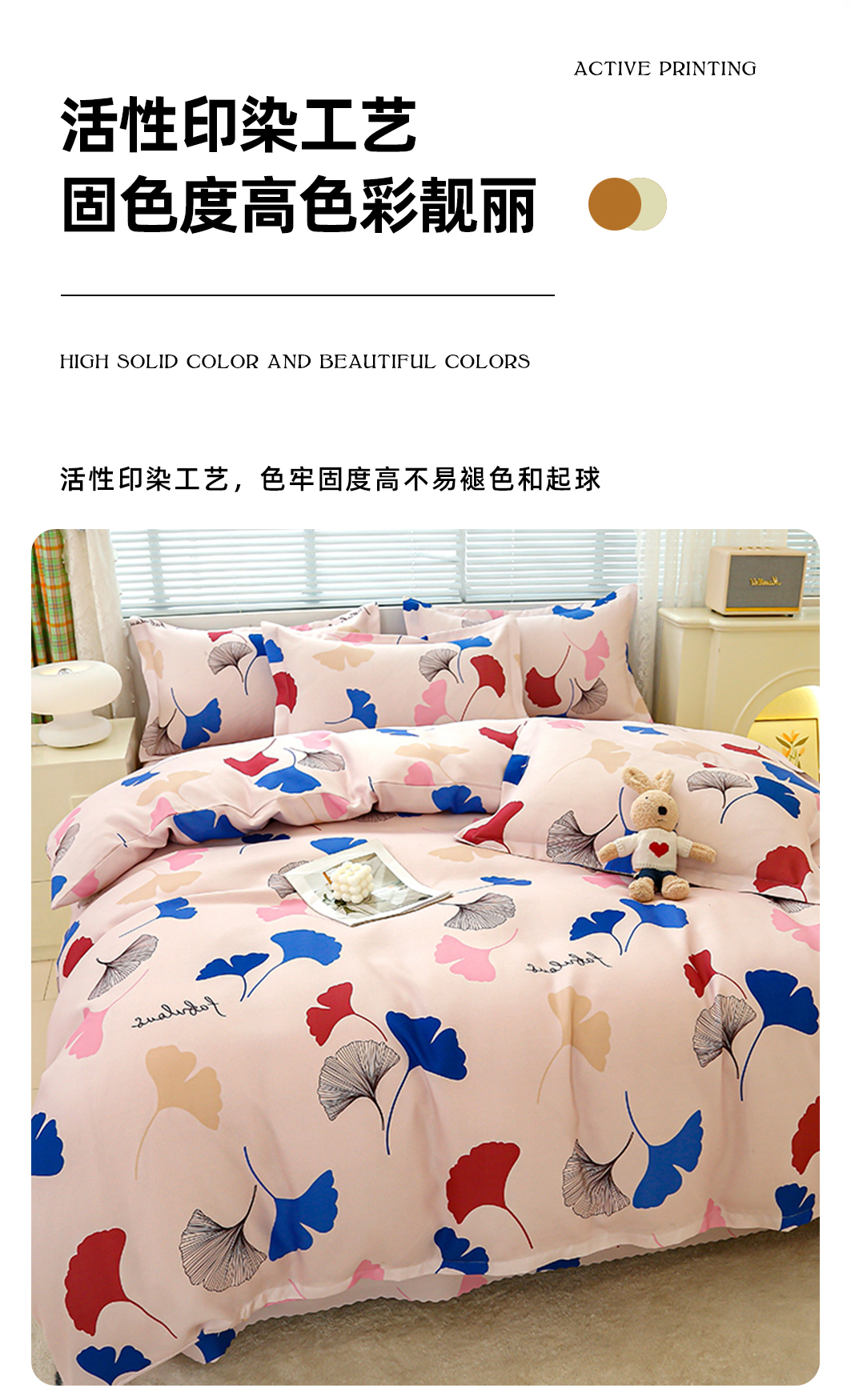 友承 2025新款亲肤磨毛植物羊绒印花四件套 彩叶