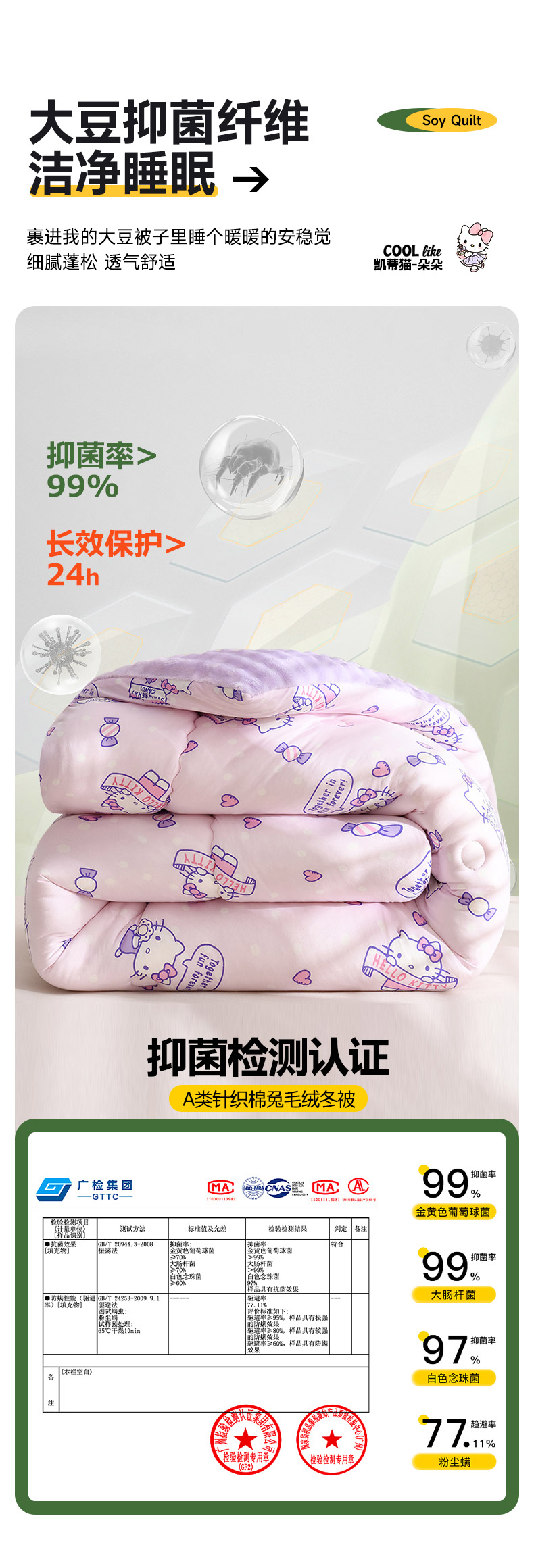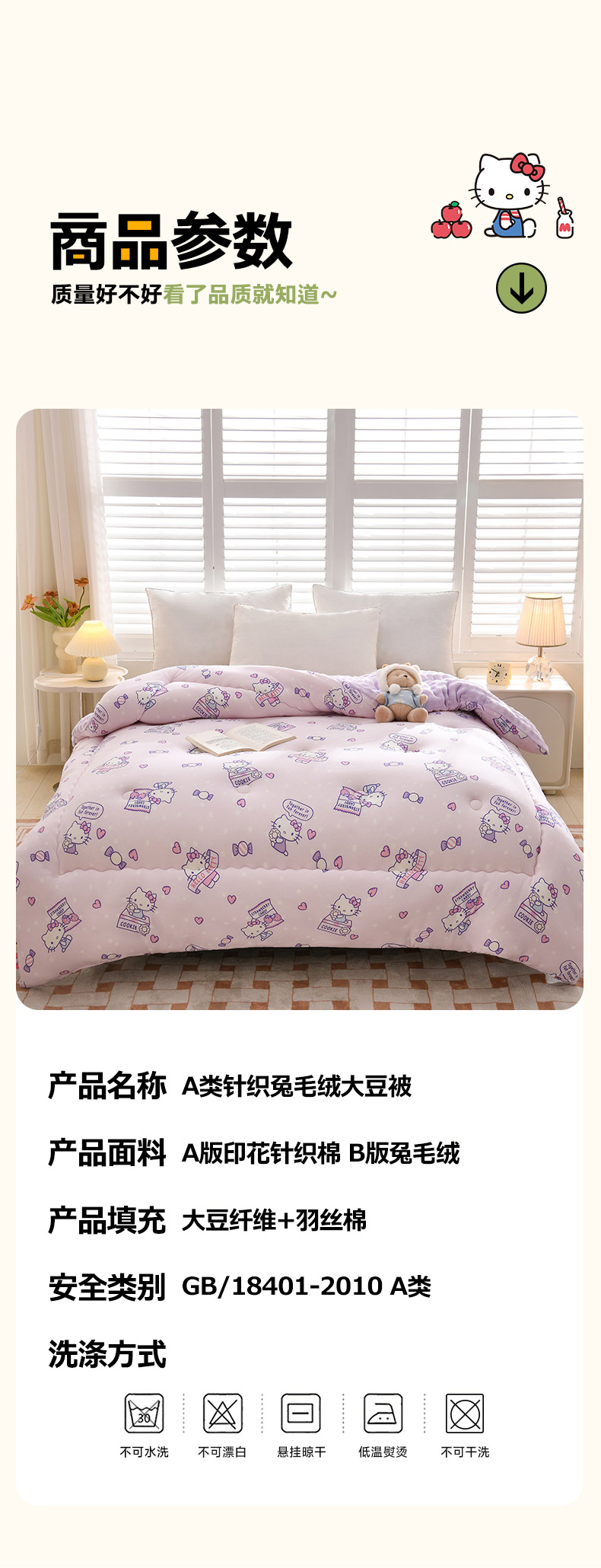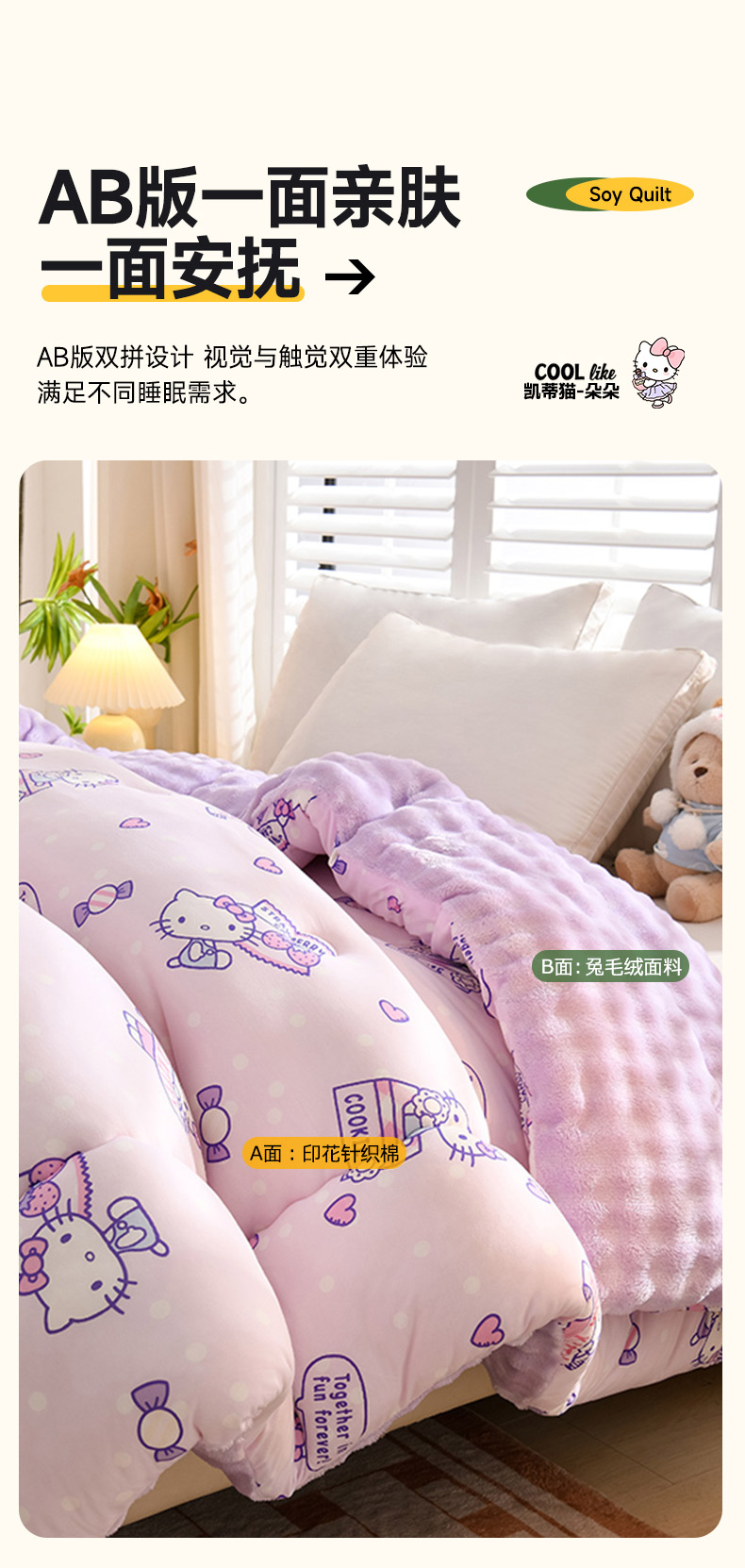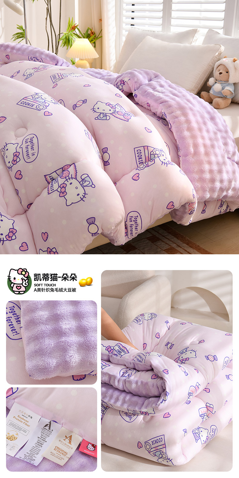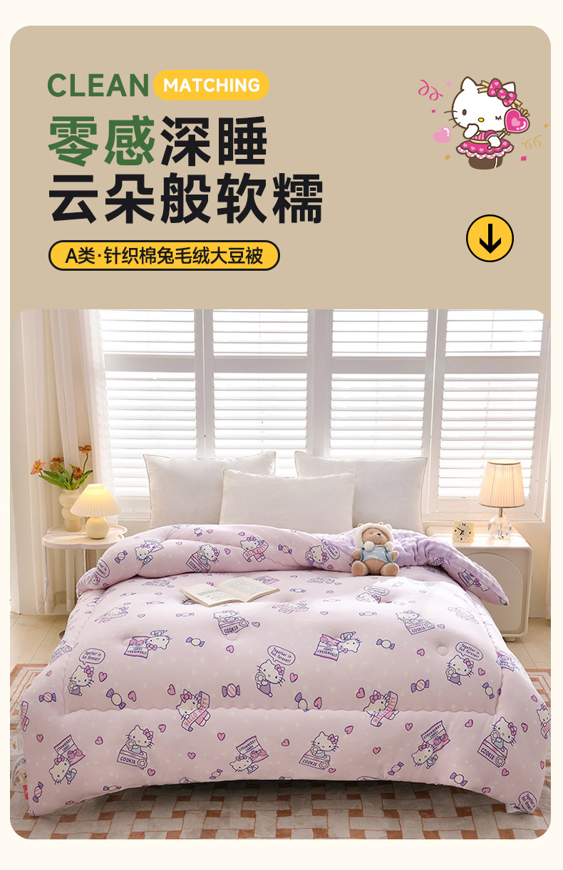 • 91家纺网 家纺一手货源 找家纺 艾兜坊 2024新款A类针织棉兔毛绒被冬被春秋被被芯被子 凯蒂猫-朵朵