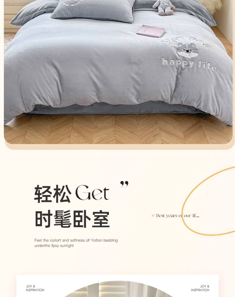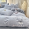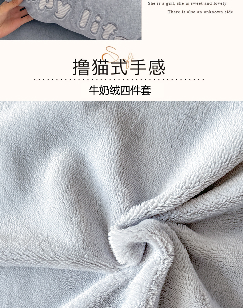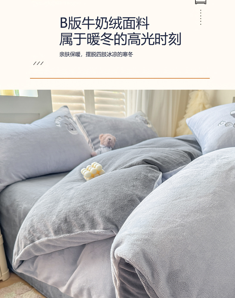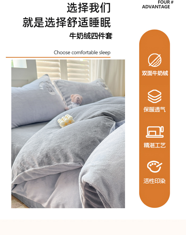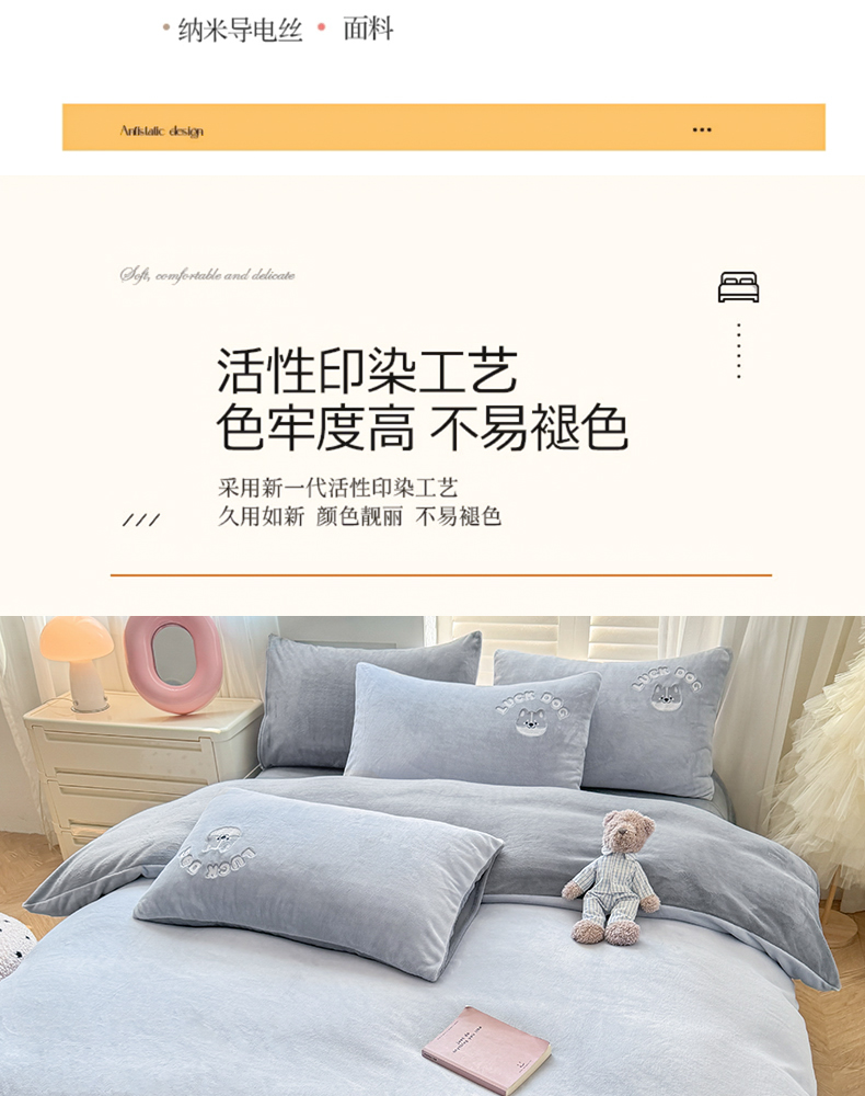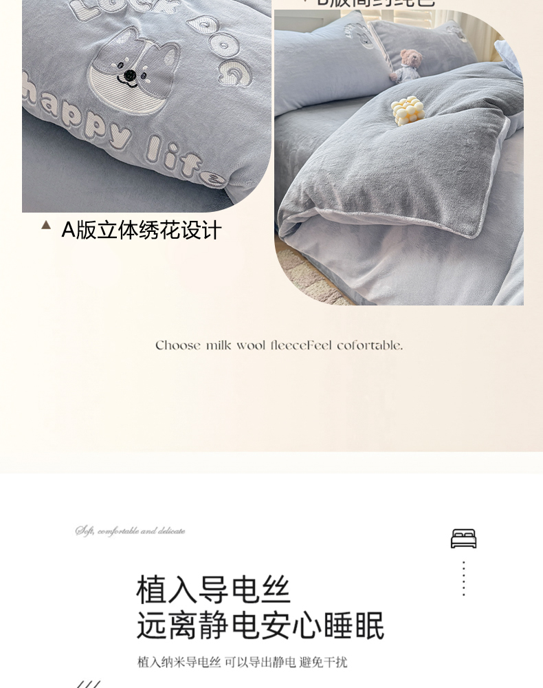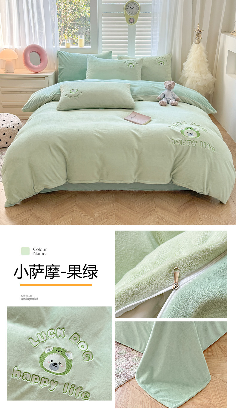 商品名称:梦舒羽 2025新款高克重小清新牛奶绒四件套冬季法莱绒珊瑚绒-刺绣小狗系列(风格一) 小八嘎-浅灰太空灰