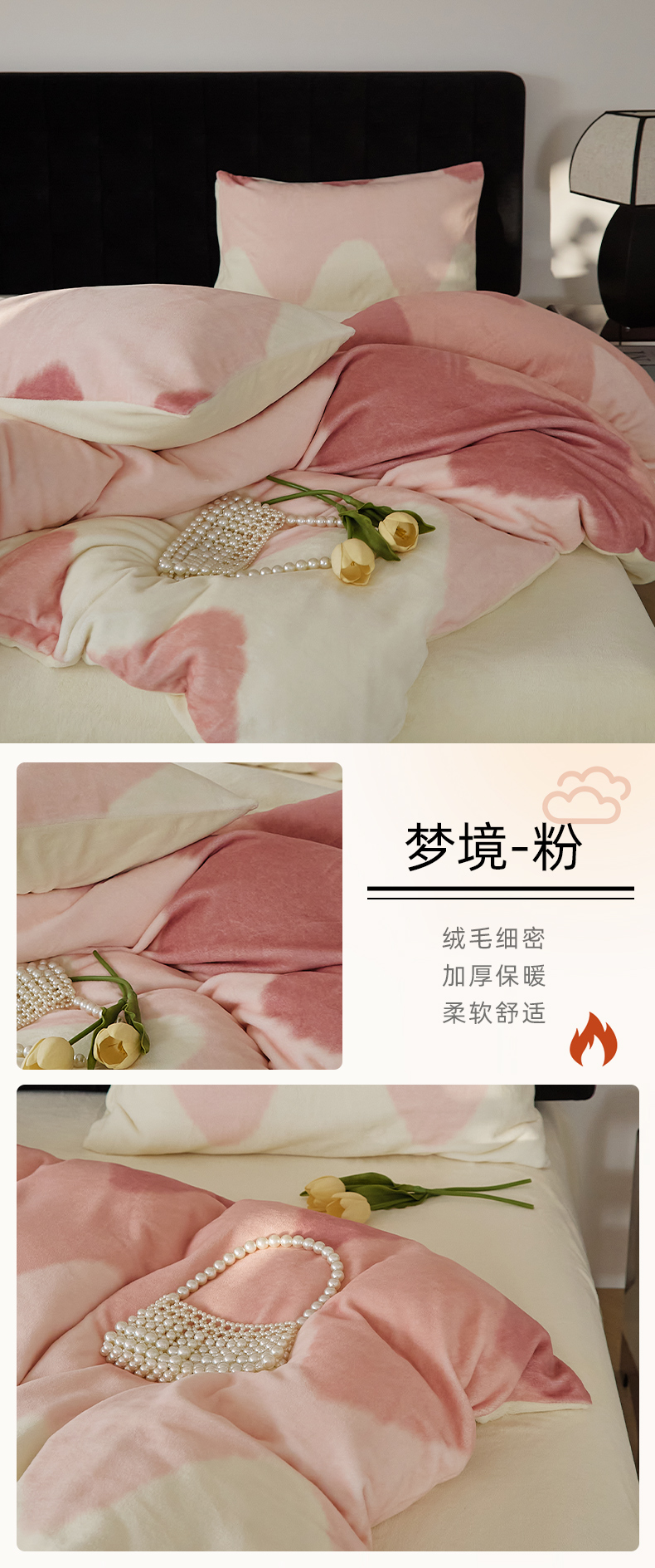 商品名称:时光里 2024新款牛奶绒四件套--梦境 梦境-粉