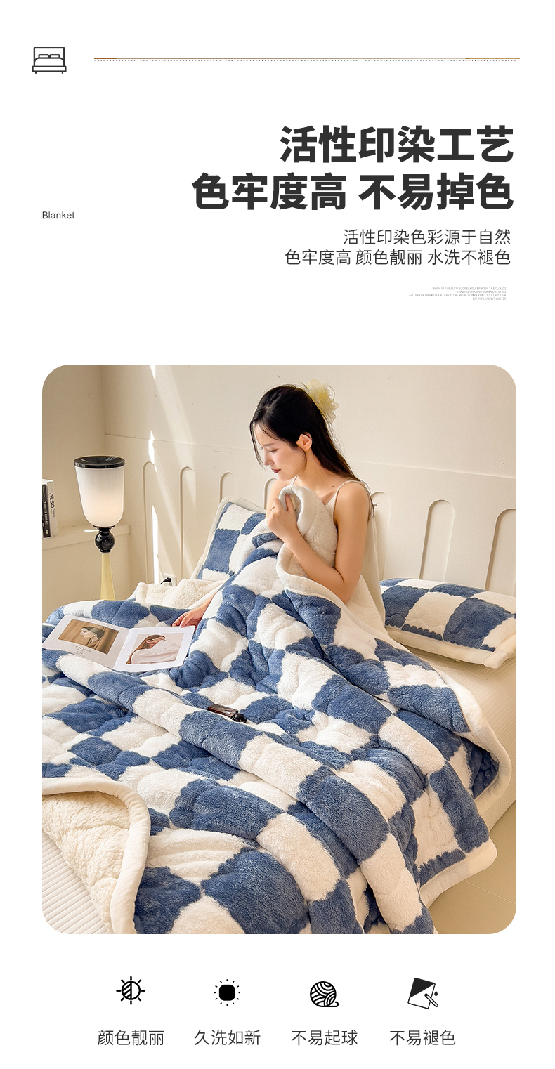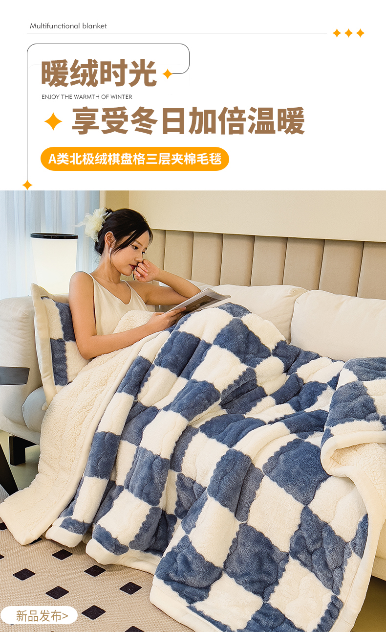 当前位置: 91家纺网 > 商品网购 > 毛毯休闲毯绒毯 > 毛毯 > 慕木家纺 2025新款A类北极绒棋盘格三层夹棉双面毛毯 三层夹棉毛毯-棋盘格深海蓝+白