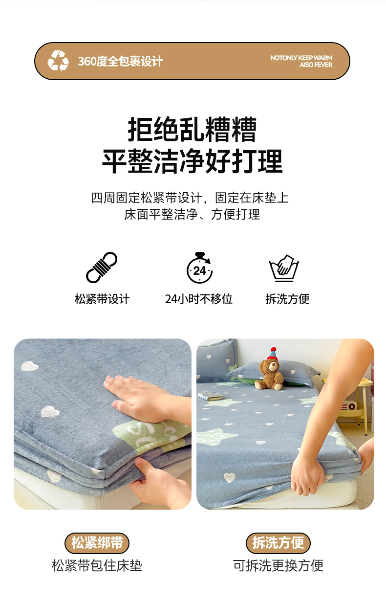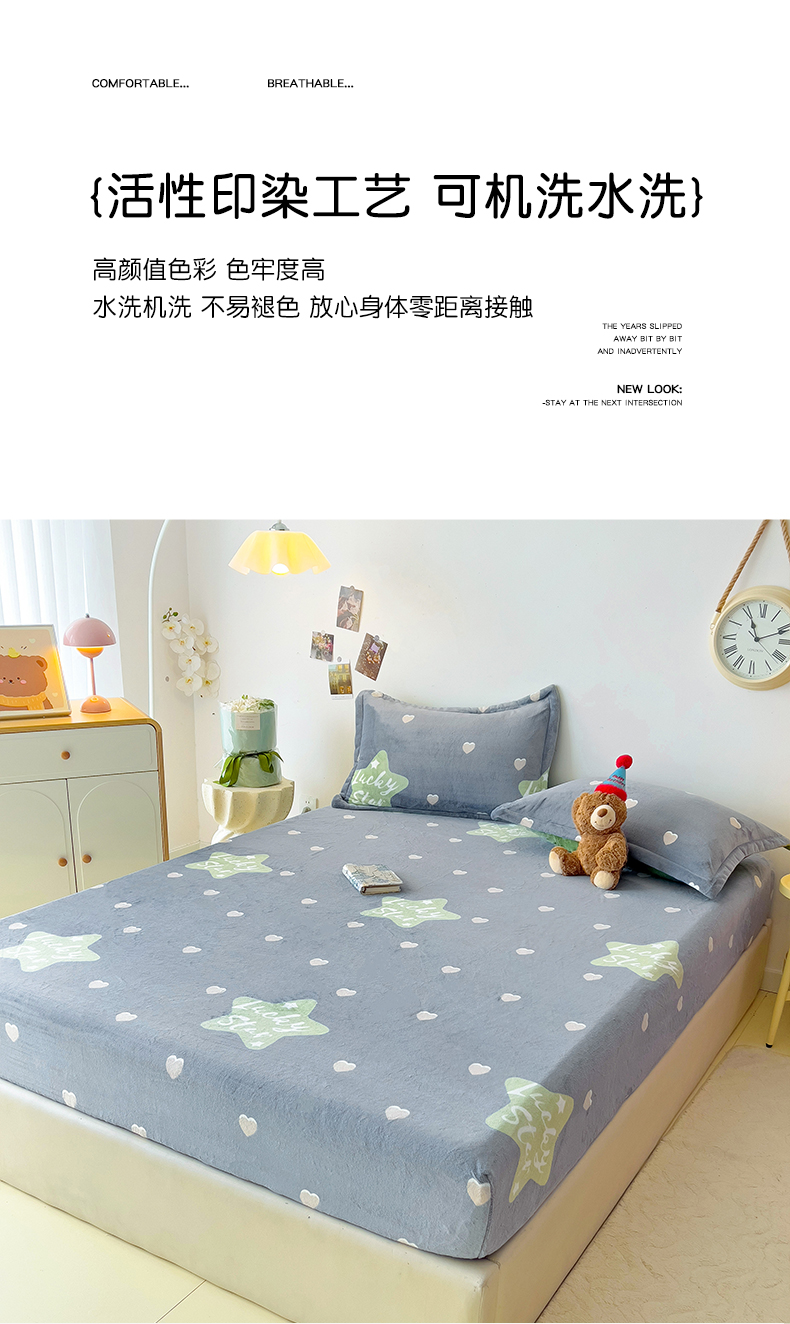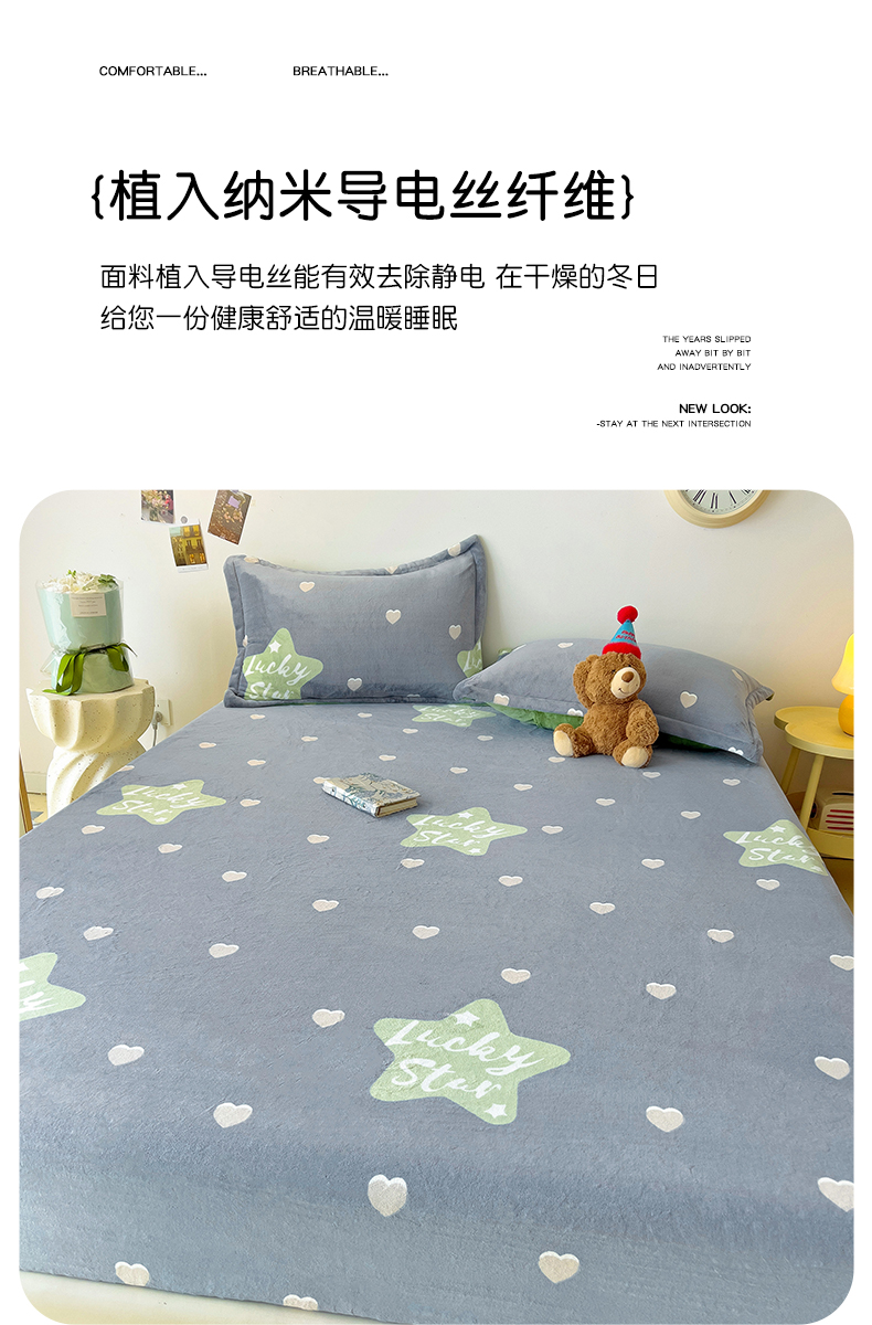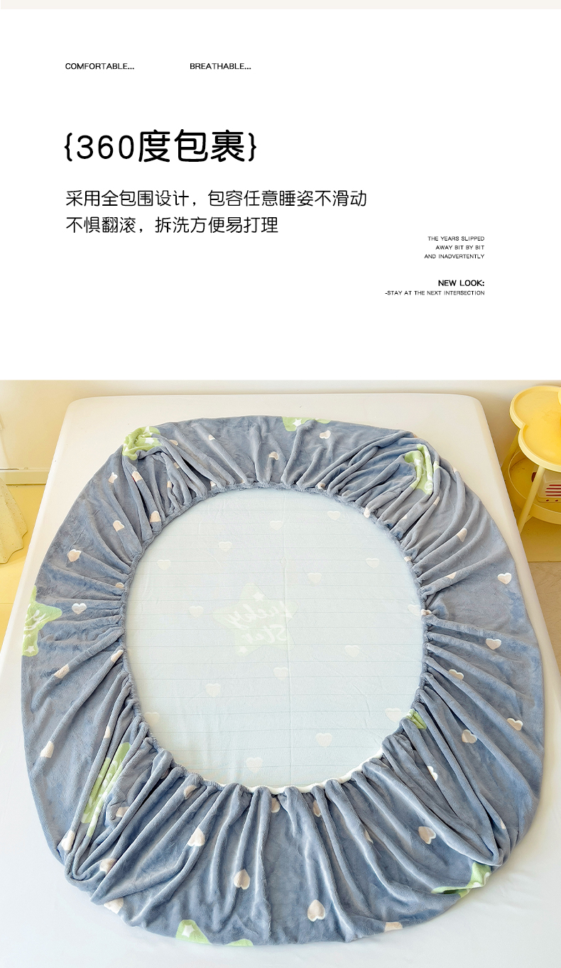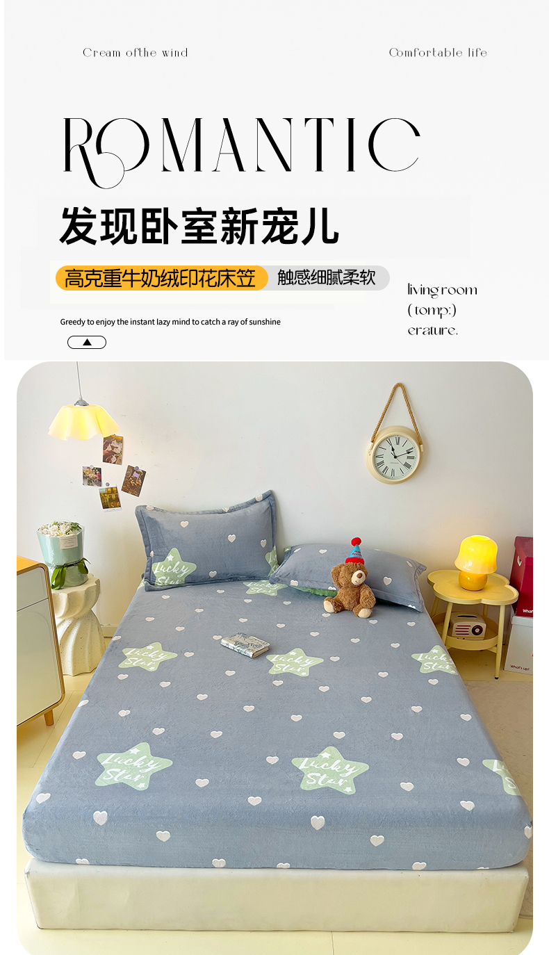 商品名称:大柏树 2025新款A类高克重亲肤舒适牛奶绒印花四件套-单床笠可定制 小幸运-深灰