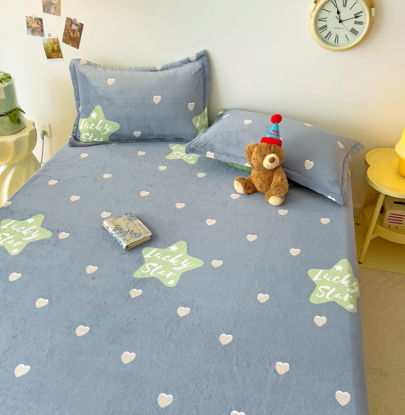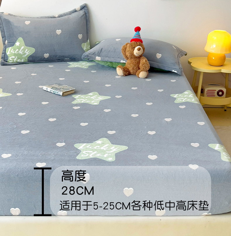 大柏树 2025新款A类高克重亲肤舒适牛奶绒印花四件套-单床笠可定制 小幸运-深灰