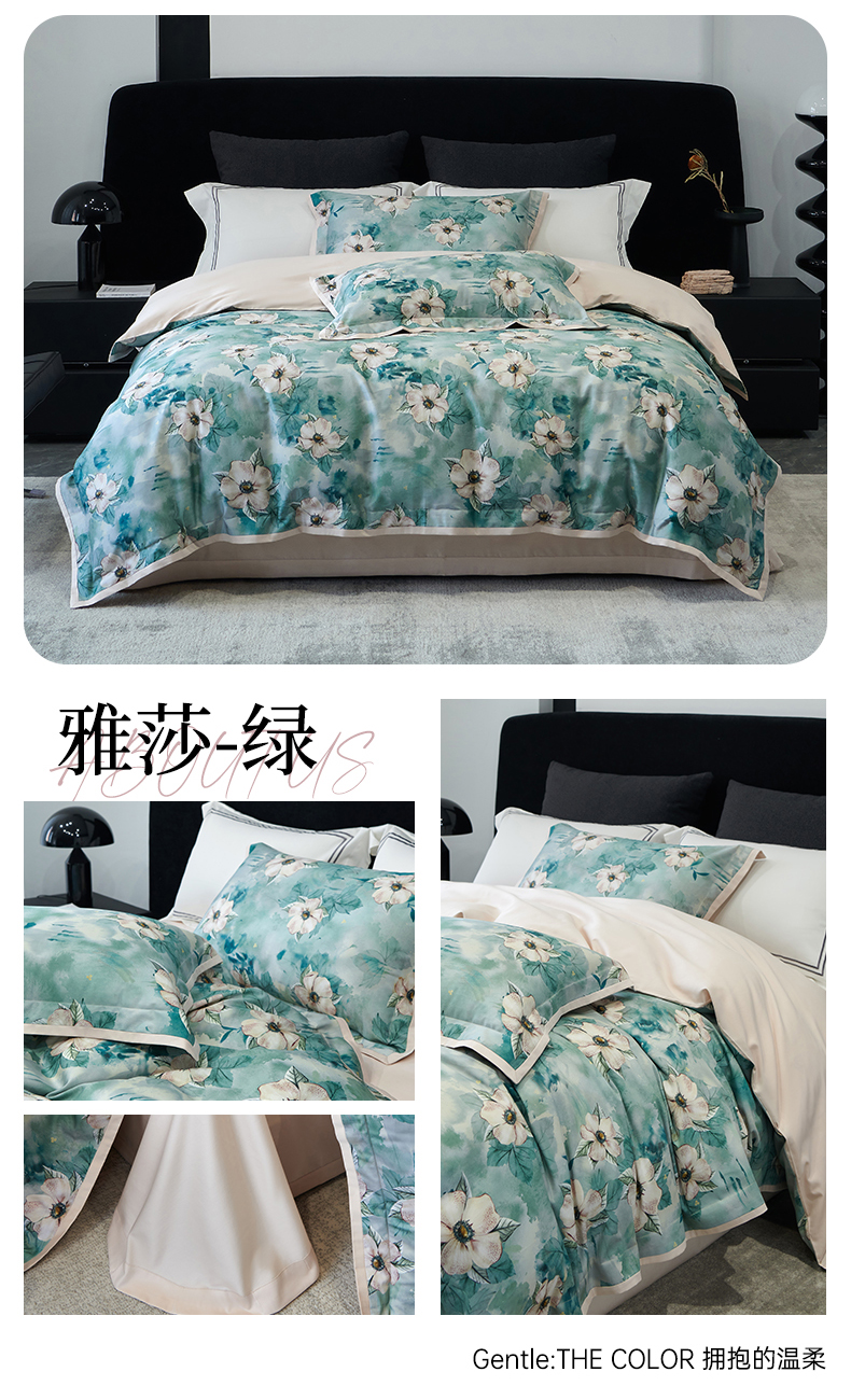 商品名称:阿那亚 2024新款100支长绒棉四件套数码印花四件套全棉四件套(控价378/398) 雅莎-绿
