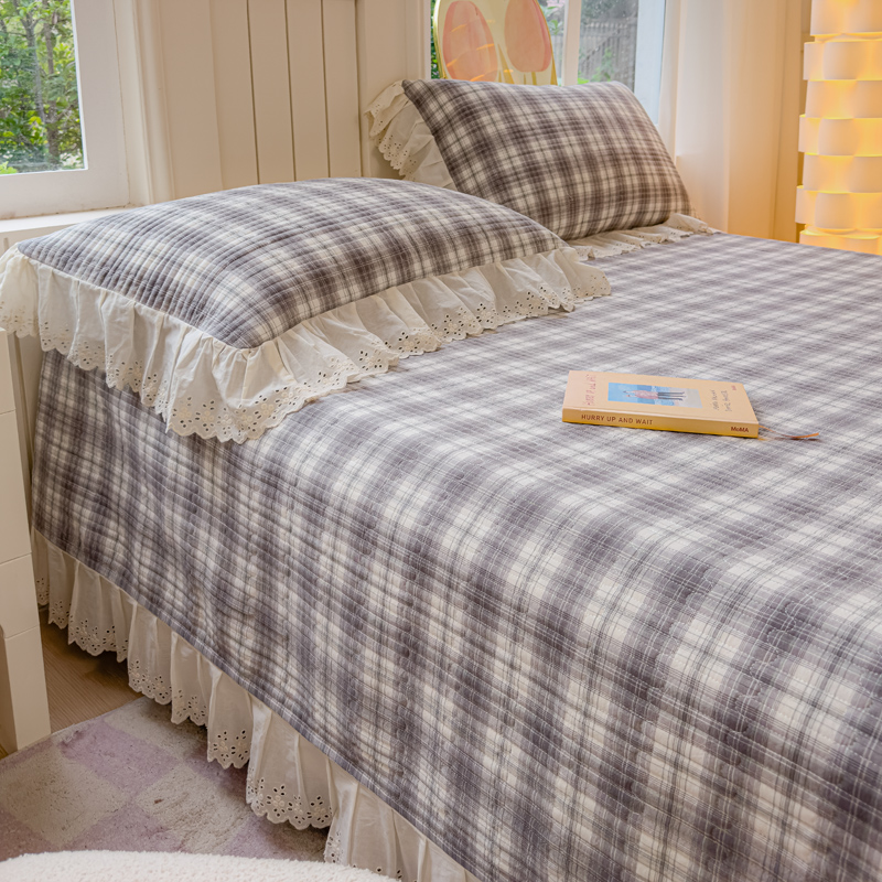 商品名称:久典家居 2024新款A类法式全棉色织水洗棉单床盖 可可灰