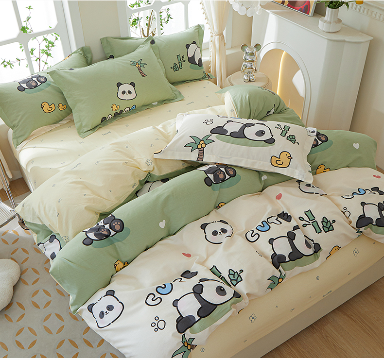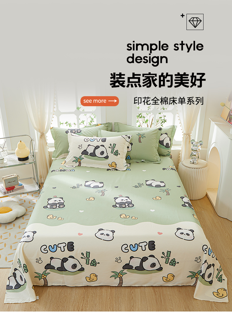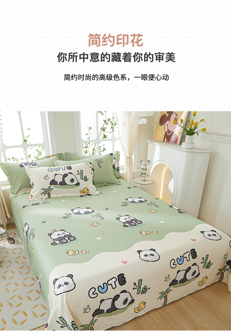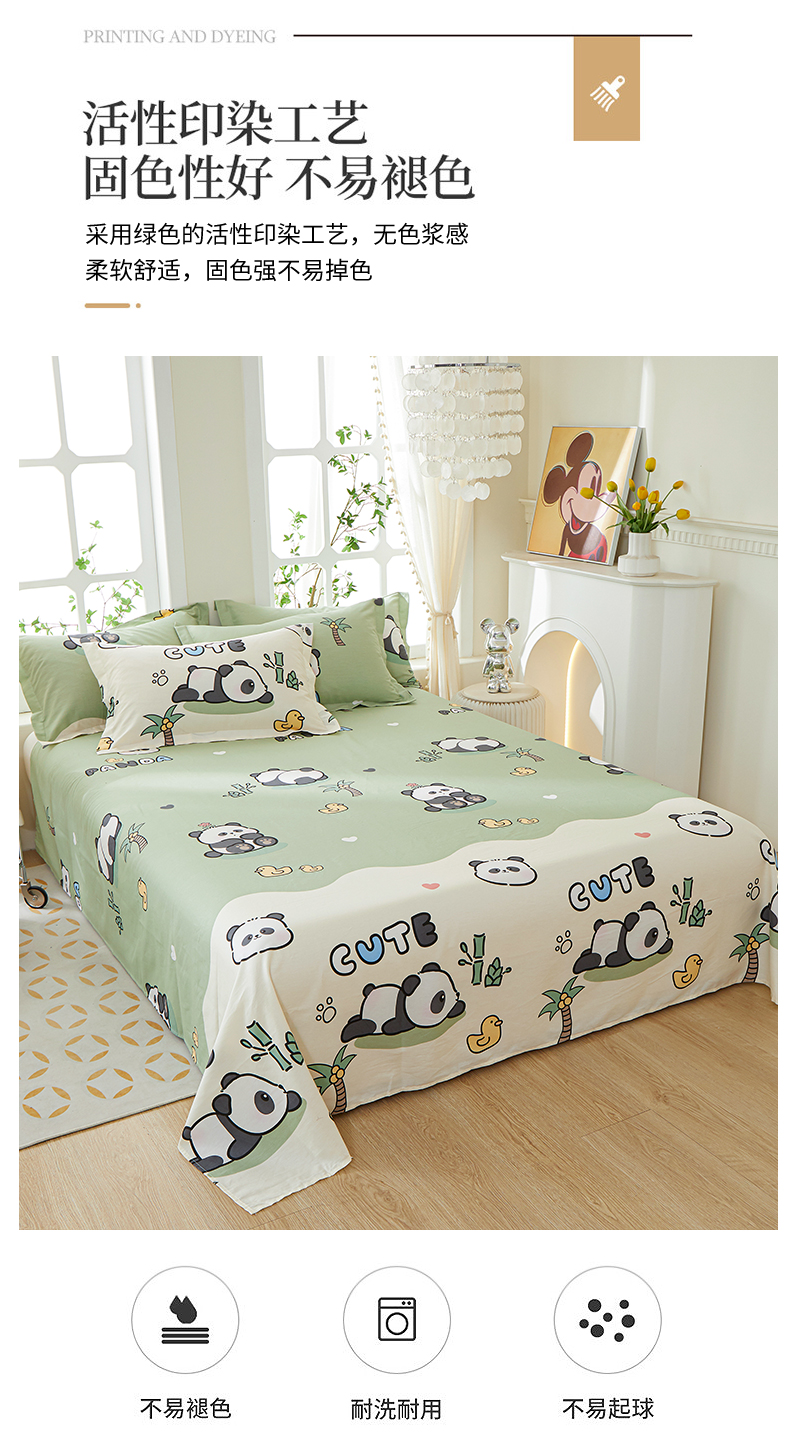 商品名称:钰伶 2025新款全棉简约12868纯棉单床单熊猫戏水A版