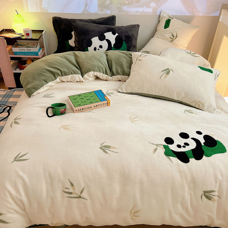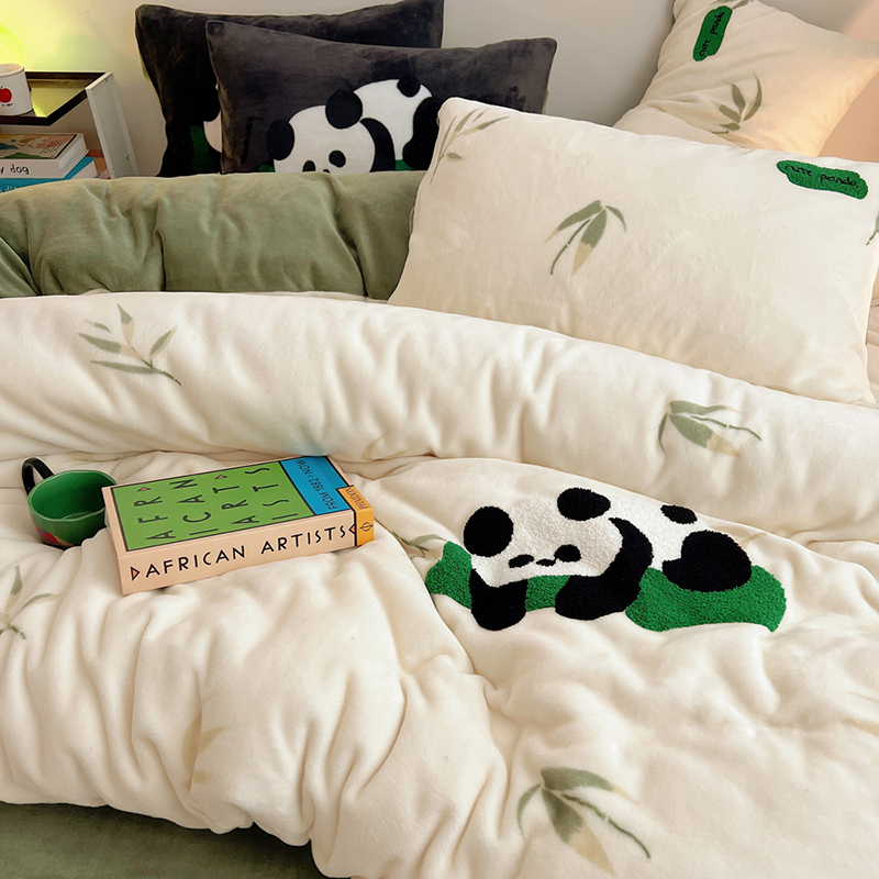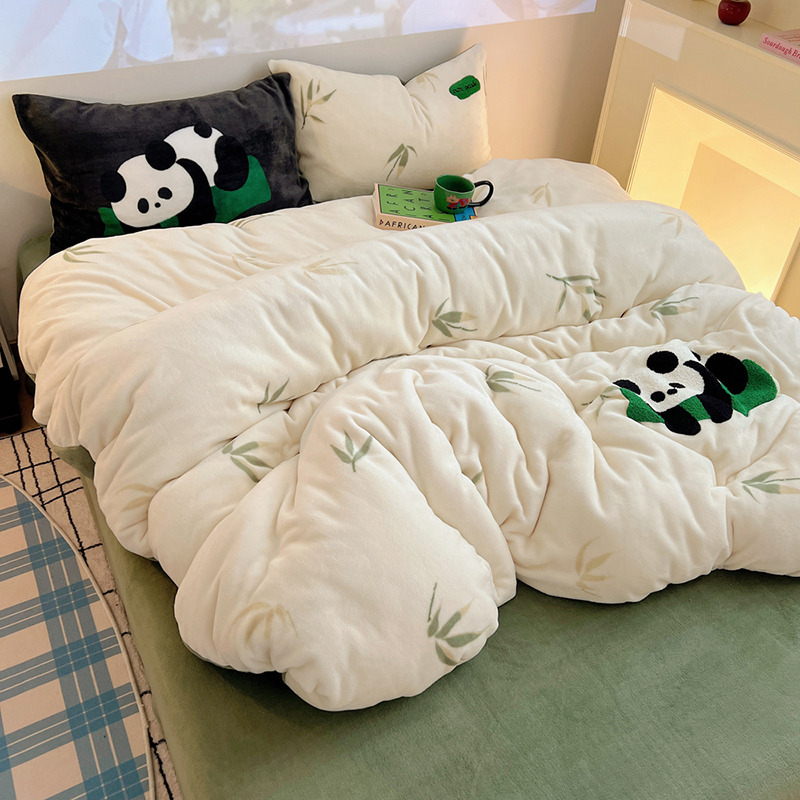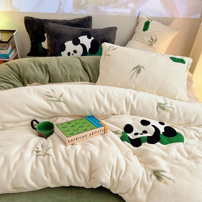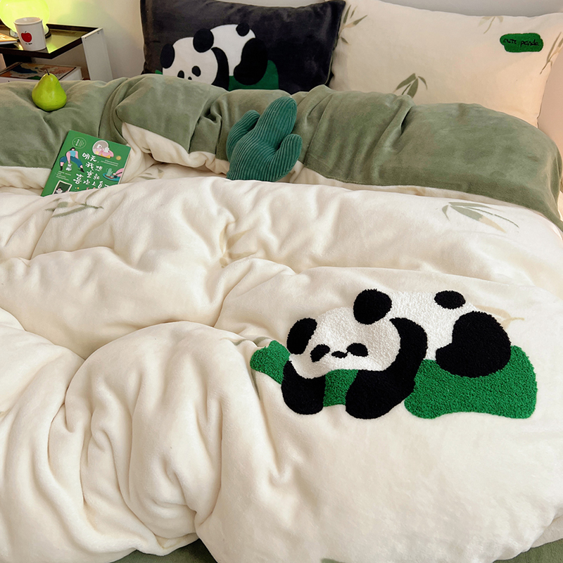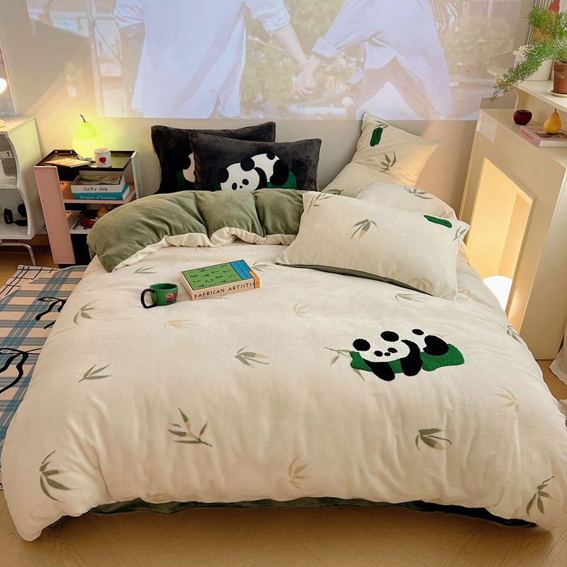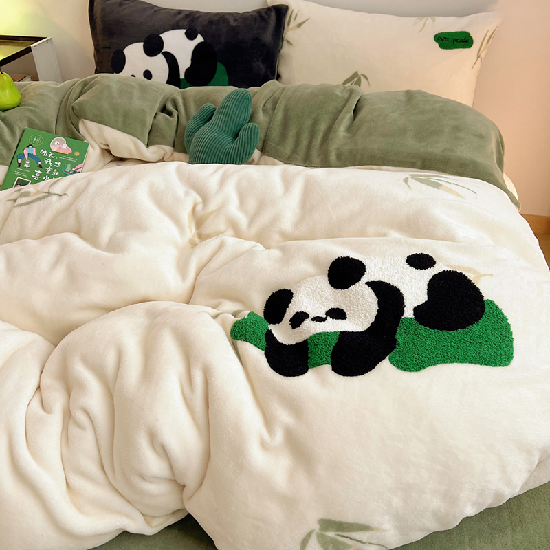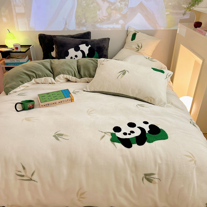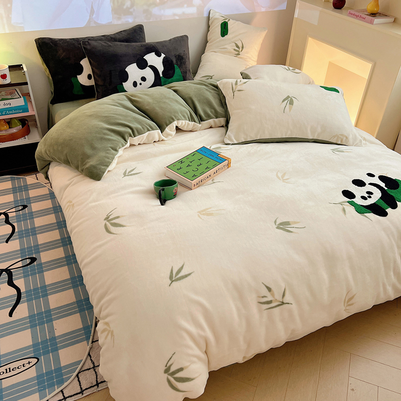 商品名称:桃喜 2024新款230g牛奶绒绣花系列四件套 竹子熊猫