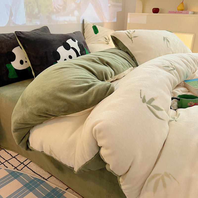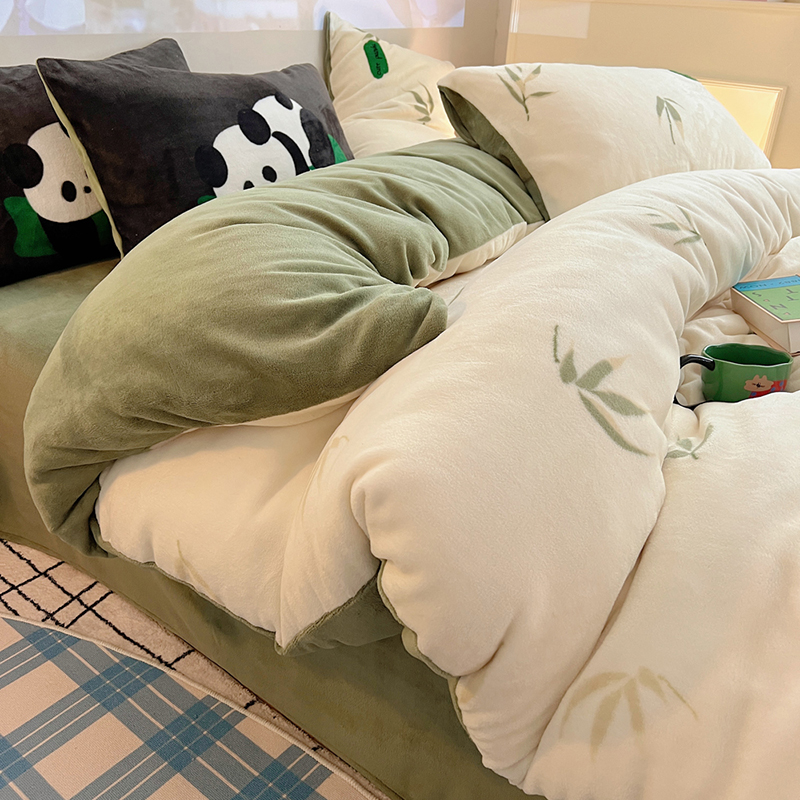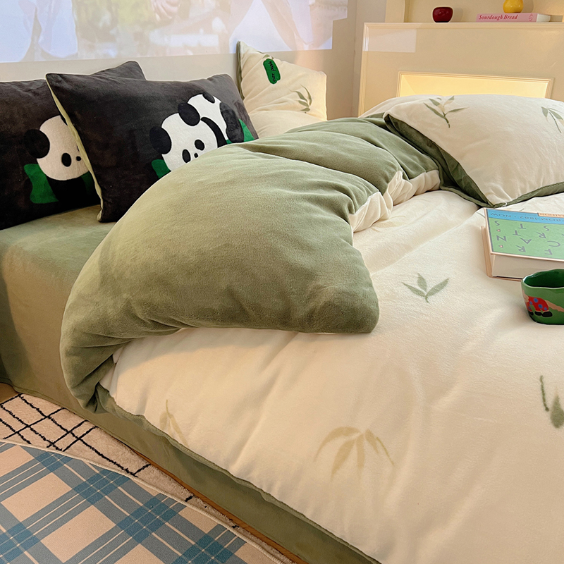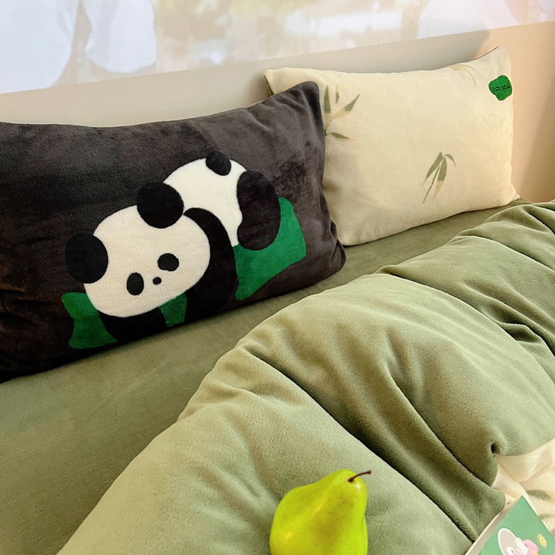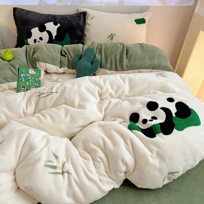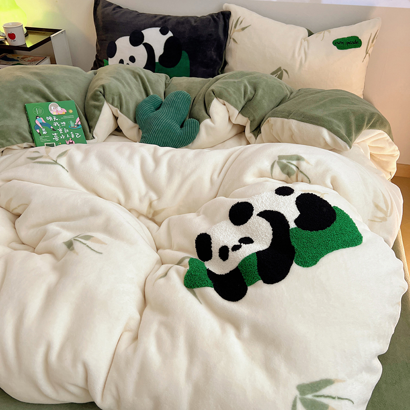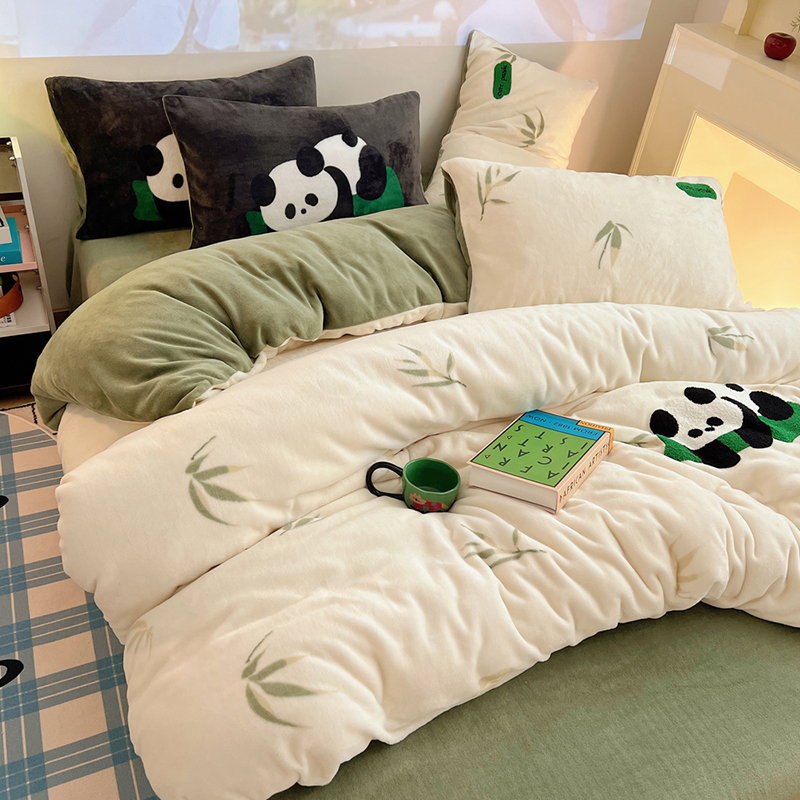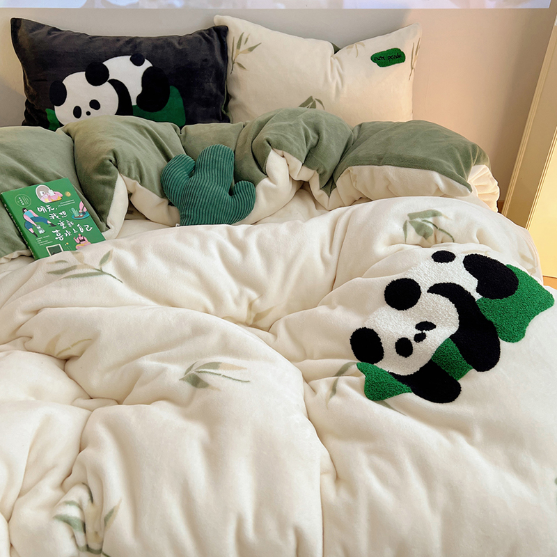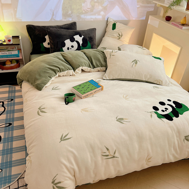 商品名称:桃喜 2024新款230g牛奶绒绣花系列四件套 竹子熊猫