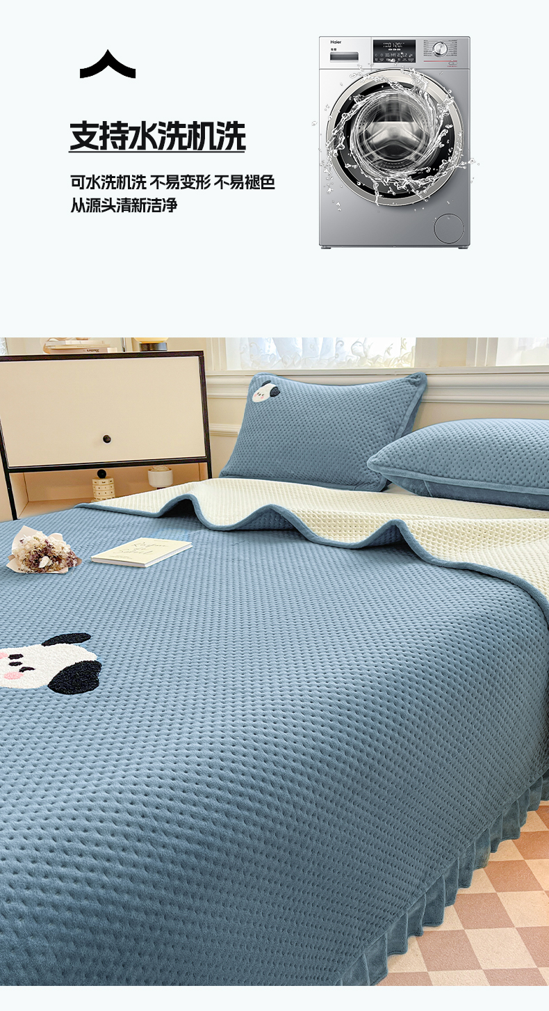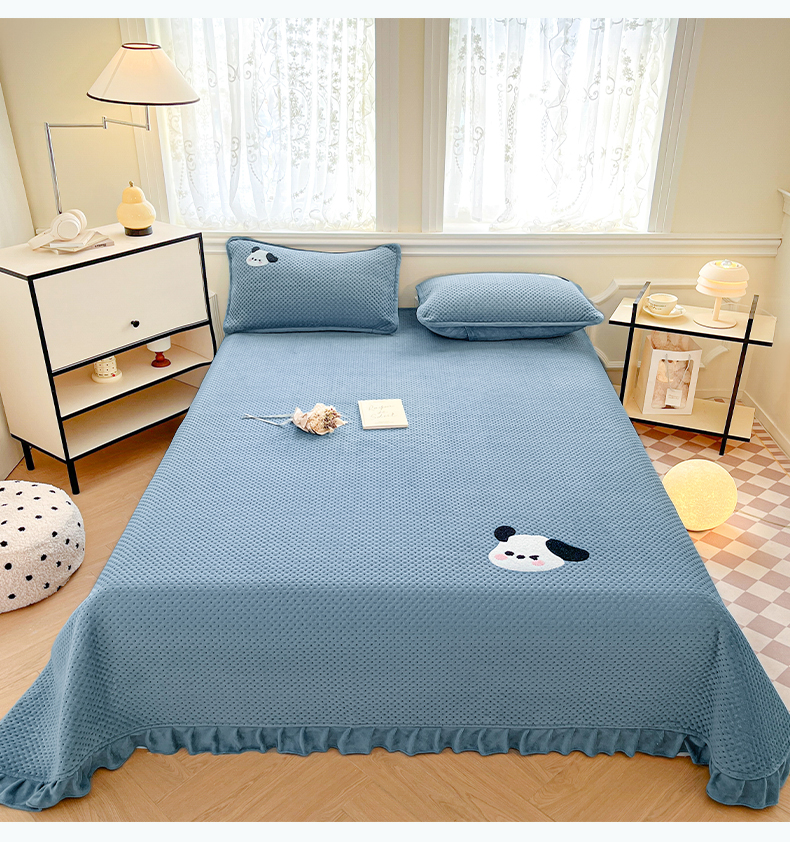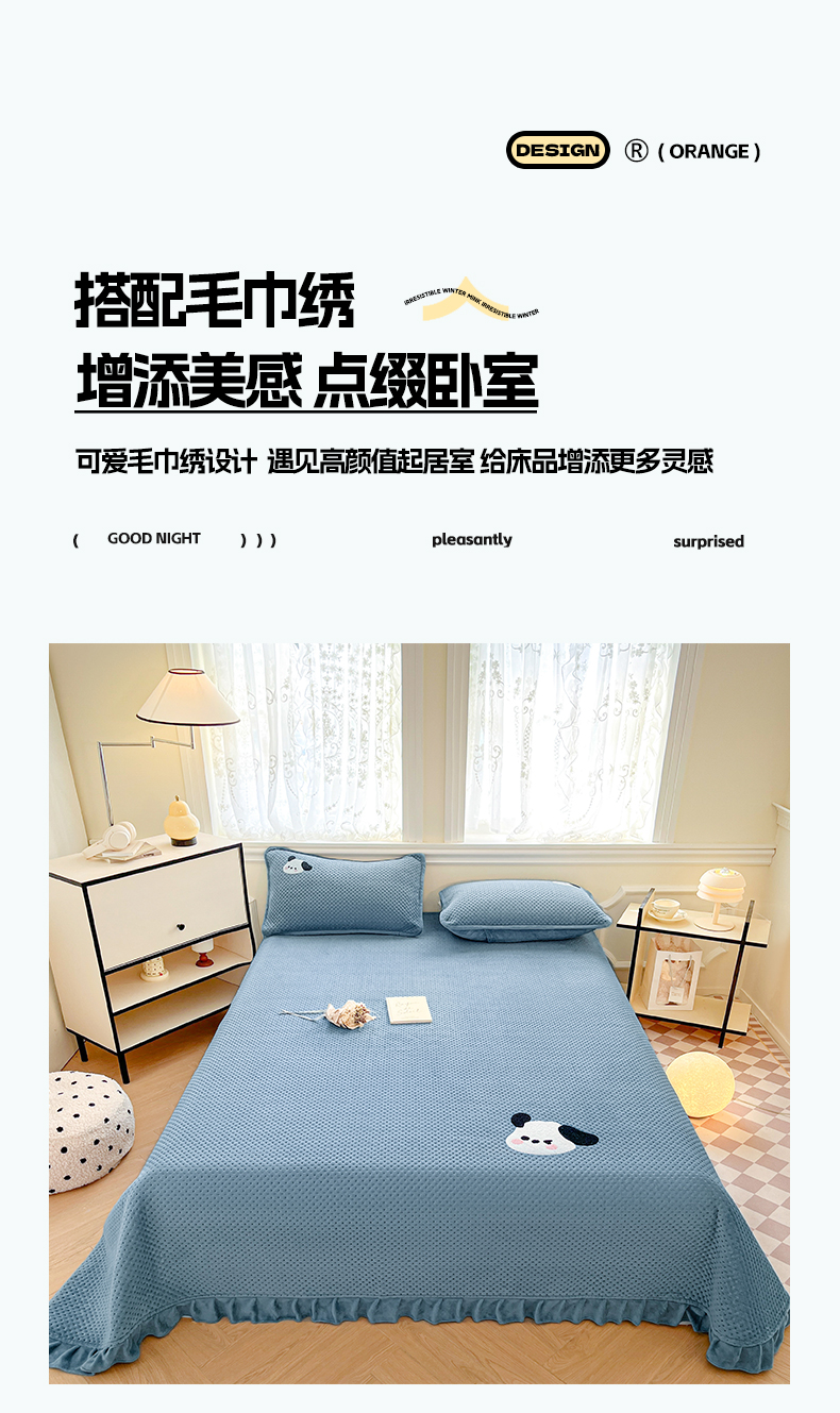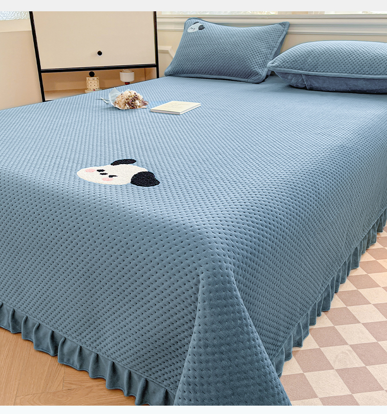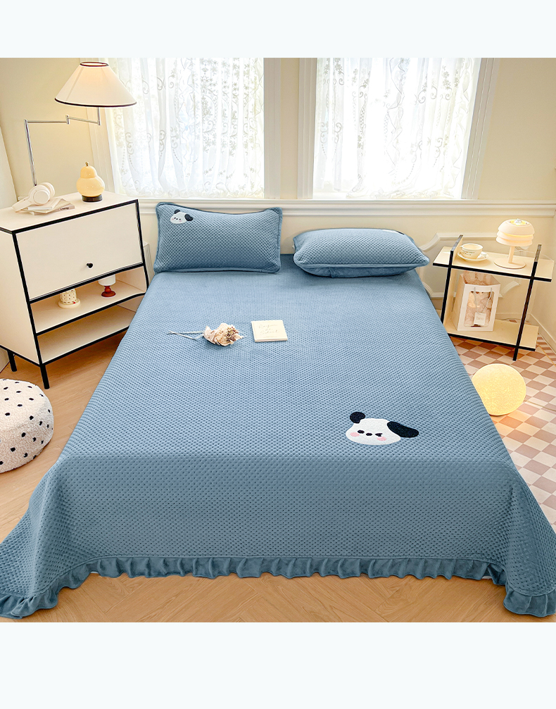 商品名称:居眠 2024新款华夫格毛巾绣夹棉床单 欢乐狗-雾蓝