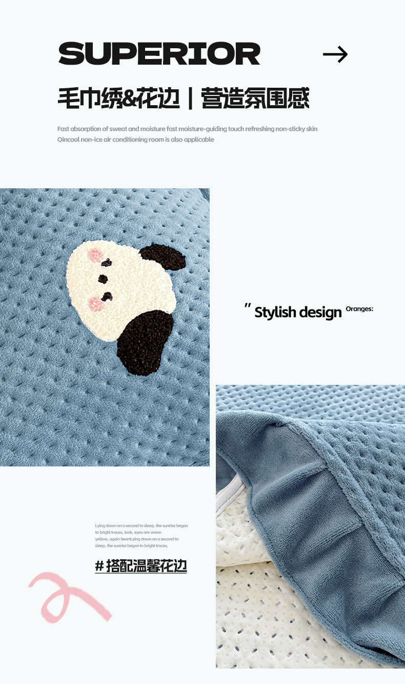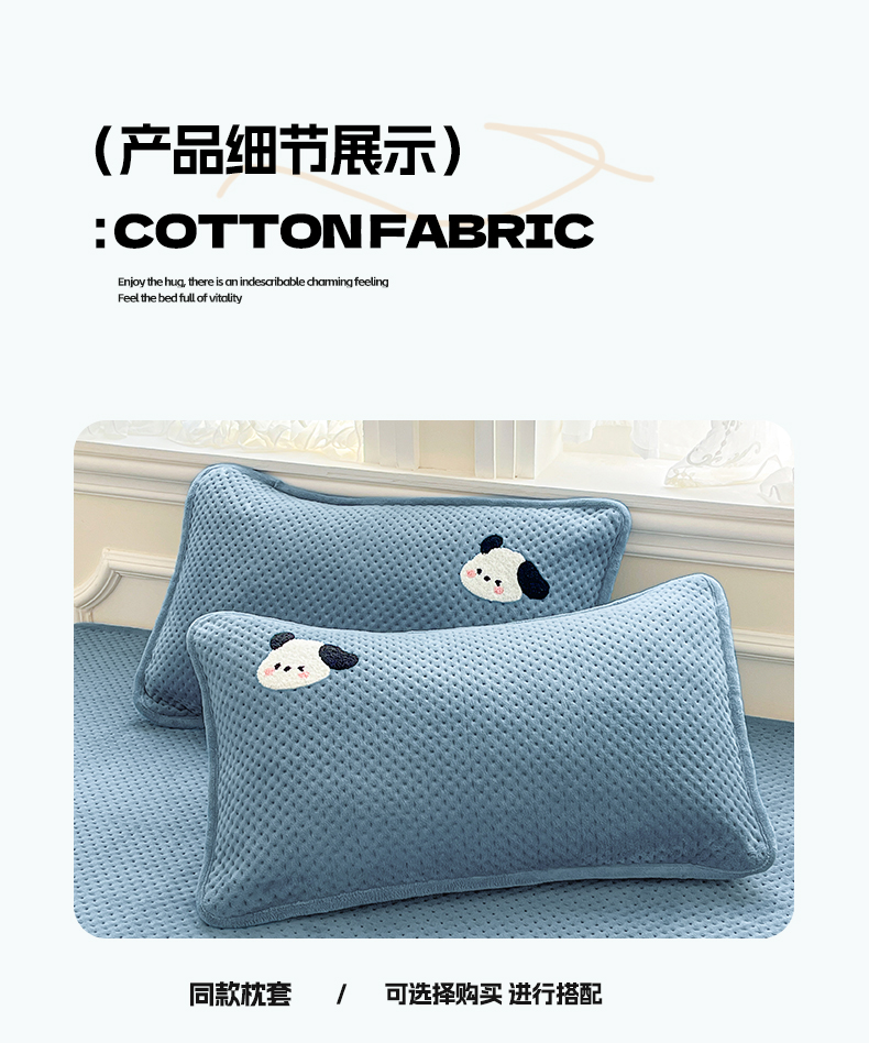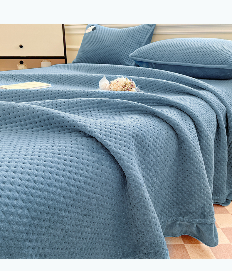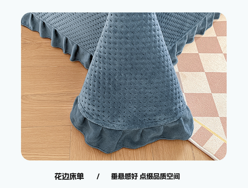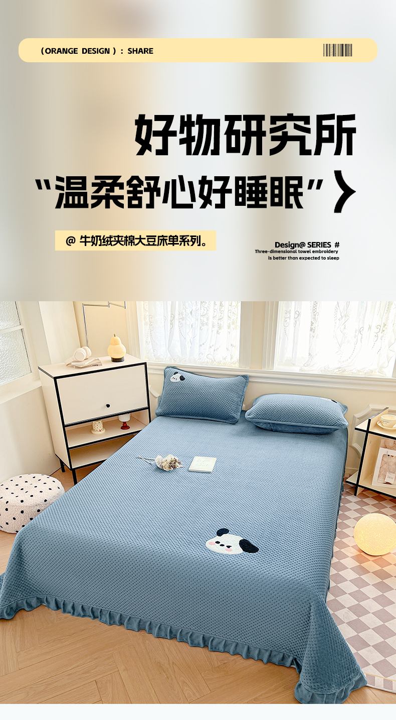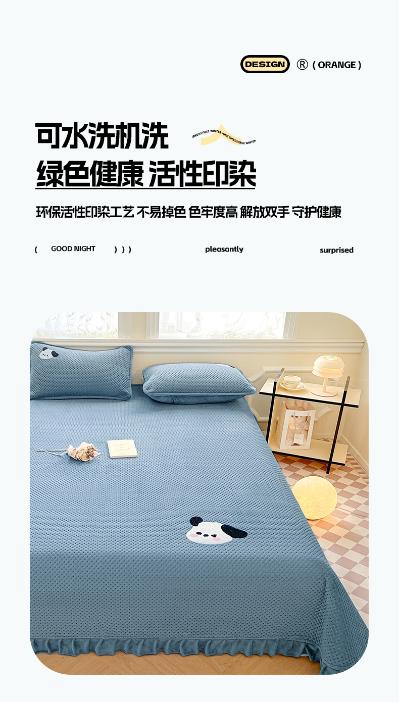 商品名称:居眠 2024新款华夫格毛巾绣夹棉床单 欢乐狗-雾蓝