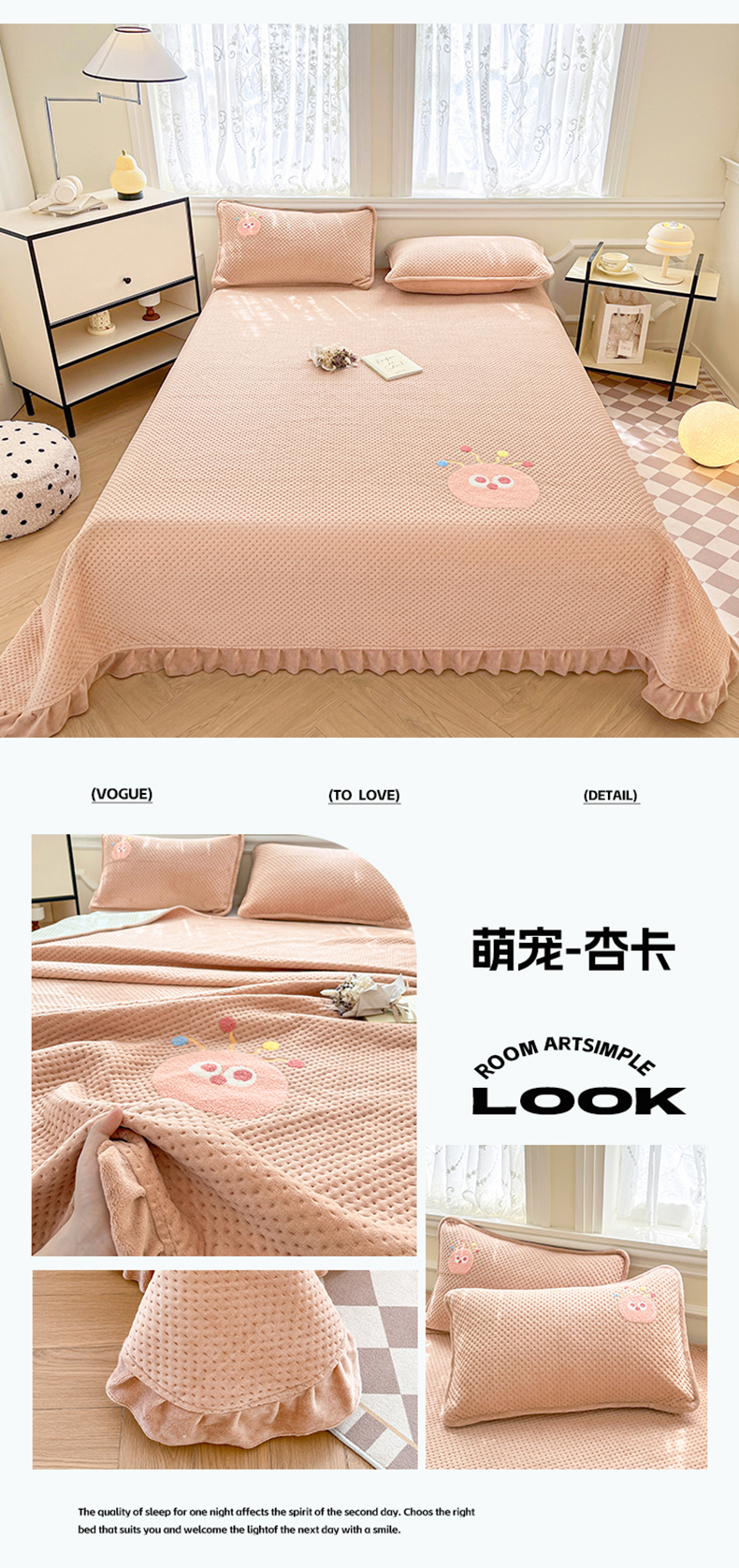 (总)居眠 2026新款熊熊夹棉床笠,熊熊-白色,熊熊-咖色,熊熊-灰色,熊熊-粉色