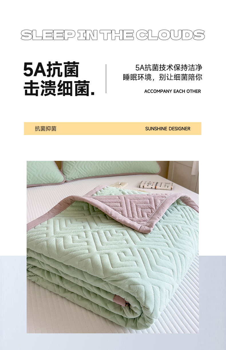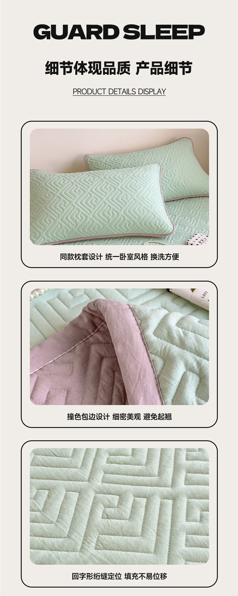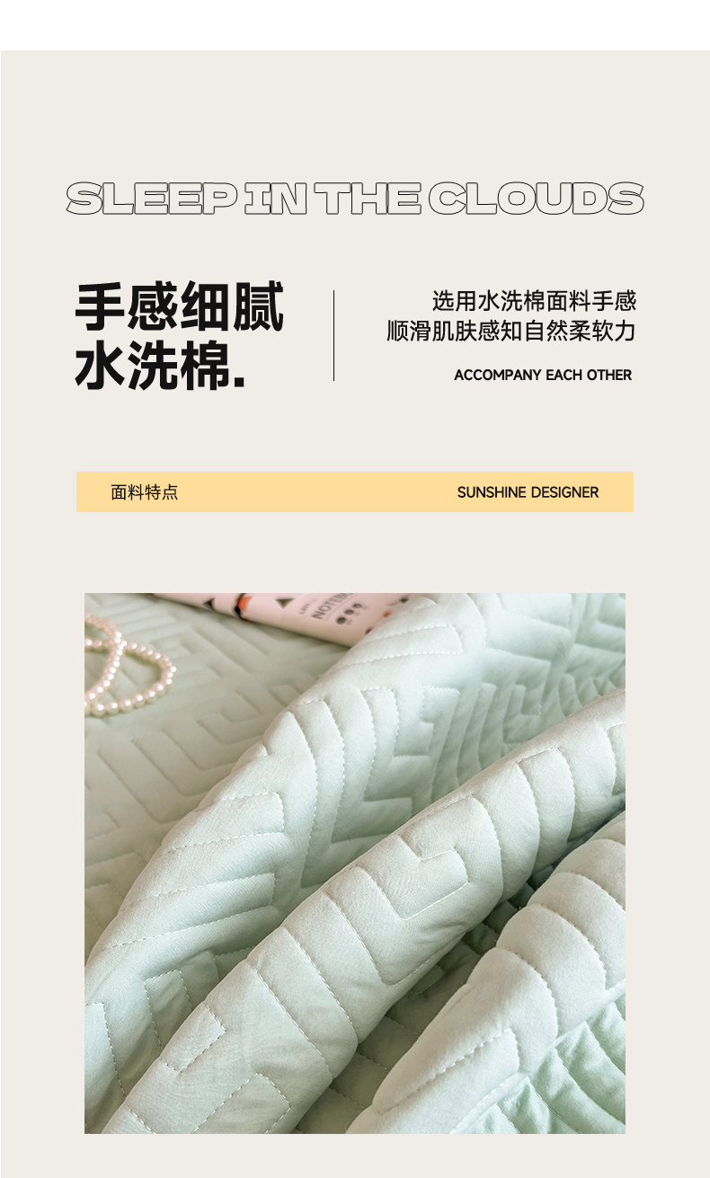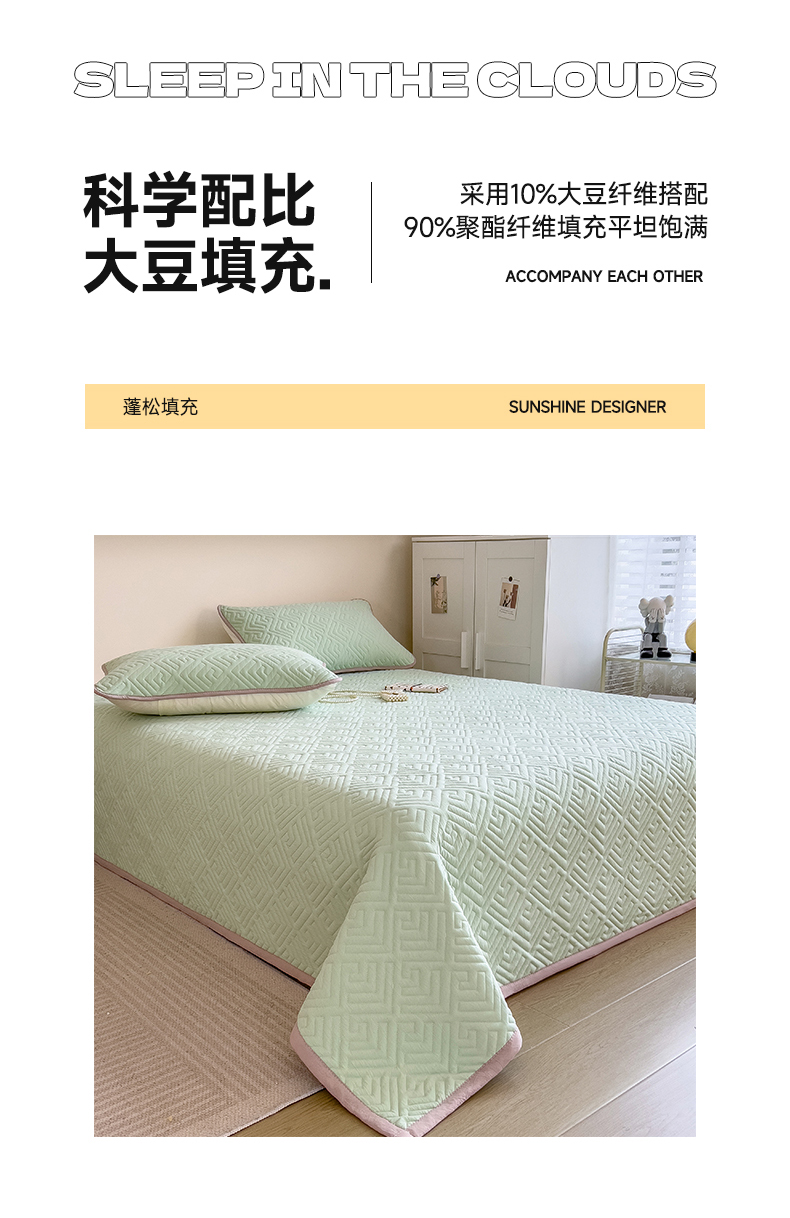 商品名称:叠派家纺 2024新款水洗棉回字纹夹棉床盖 果绿-奶昔驼