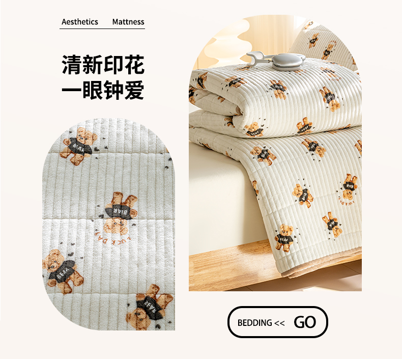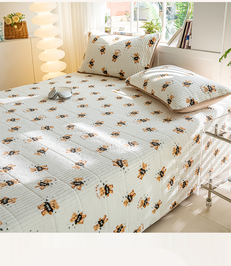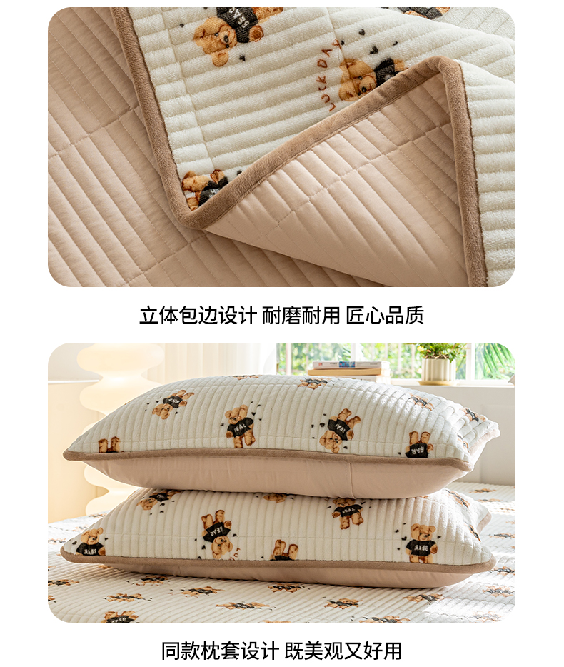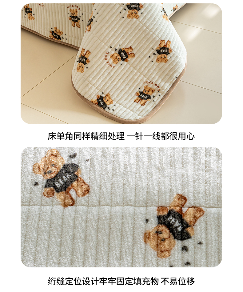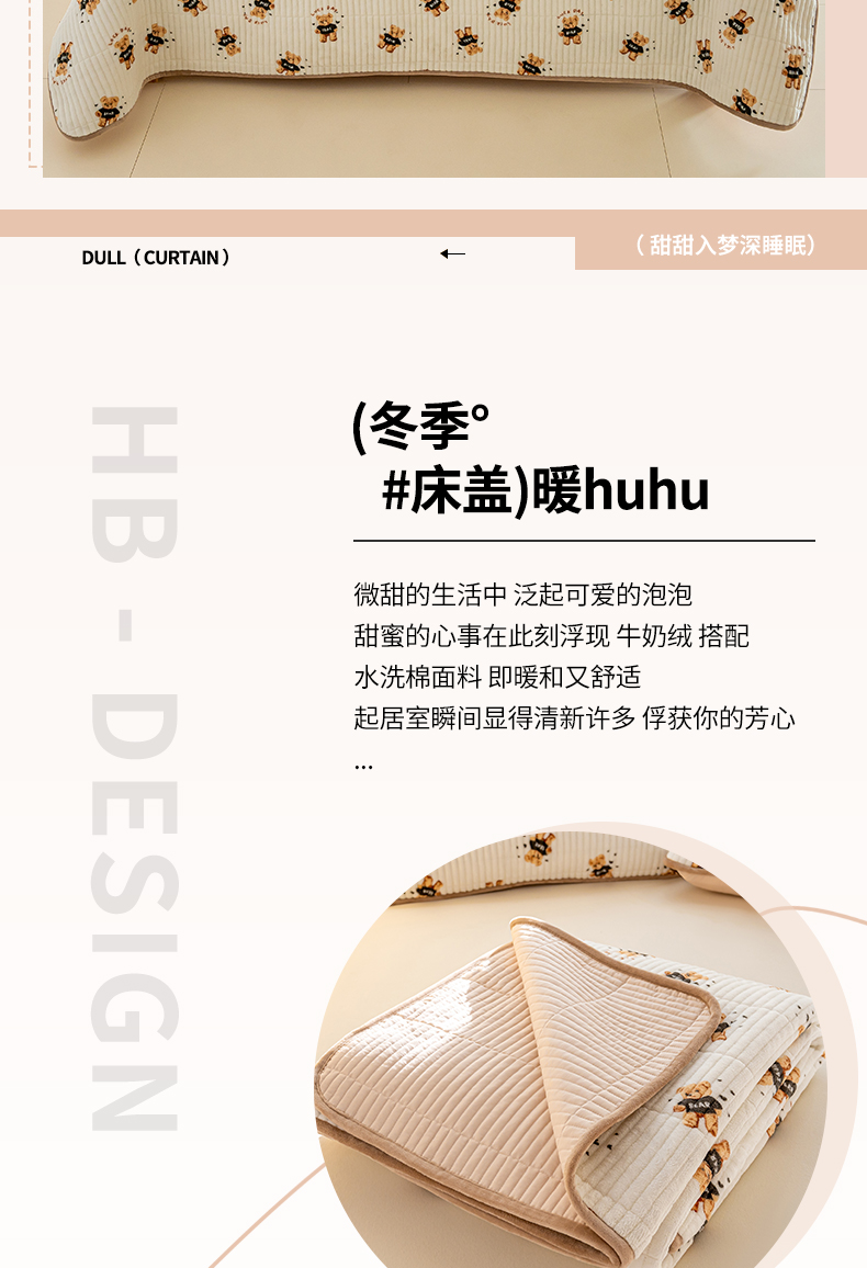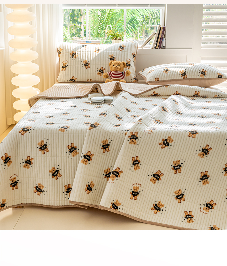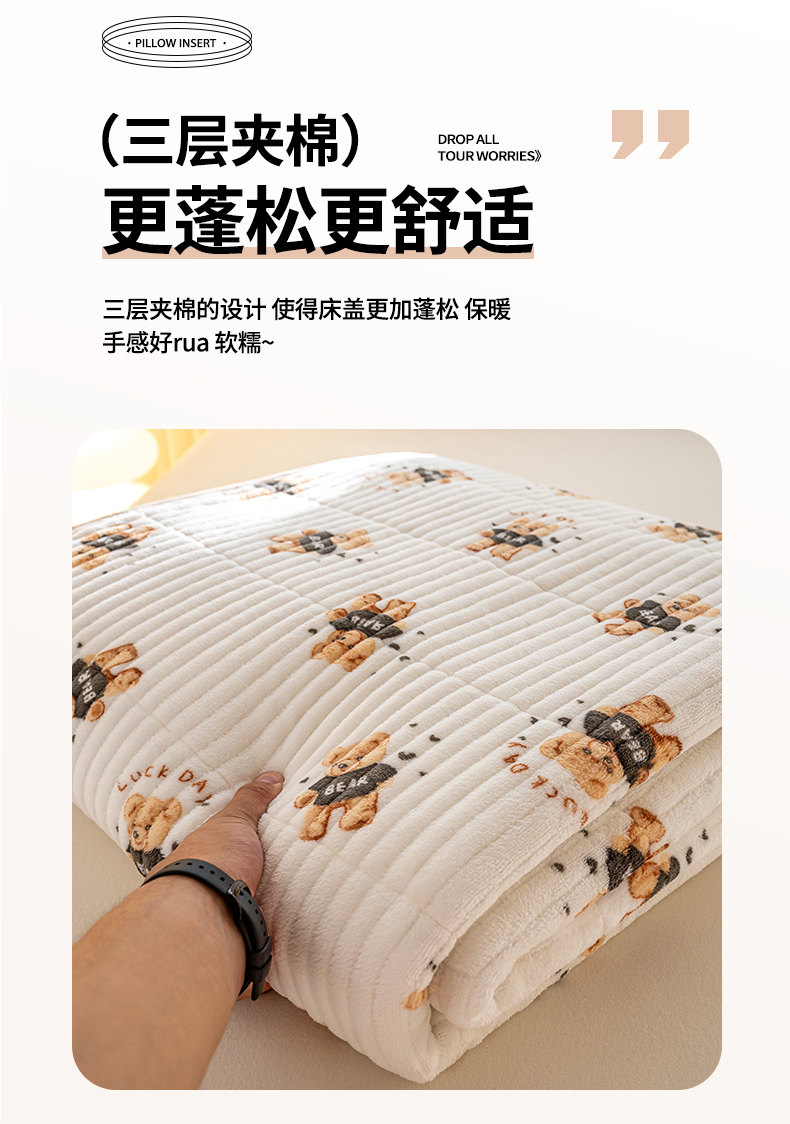 • 91家纺网 家纺一手货源 找家纺 X猫先生 2024新款牛奶绒床盖床垫小清新印花夹棉水洗棉炕盖双面两用 呆呆熊