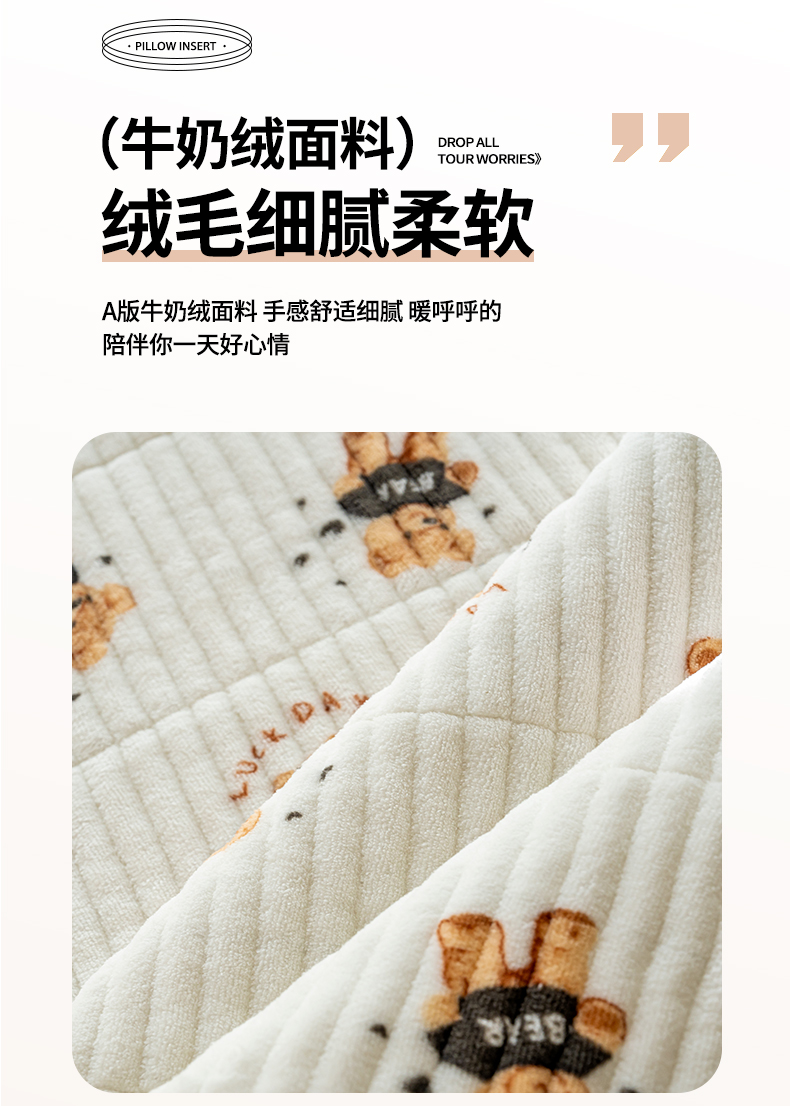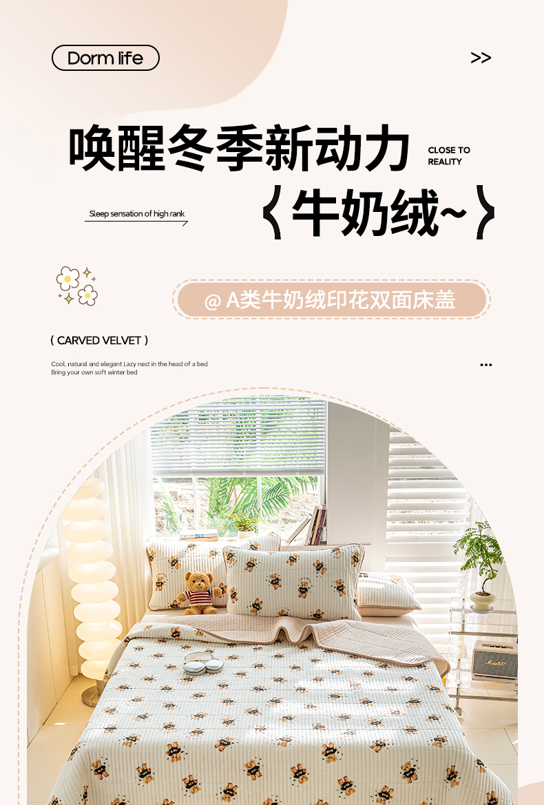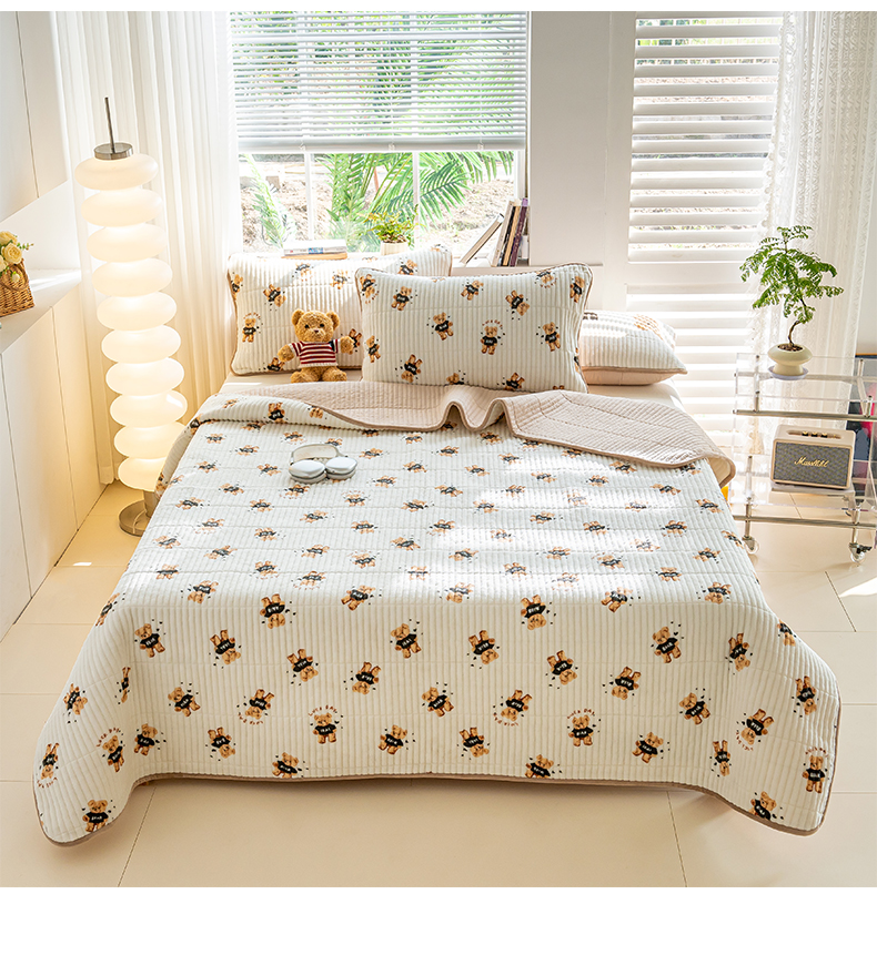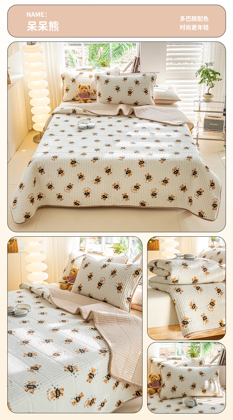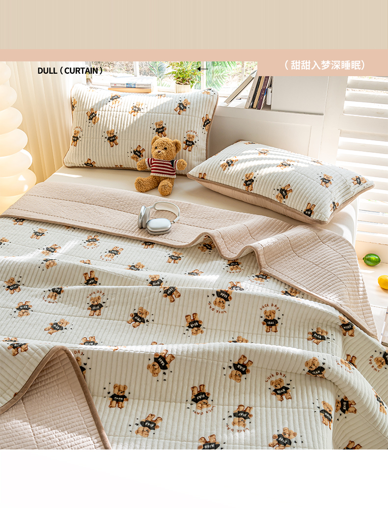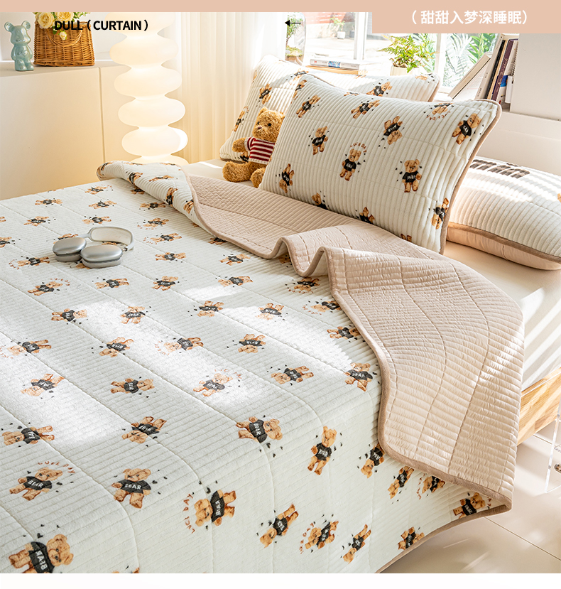 • 91家纺网 家纺一手货源 找家纺 X猫先生 2024新款牛奶绒床盖床垫小清新印花夹棉水洗棉炕盖双面两用 呆呆熊