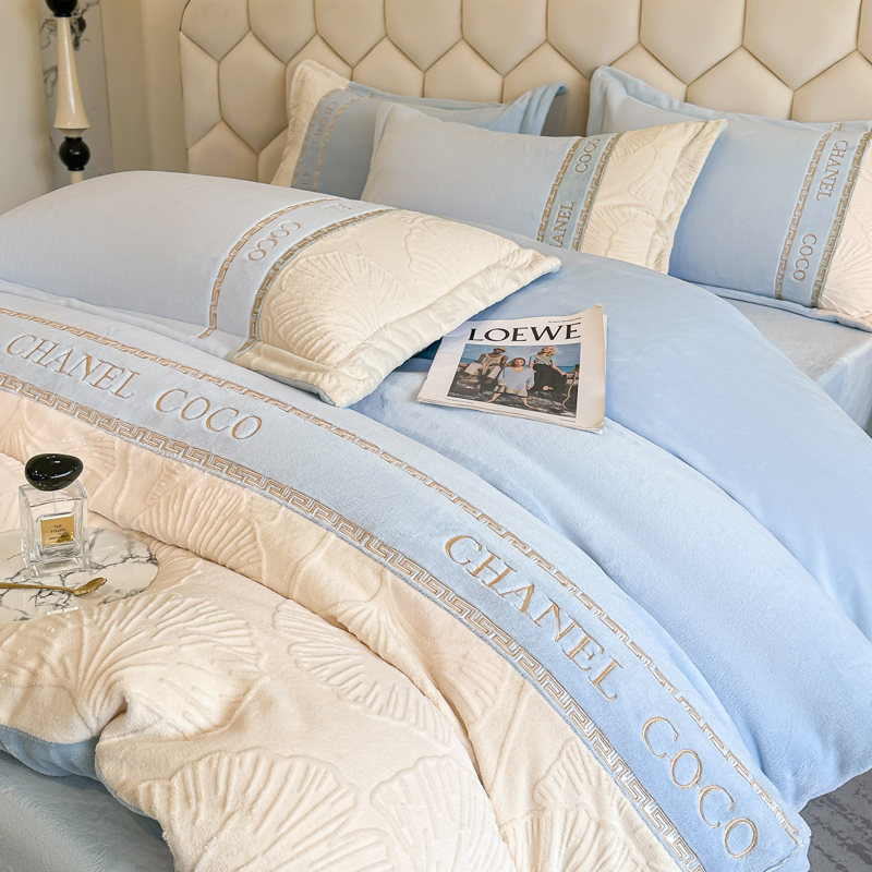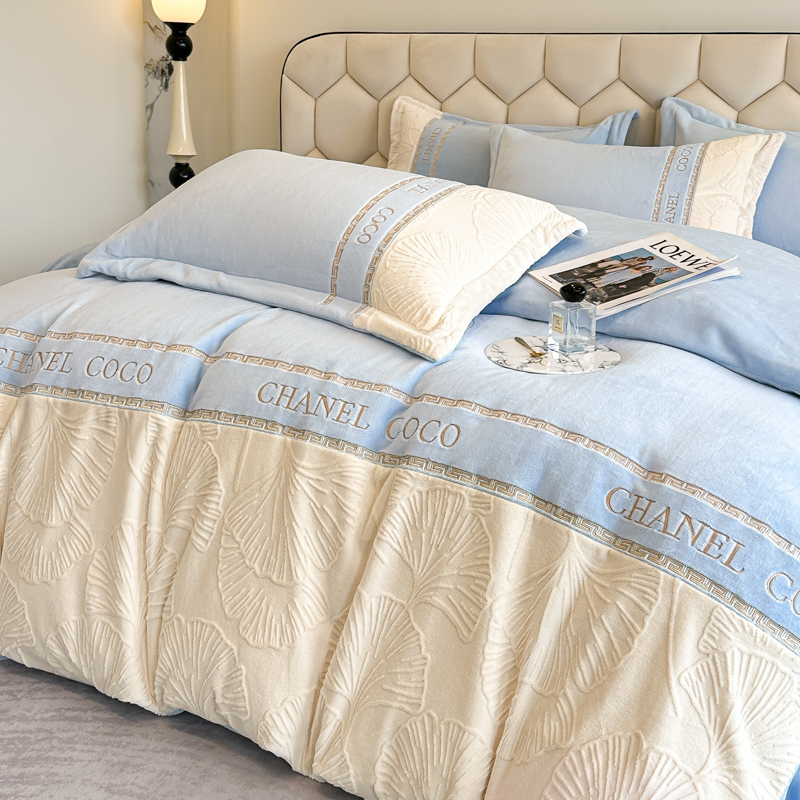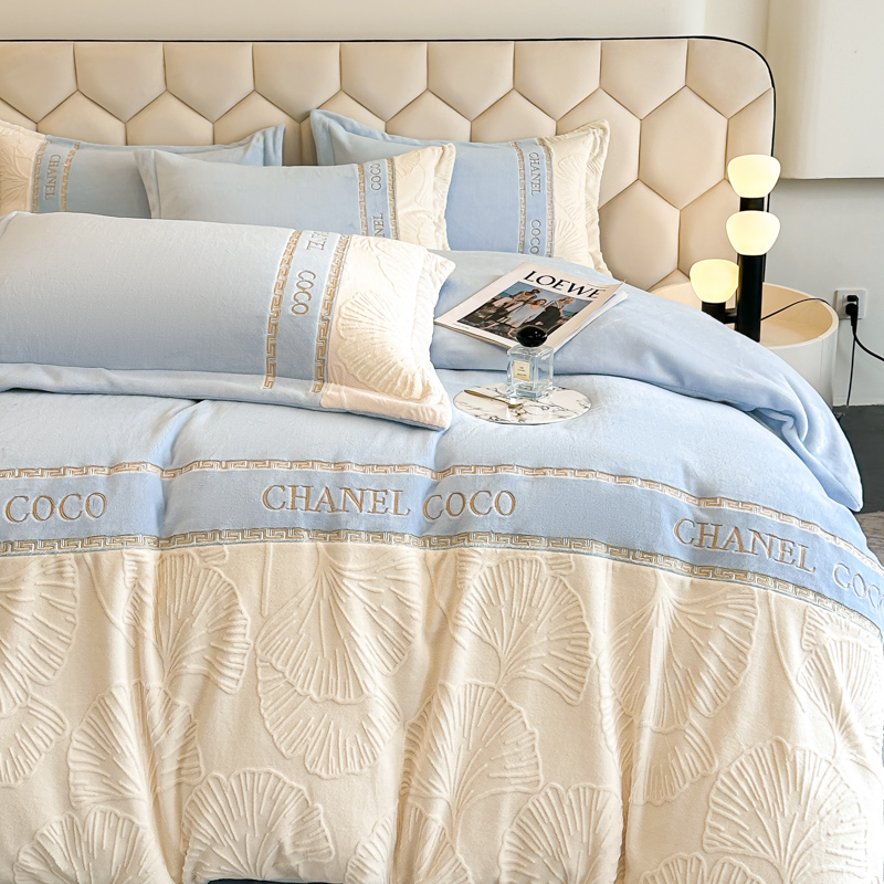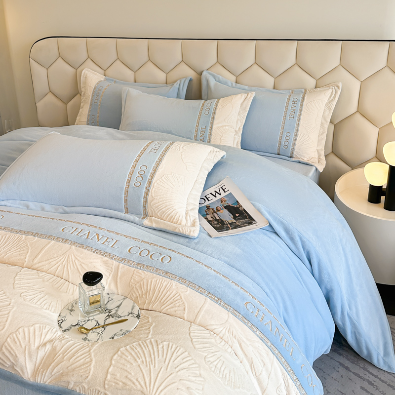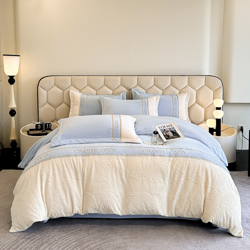 宅家居 2024新款雕花拼接刺绣全消光A类高克重牛奶绒四件套-舞秋系列 舞秋-淡蓝