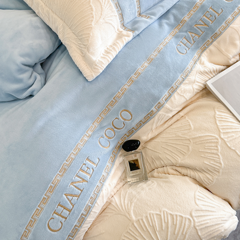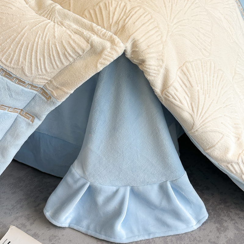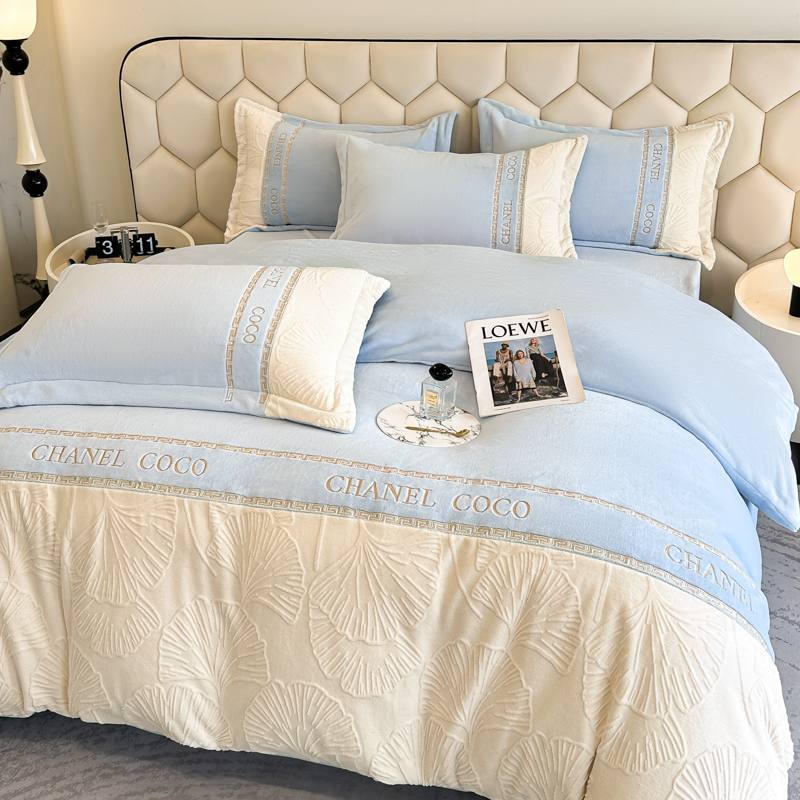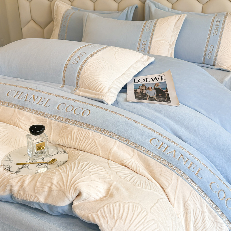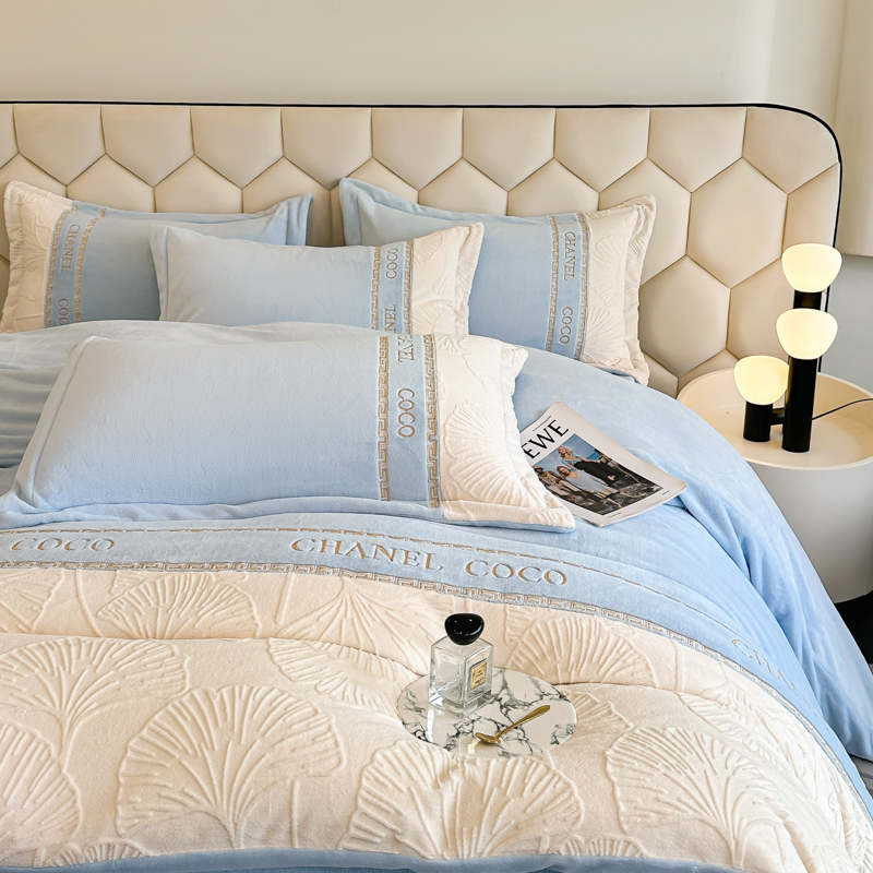 宅家居 2024新款雕花拼接刺绣全消光A类高克重牛奶绒四件套-舞秋系列 舞秋-淡蓝