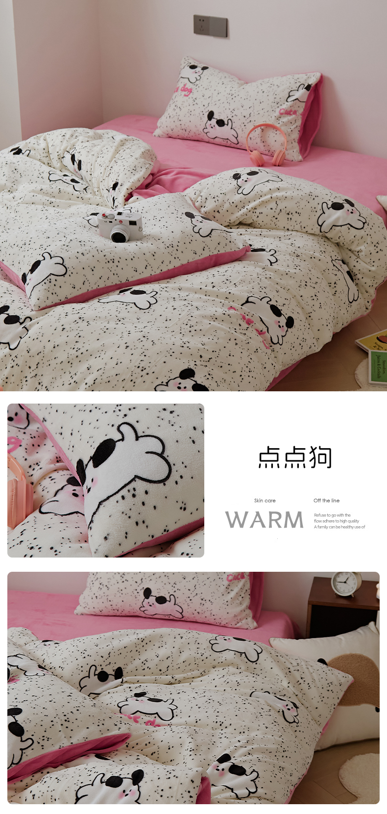 当前位置: 91家纺网 > 商品网购 > 床品套件 > 四件套 > 牛奶绒四件套 > 时光里 2024新款230克牛奶绒印花四件套 点点狗
