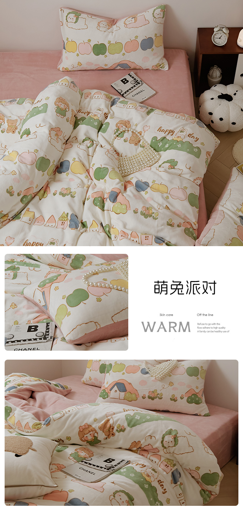 当前位置: 91家纺网 > 商品网购 > 床品套件 > 四件套 > 牛奶绒四件套 > 时光里 2024新款230克牛奶绒印花四件套 萌兔派对