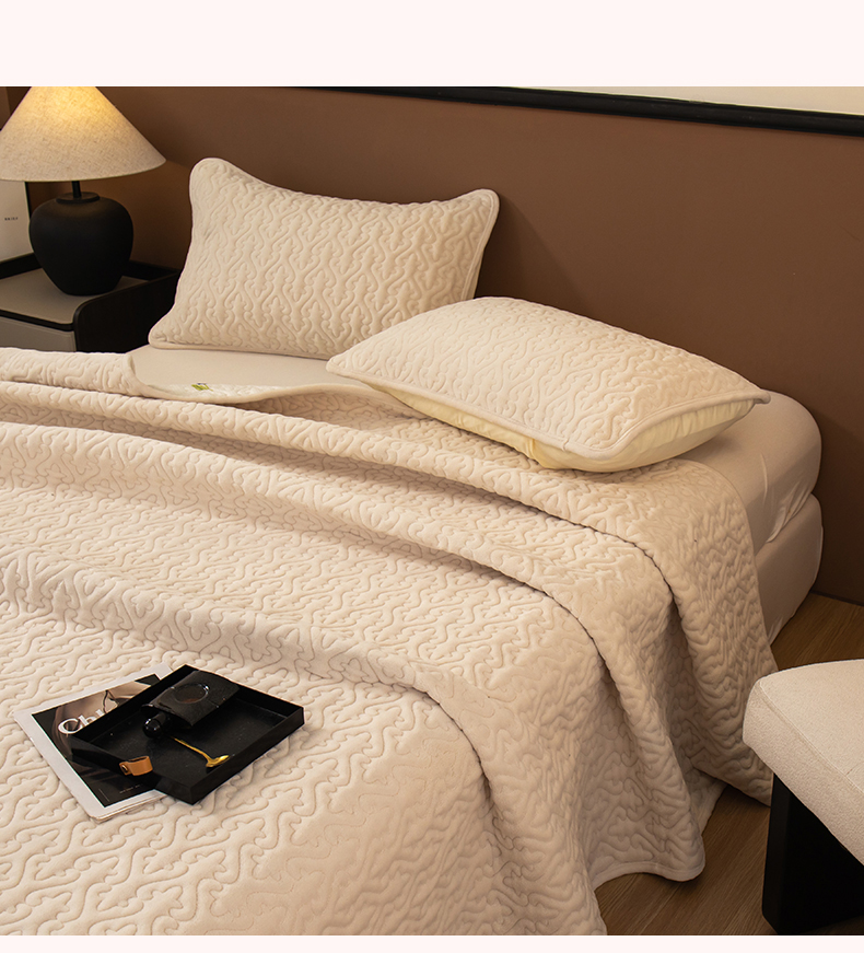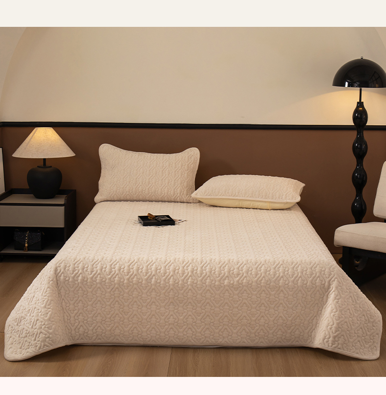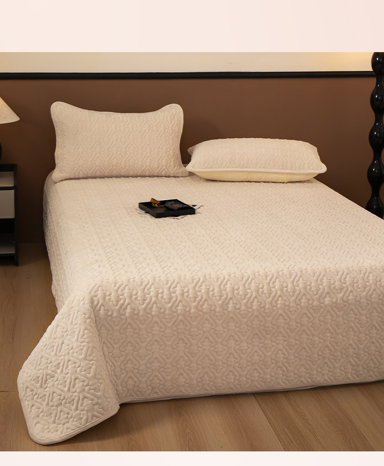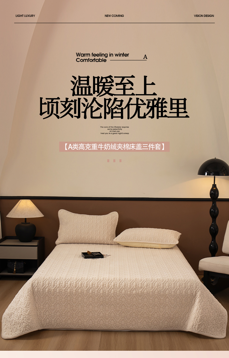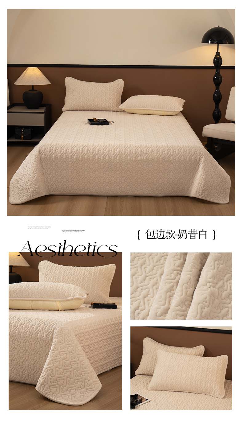 商品名称:2025新款230克牛奶绒加厚床盖 包边款-奶昔白