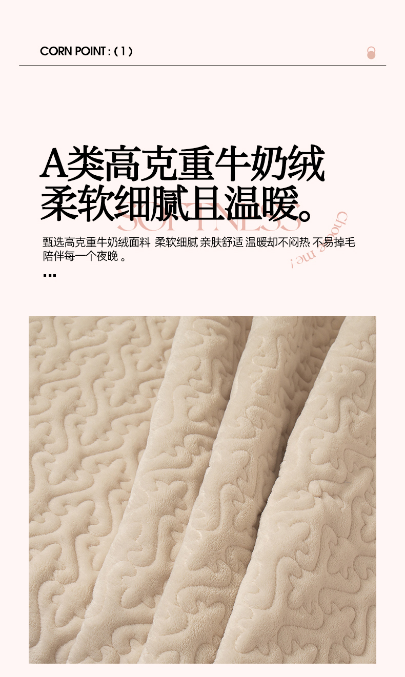 2025新款230克牛奶绒加厚床盖 包边款-奶昔白