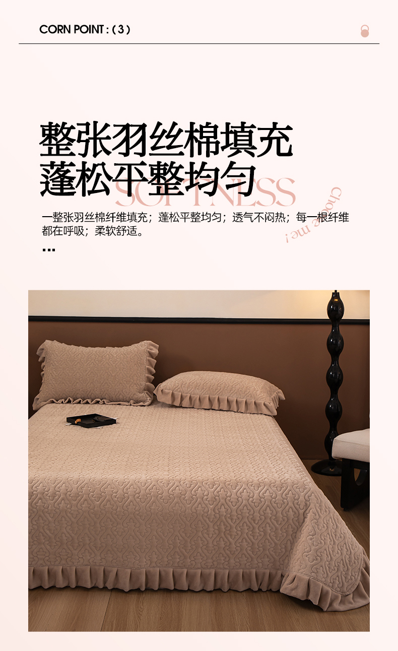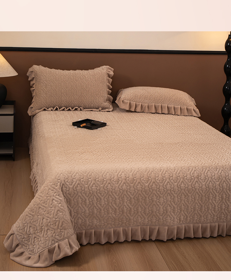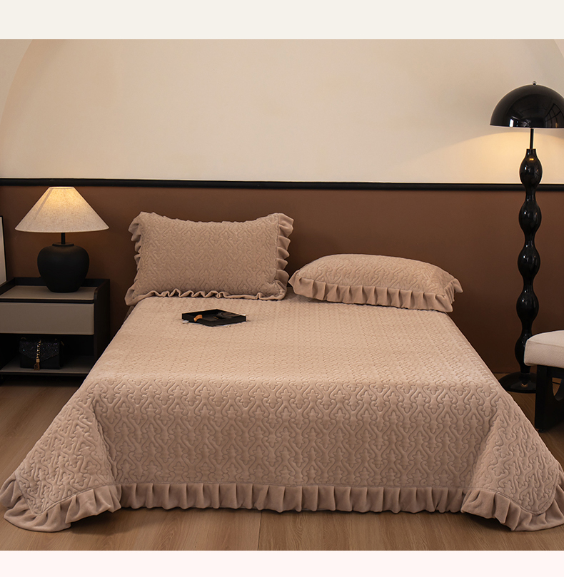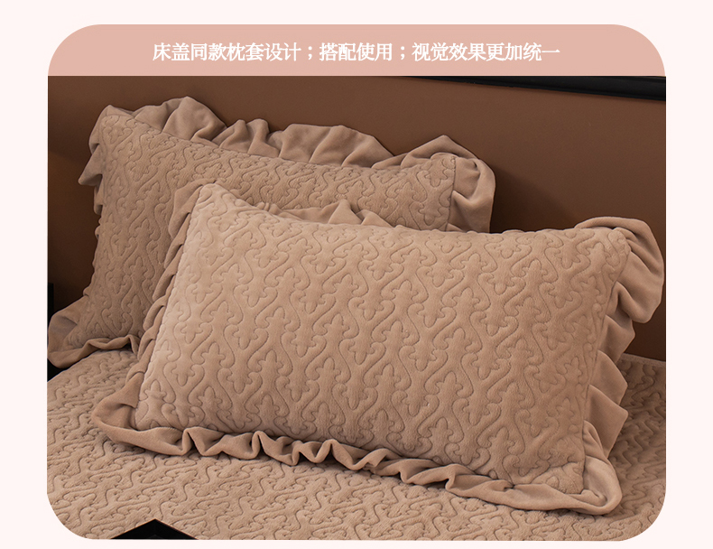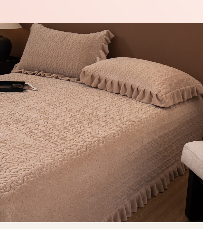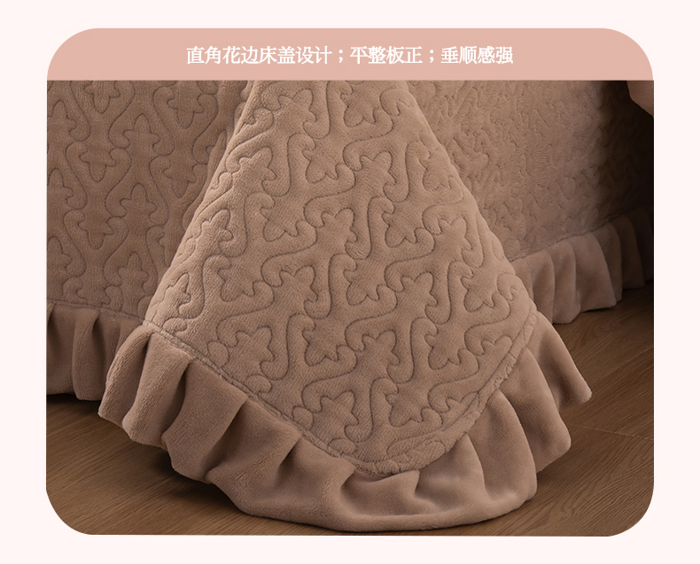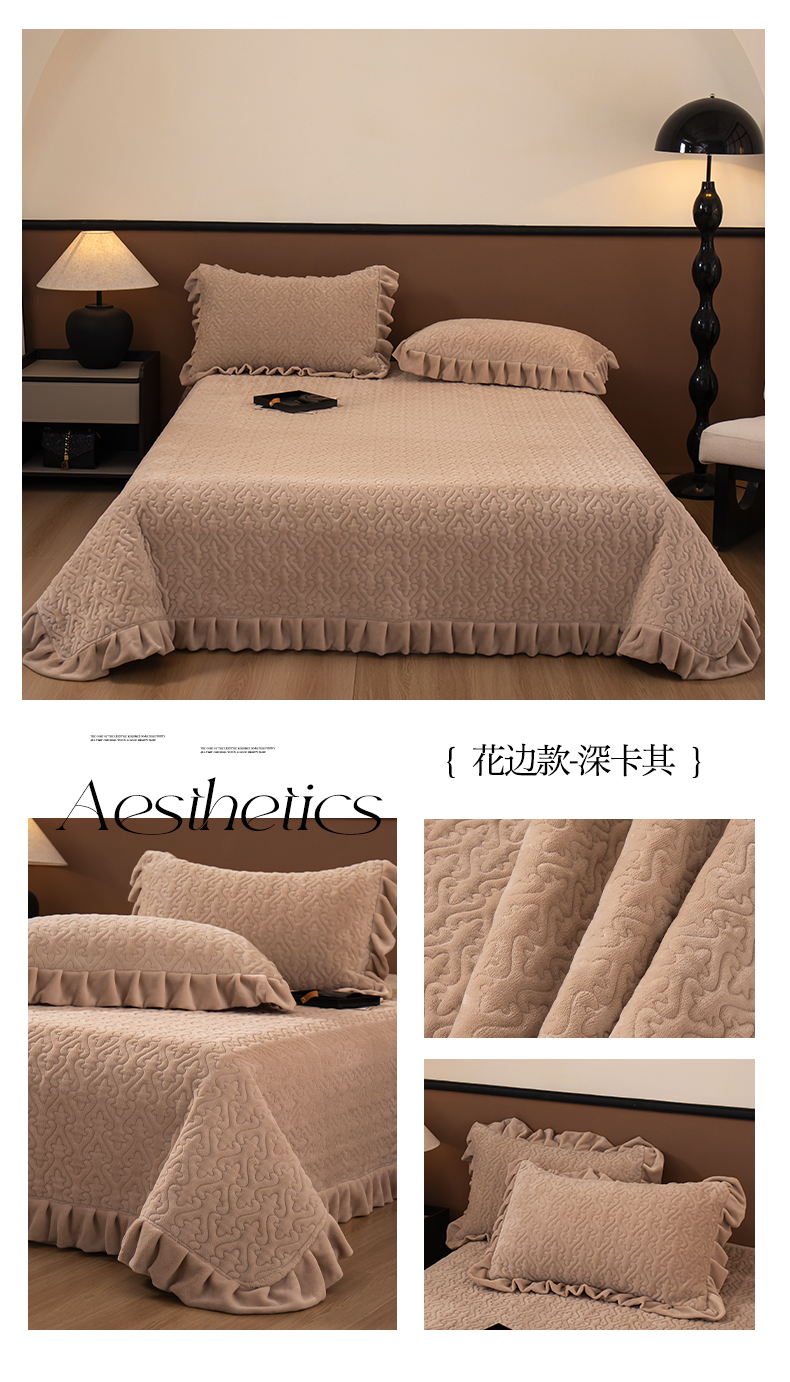 商品名称:2025新款230克牛奶绒加厚床盖 花边款-深卡其