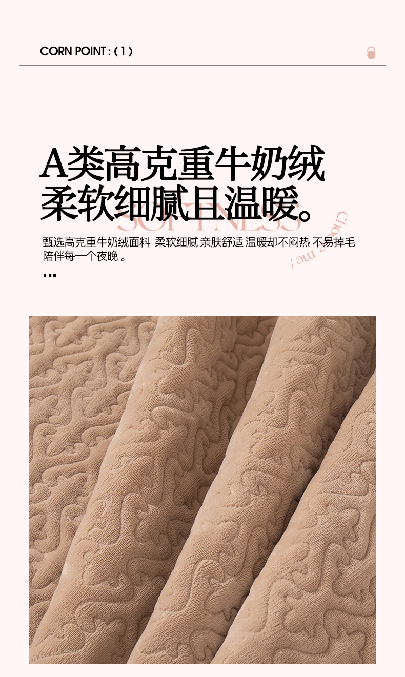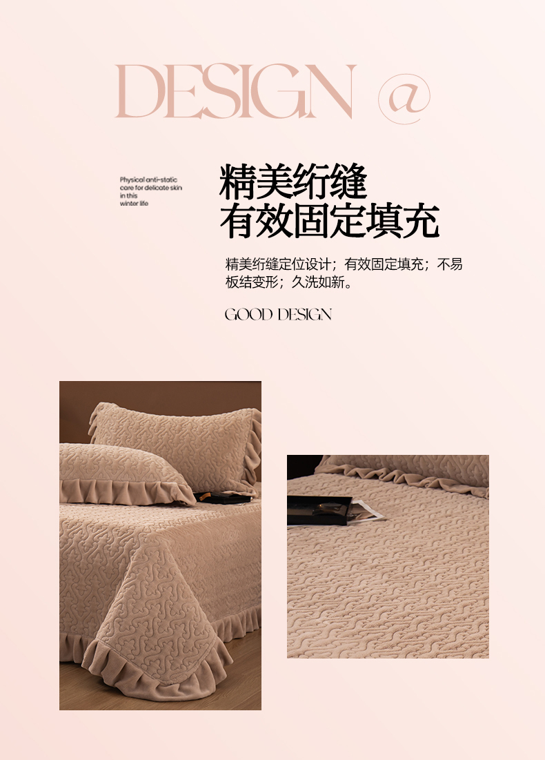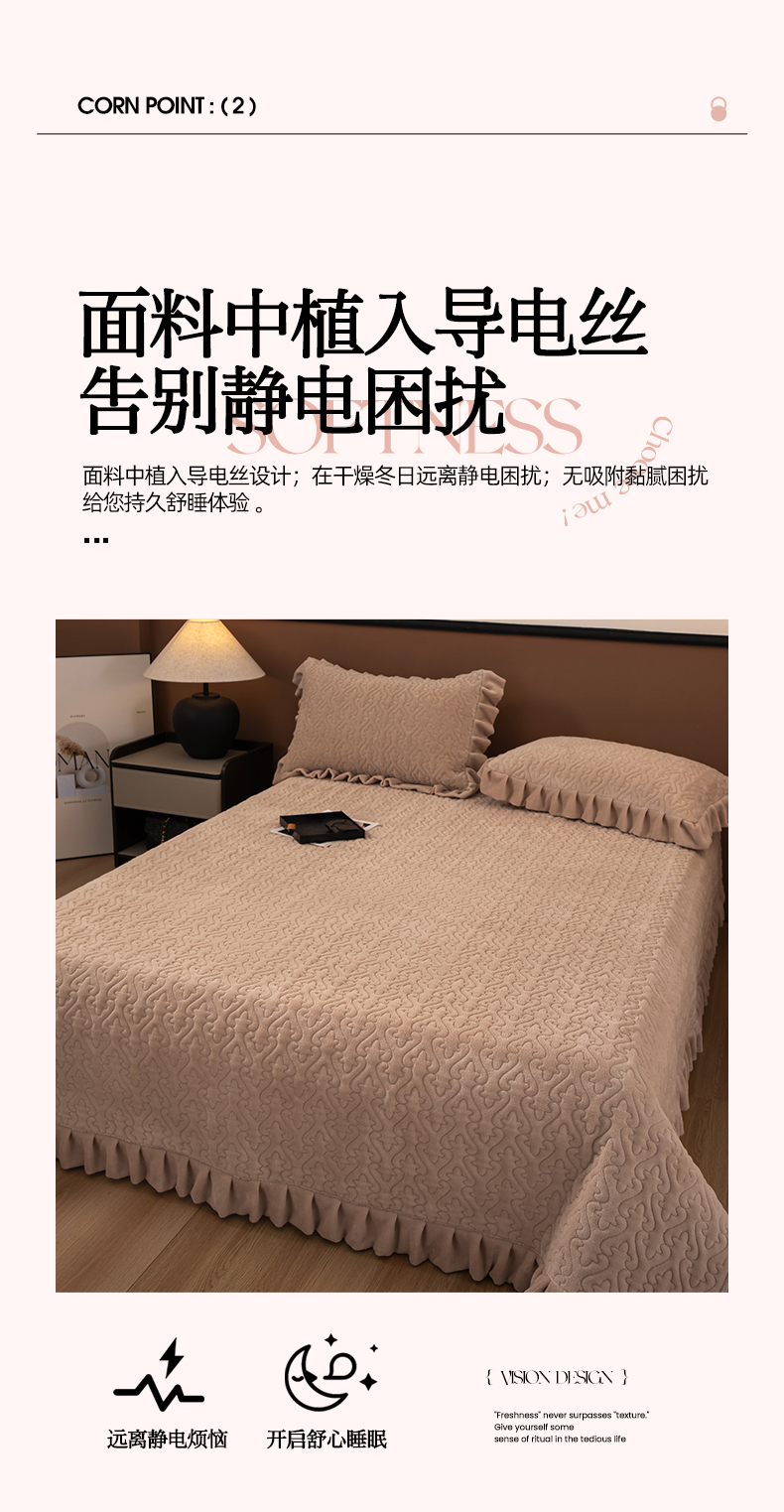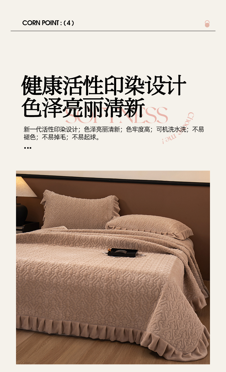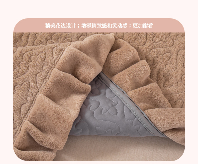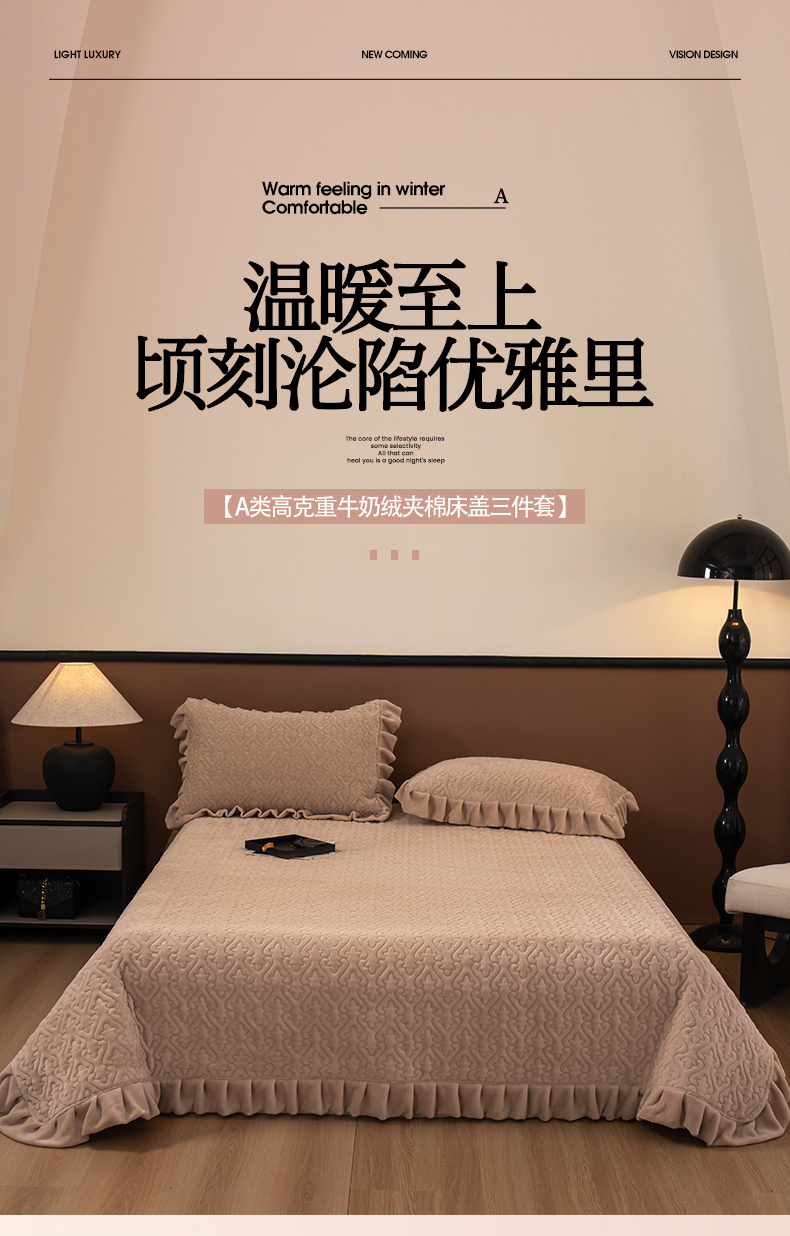 商品名称:2025新款230克牛奶绒加厚床盖 花边款-深卡其
