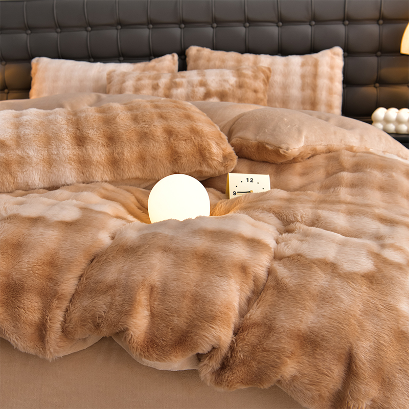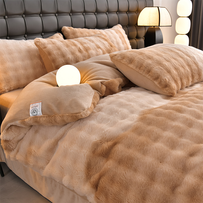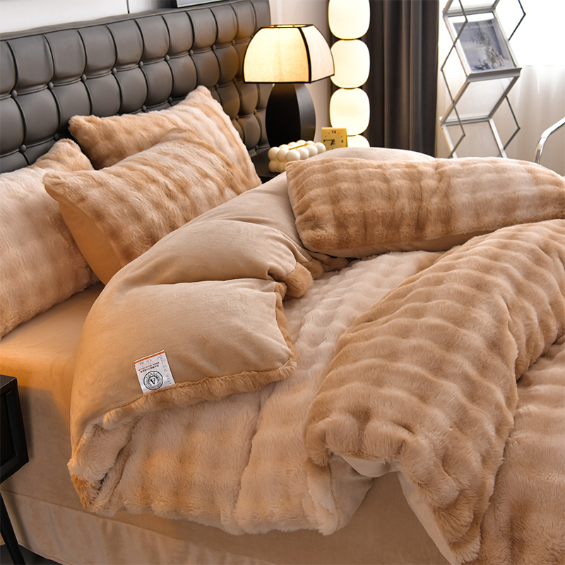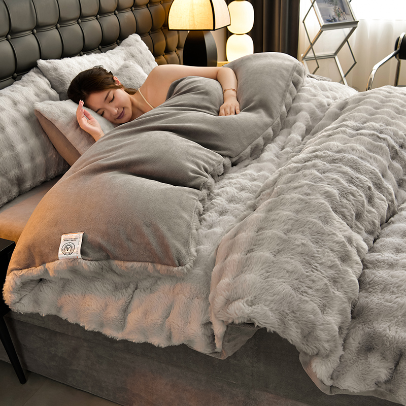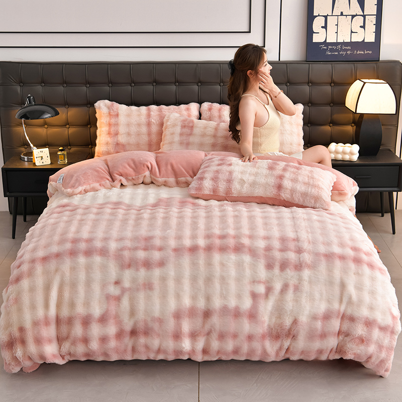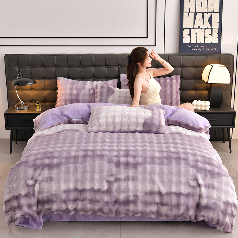 (总)爱上家居 2024新款AB版兔兔绒牛奶绒四件套,粉色,灰色,绿色,驼色,紫色