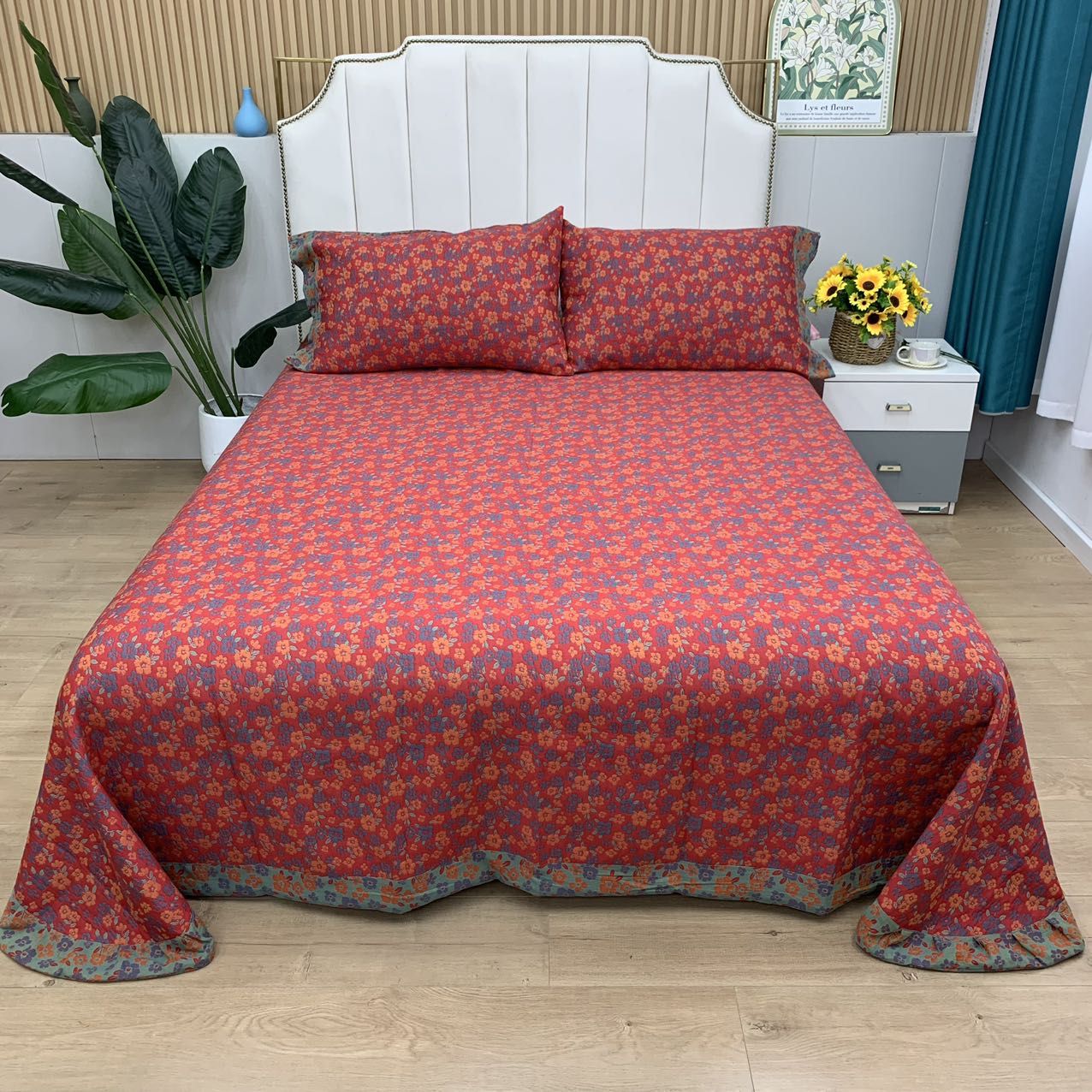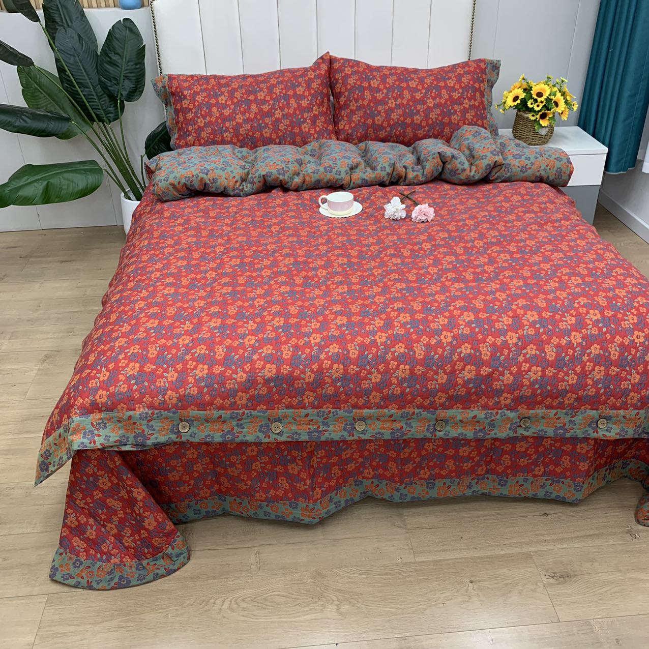 商品名称:鲁爱 2025新款三层纱床盖款四件套 清新之歌-红